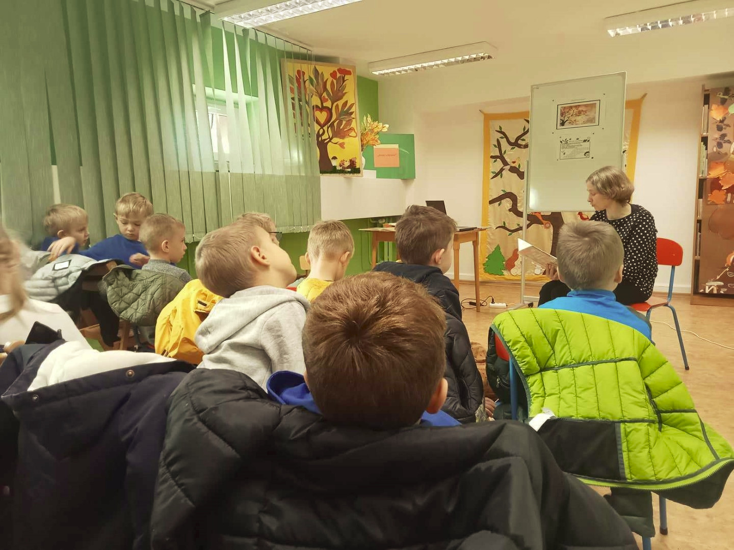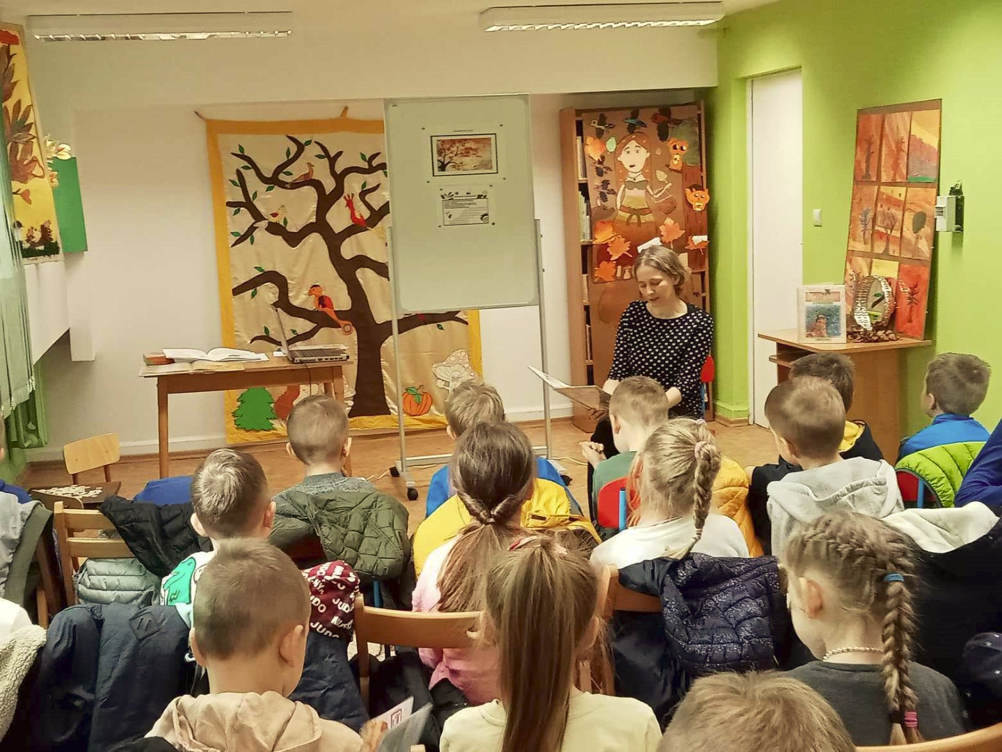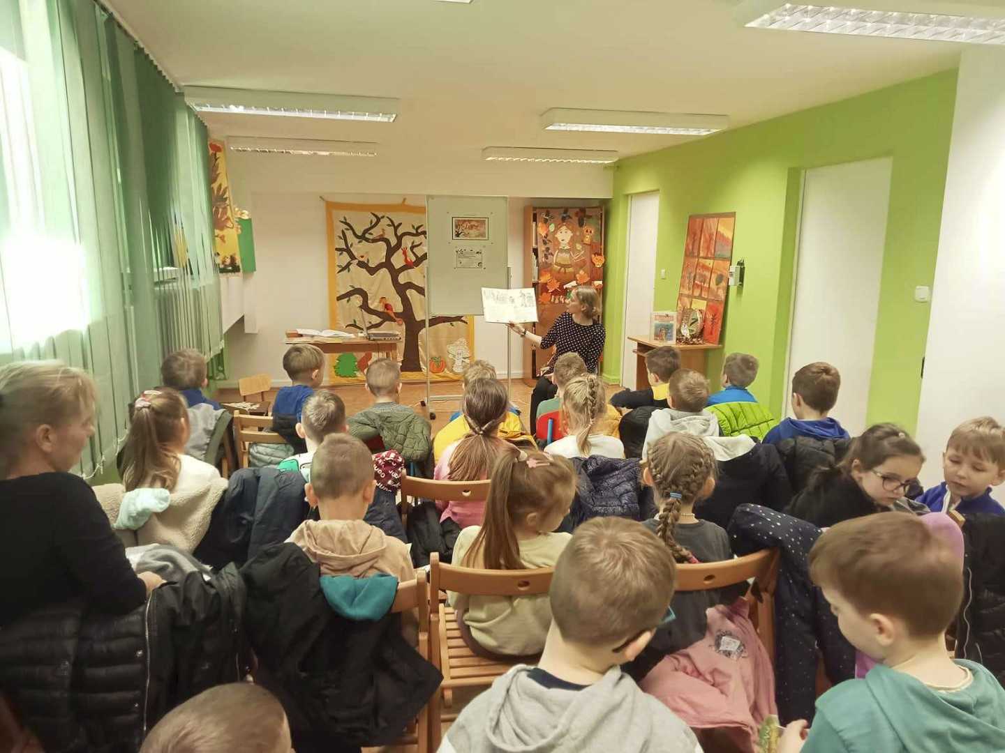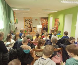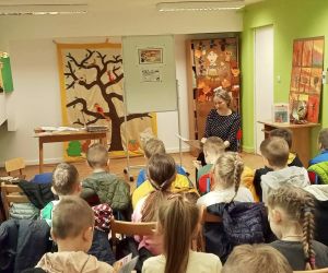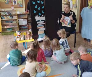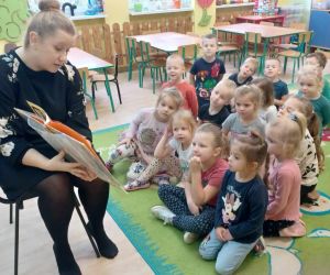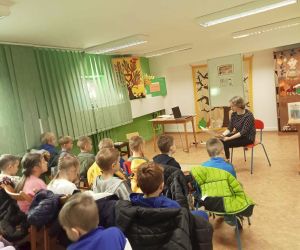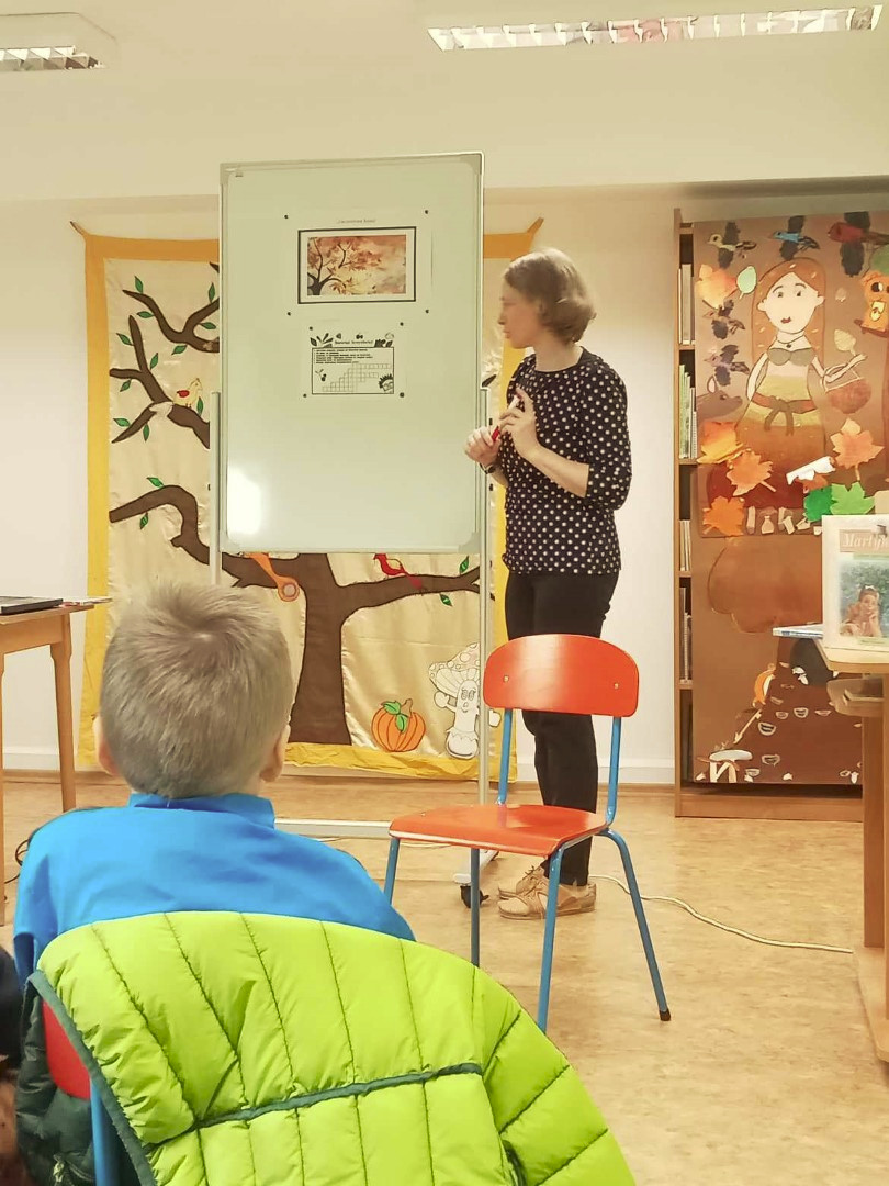 W dniu 8.11.2023 r bibliotekarka Ola z Filii nr 1 odwiedziła kilka grup przedszkolnych by przeczytać dzieciom opowieść pt. „Złodziej liści” autorstwa Alice Hemming i Nicoli Slater „Pszczółki”, „Biedronki”, „Stokrotki” oraz „Bławatki” chętnie zamieniły się w detektywów i razem z główną bohaterką Wiewiórką szukaliśmy kto jesienią kradnie liście z drzew. Przedszkolaki poznały również kilka ciekawostek o jesieni np.: