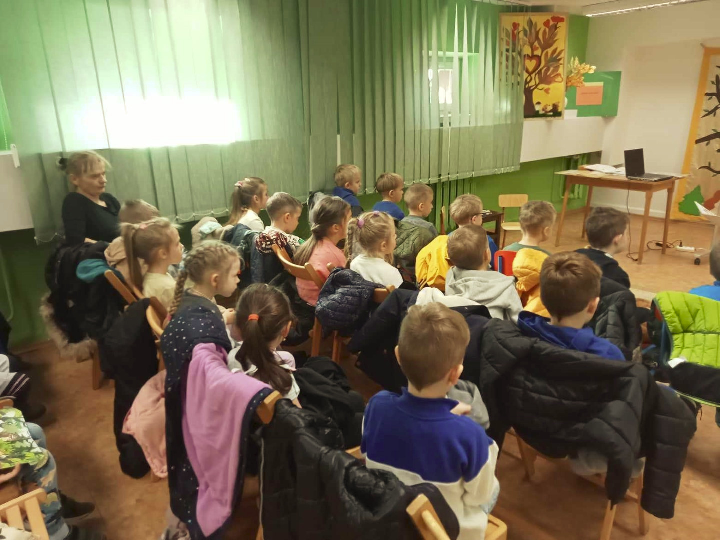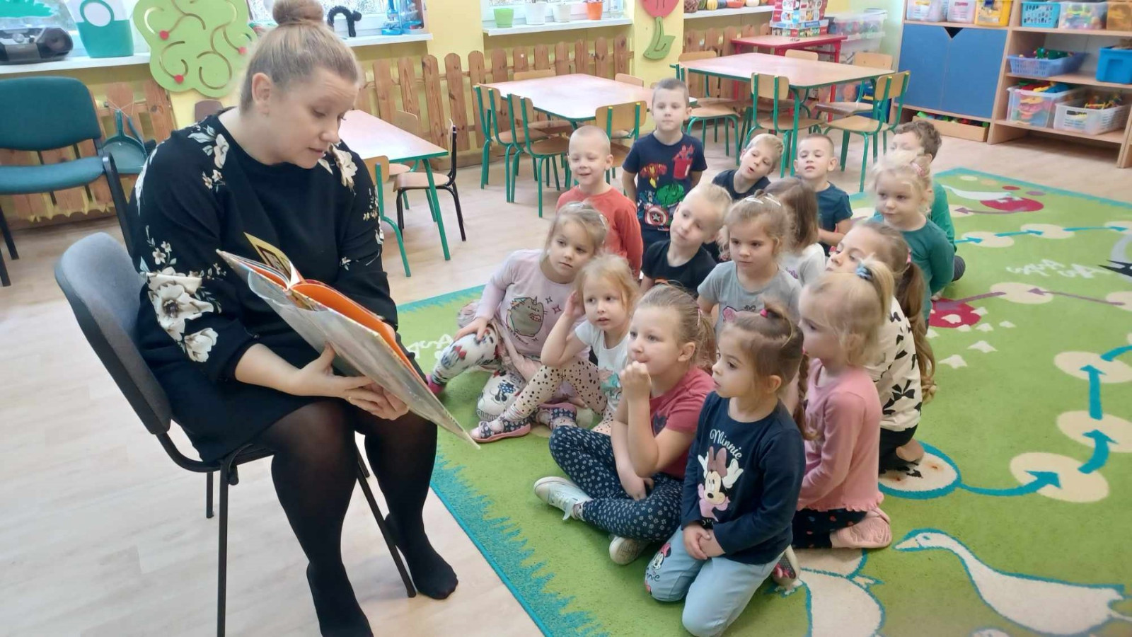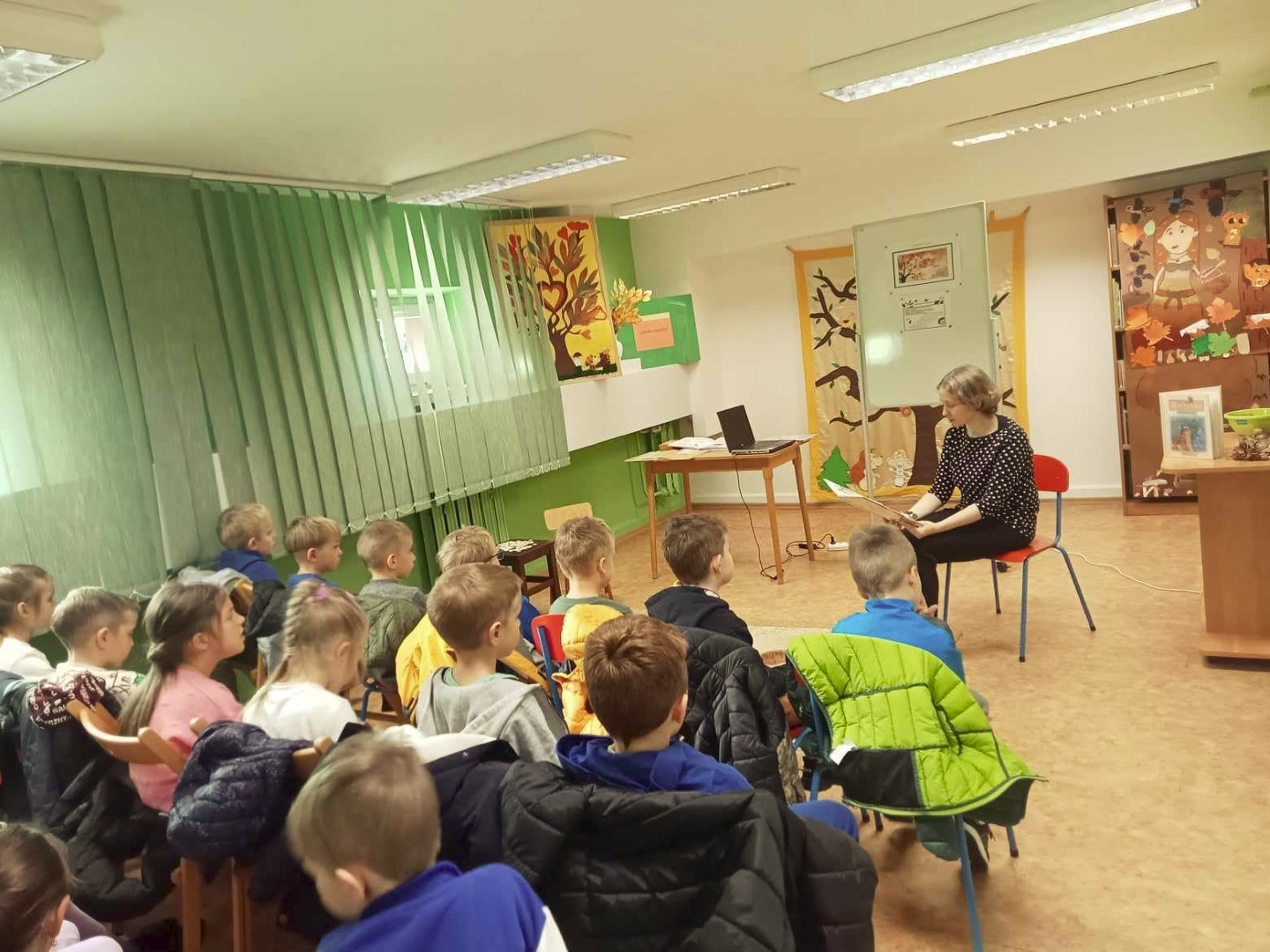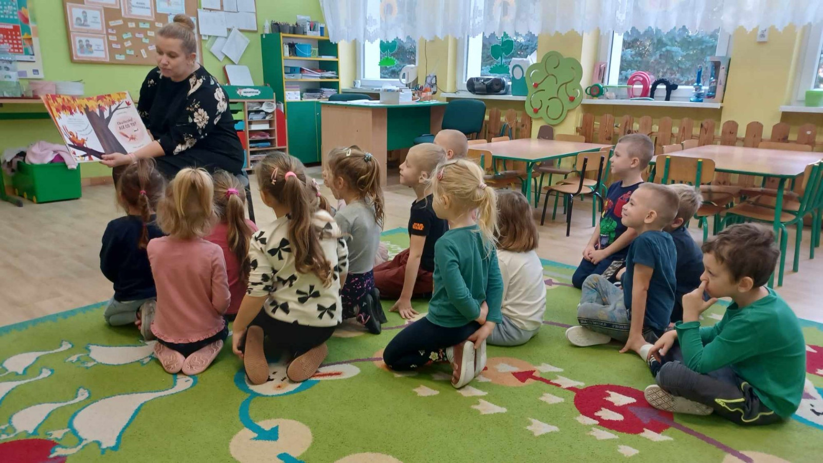W dniu 8.11.2023 r bibliotekarka Ola z Filii nr 1 odwiedziła kilka grup przedszkolnych by przeczytać dzieciom opowieść pt. „Złodziej liści” autorstwa Alice Hemming i Nicoli Slater „Pszczółki”, „Biedronki”, „Stokrotki” oraz „Bławatki” chętnie zamieniły się w detektywów i razem z główną bohaterką Wiewiórką szukaliśmy kto jesienią kradnie liście z drzew. Przedszkolaki poznały również kilka ciekawostek o jesieni np.: