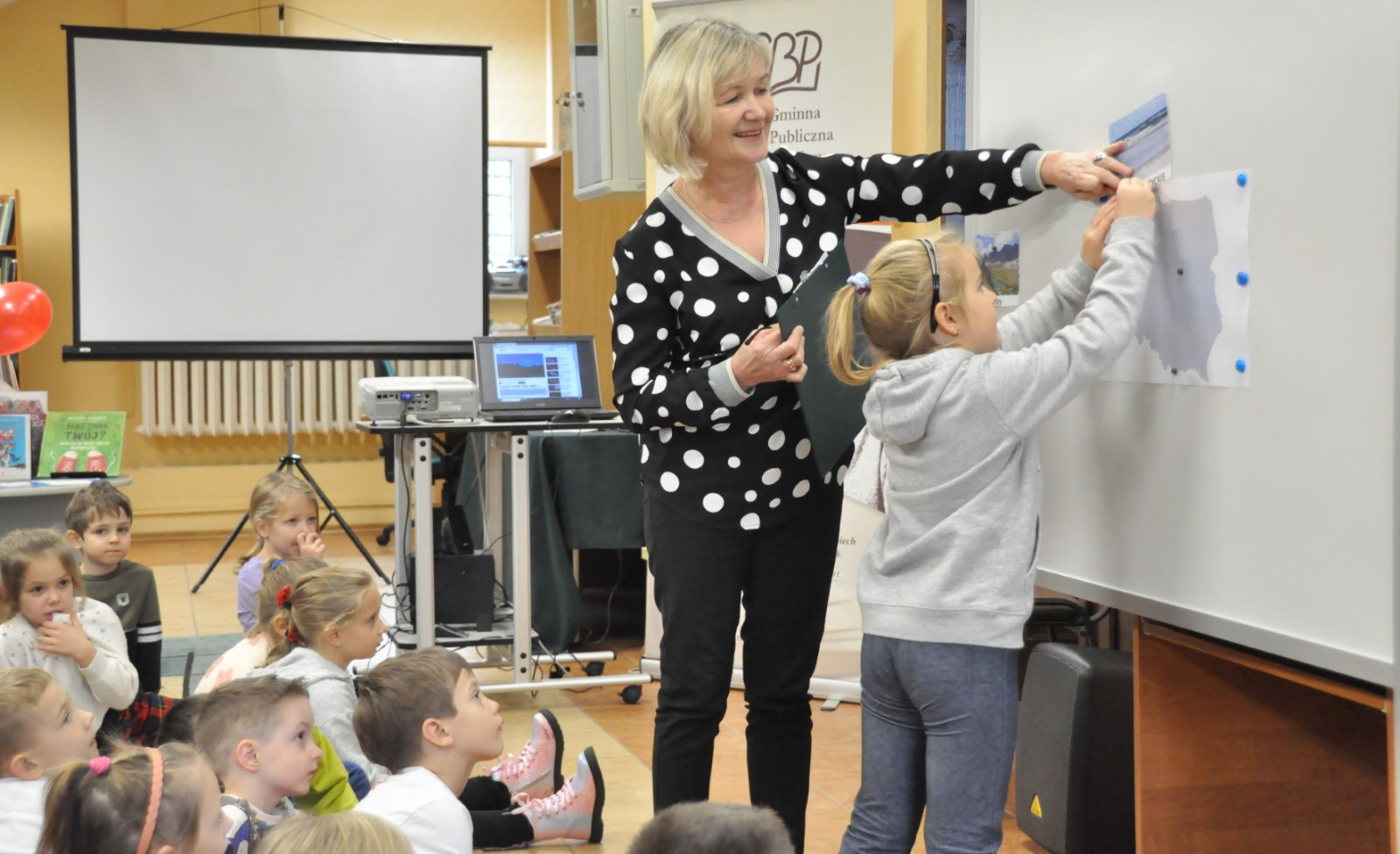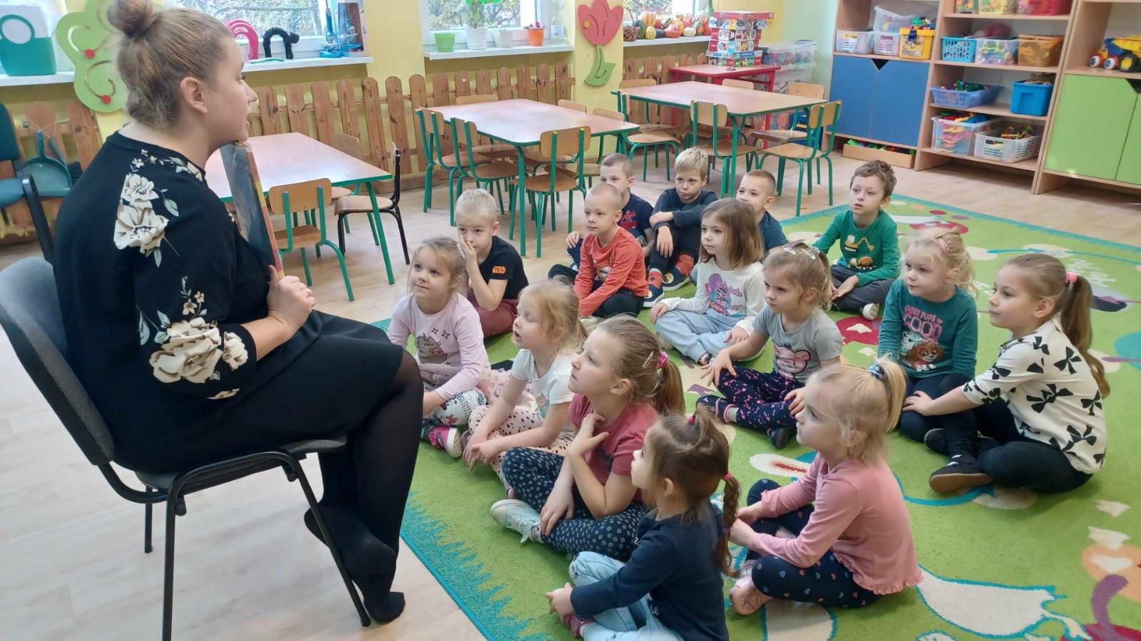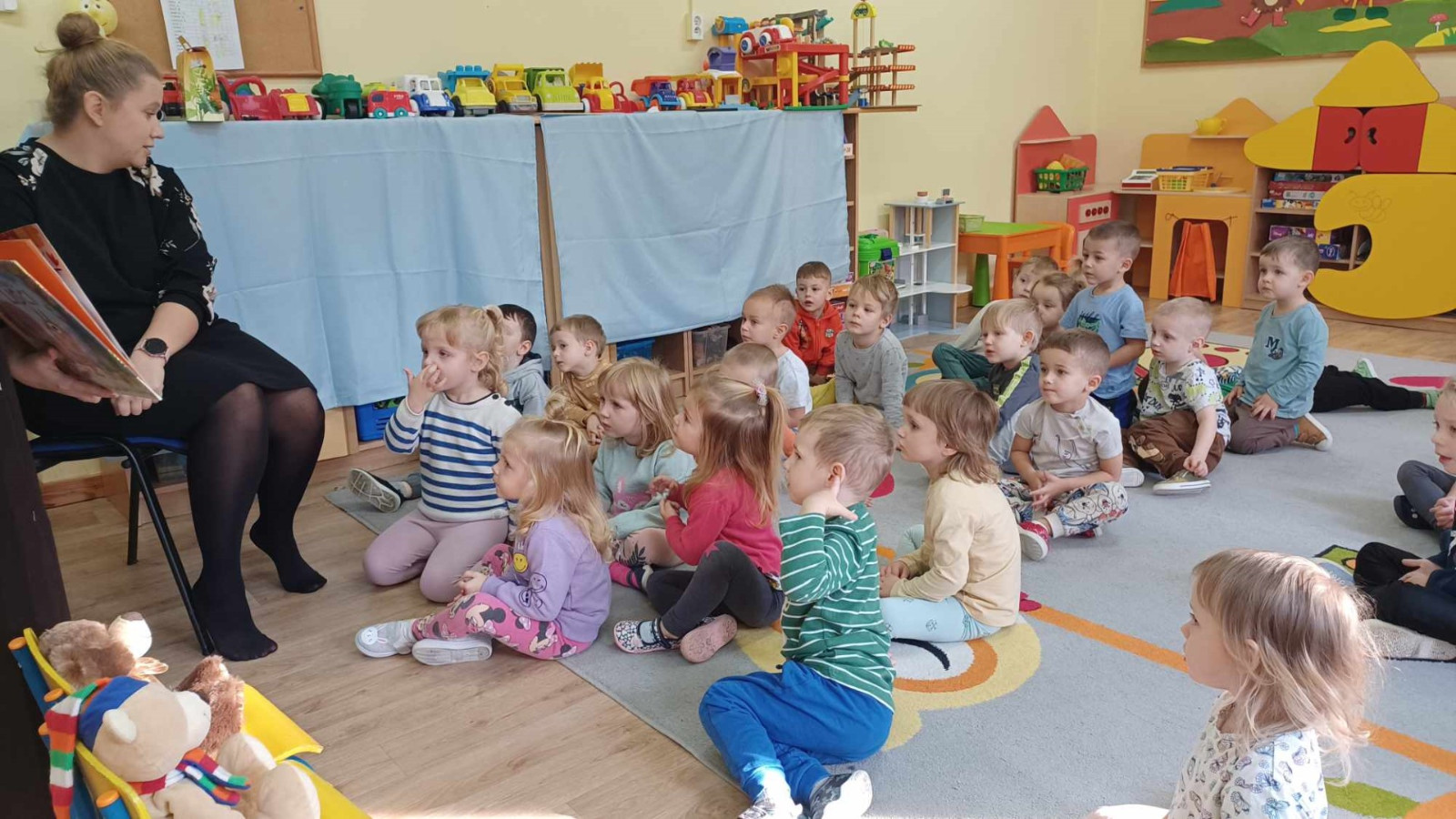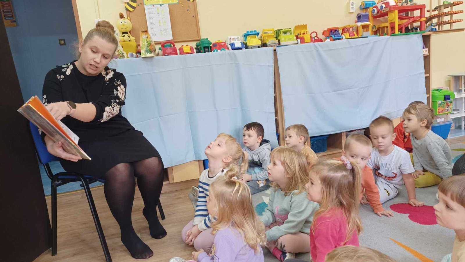 W dniu 8.11.2023 r bibliotekarka Ola z Filii nr 1 odwiedziła kilka grup przedszkolnych by przeczytać dzieciom opowieść pt. „Złodziej liści” autorstwa Alice Hemming i Nicoli Slater „Pszczółki”, „Biedronki”, „Stokrotki” oraz „Bławatki” chętnie zamieniły się w detektywów i razem z główną bohaterką Wiewiórką szukaliśmy kto jesienią kradnie liście z drzew. Przedszkolaki poznały również kilka ciekawostek o jesieni np.:
