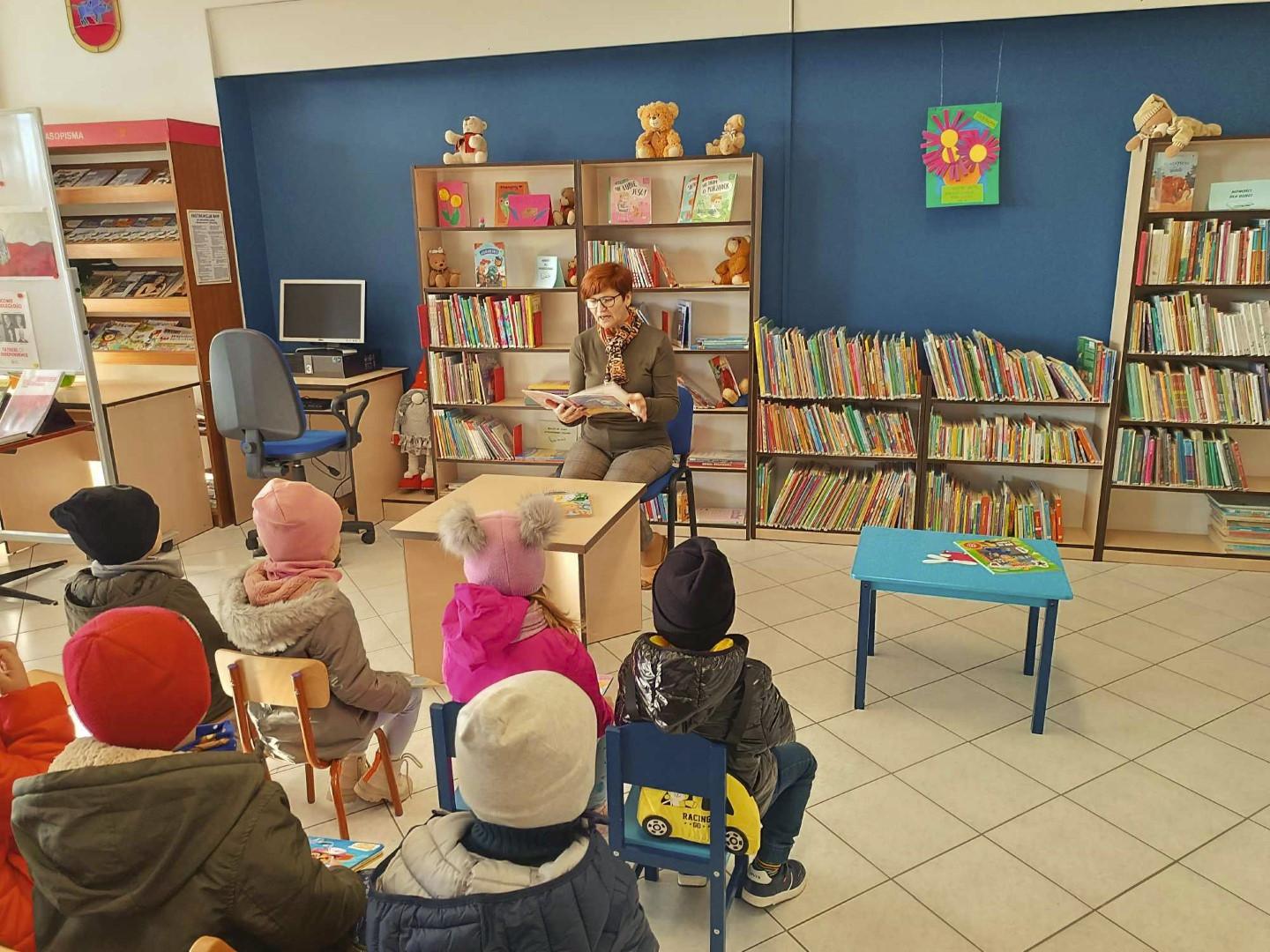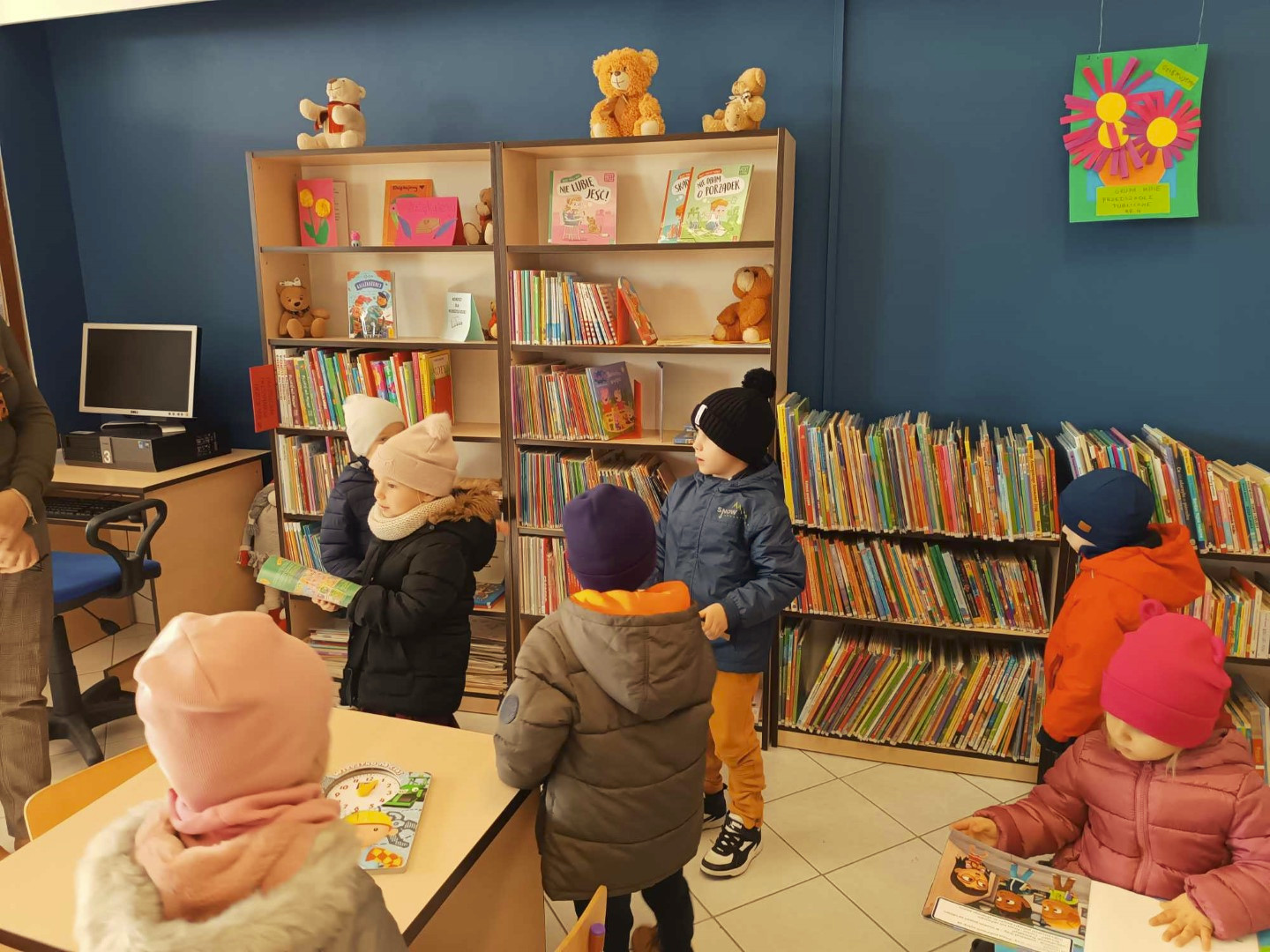 W słoneczne listopadowe przedpołudnie dzieci z grupy „Kotki” z Przedszkola Publicznego nr 4 w Łęcznej odwiedziły Bibliotekę. Przedszkolaki wysłuchały opowiadania „Kicia Kocia w bibliotece” Anity Głowińskiej i dowiedziały się co można robić w bibliotece poza wypożyczaniem książek. Na zakończenie miłego spotkania wypożyczyły sobie książki. Dziękujemy i do zobaczenia!