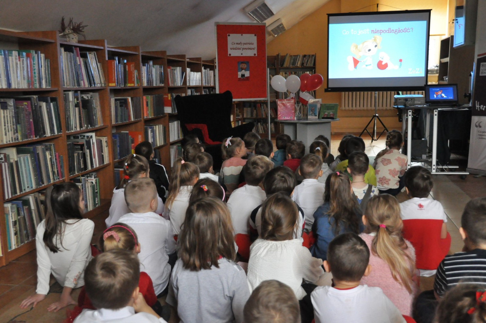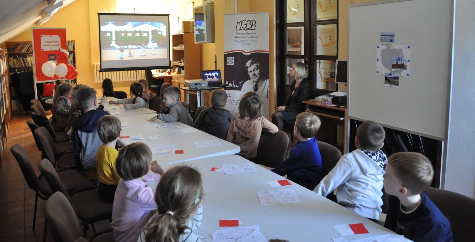 W zajęciach uczestniczyły dzieci z Oddziału Przedszkolnego przy Szkole Podstawowej nr 2 w Łęcznej oraz przedszkolaki z Przedszkola Publicznego nr 1 w Łęcznej. Podczas spotkań w bibliotece dzieci miały możliwość dowiedzieć się, jak ważnymi słowami są: niepodległość i patriotyzm. Mali goście z zaciekawieniem oglądali film animowany pt.: „Polak Mały” oraz wspólnie podróżowali po Polsce przy piosence pt. „Jesteśmy Polką i Polakiem”. Dzieci słuchały wierszy i piosenek patriotycznych a także głośnego czytania fragmentu książki „Basia i wolność”. Uczestnicy zajęć chętnie odgadywali zagadki i odpowiadali na zadawane przez bibliotekarkę pytania dotyczące tematyki zajęć. Ważnym akcentem zajęć edukacyjnych było wspólne śpiewanie hymnu Polski– „Mazurka Dąbrowskiego”.