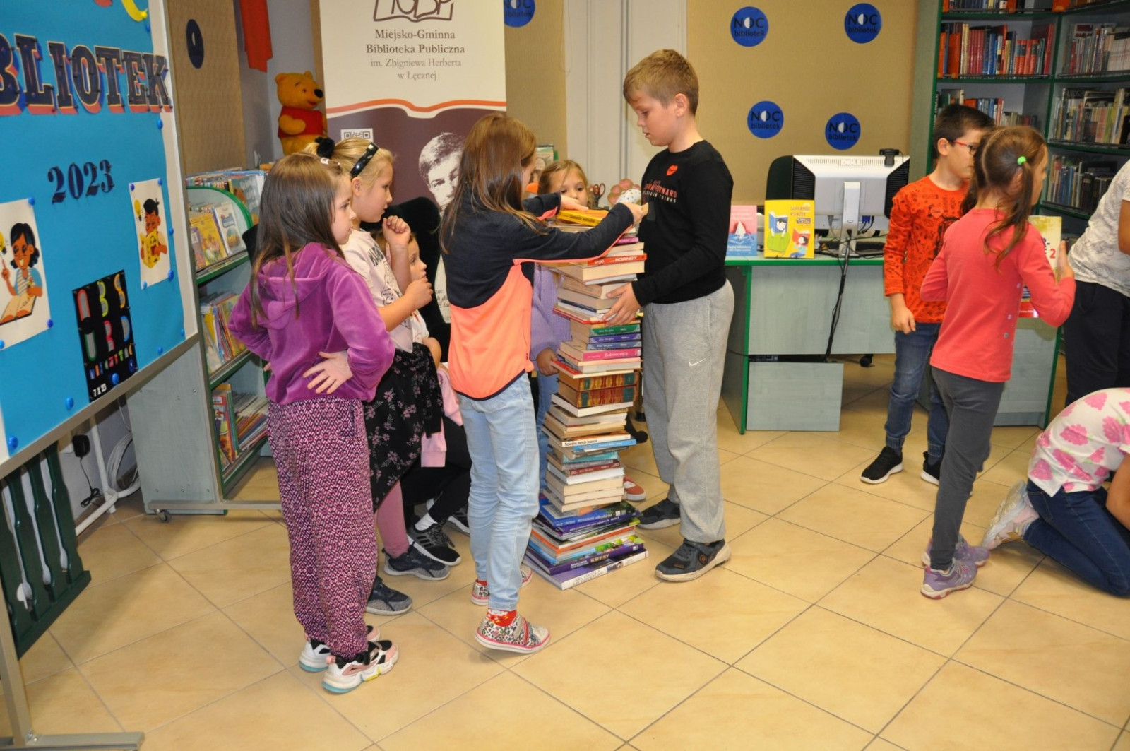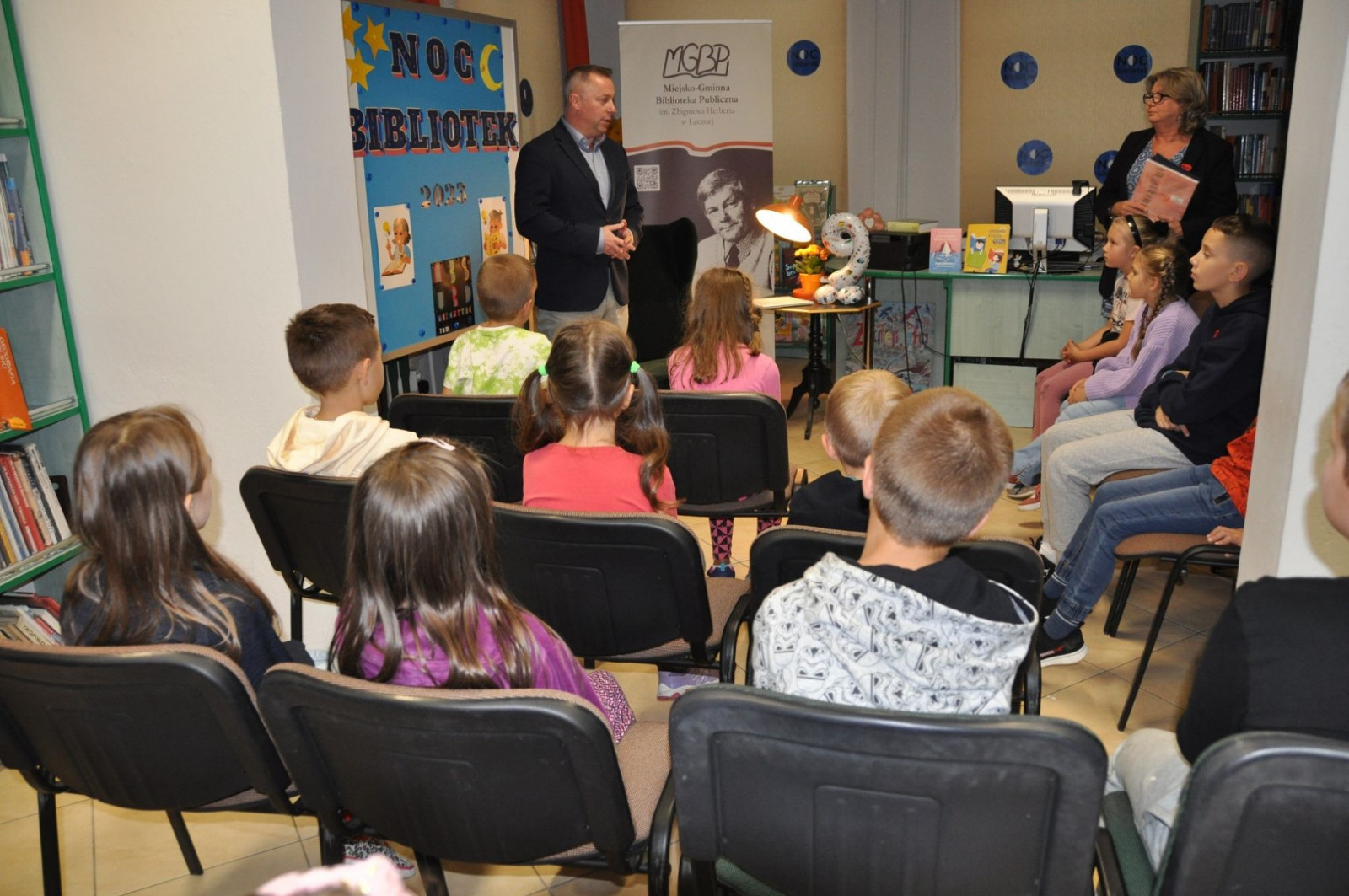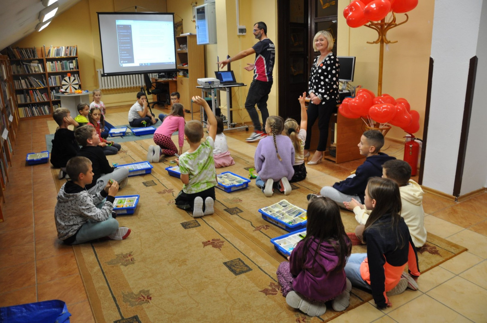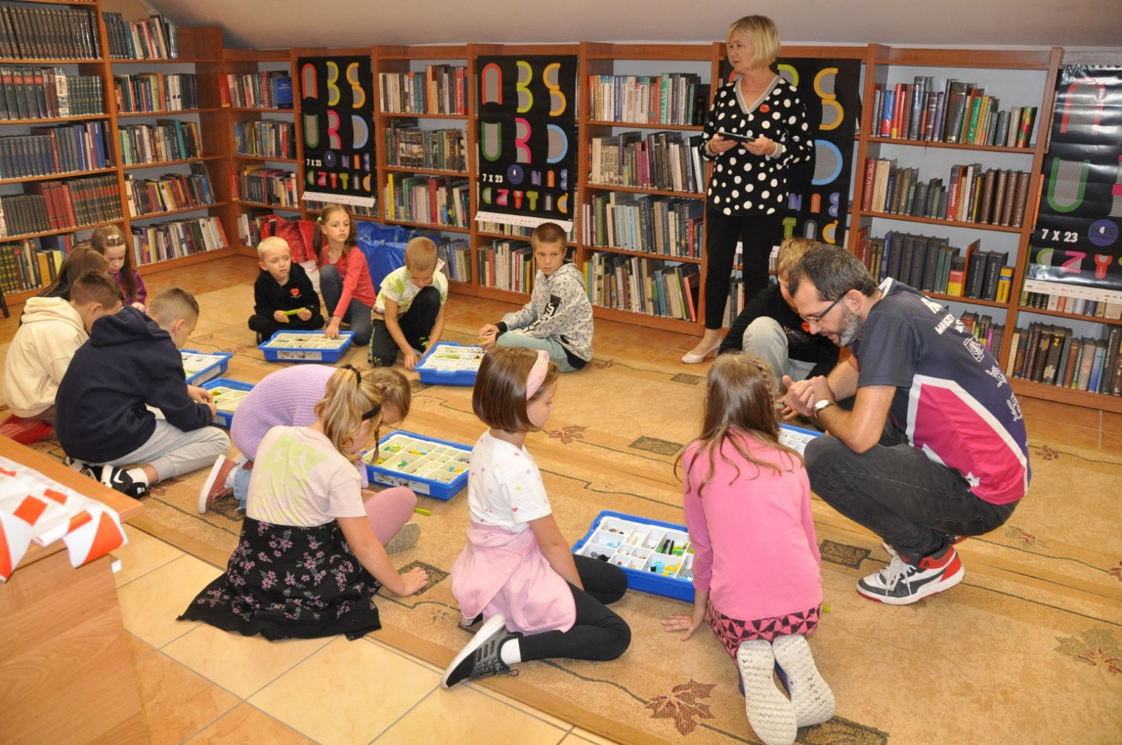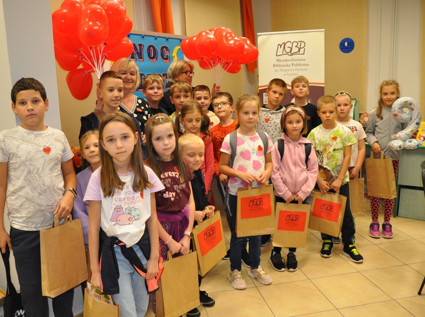 W dniu 7 października 2023 r. w Bibliotece przy ul. Bożnicznej 21 było gwarno i bardzo wesoło. Punktualnie o godzinie 17.00 do biblioteki przybyli uczestnicy wyjątkowego spotkania, jaką jest NOC BIBLIOTEK. Tegoroczna IX edycja tej ogólnopolskiej akcji obchodzona była pod hasłem "Absurd nie czytać". Na początku spotkania dyrektor Biblioteki Monika Mazurkiewicz powitała wszystkich uczestników „Nocy w Bibliotece” i zaprosiła do wspólnej zabawy. Następnie burmistrz Łęcznej – Leszek Włodarski przeczytał dzieciom książkę pt. „Nie lubię książek. Koniec. Kropka”. W dalszej części spotkania uczestnicy wspólnie rozwiązywali krzyżówkę z hasłem „Absurd nie czytać” oraz szukali odpowiedzi na pytanie - co to jest absurd?. Wkrótce potem dzieci tworzyły ciekawe absurdalne konstrukcje z klocków LEGO oraz zgłębiły tajniki sztucznej inteligencji pod kierunkiem pana Radosława Jóźwika z Firmy CyberSkill. Kolejnym punktem Nocy Bibliotek było głośne czytanie książki pt. „Najwyższa na świecie wieża z książek” przez dyrektor Biblioteki -Monikę Mazurkiewicz. Następnie dzieci stworzyły drużyny, które rywalizowały między sobą. Dużo frajdy było przy ustawianiu najwyższej wieży z zubytkowanych książek. Jak okazało się, nie było to takie proste zadanie. Wkrótce potem przyszedł czas na zajęcia „Wiem, bo czytam”. Dzieci brały udział w literackim kole fortuny, zabawie w skojarzenia, uzupełnianiu cytatów oraz pomylonych tytułów książek. Uczestnicy spotkania z łatwością odgadywali tytuły bajek, doskonale się przy tym bawiąc oraz zdobywając nagrody. Był też czas na zabawy ruchowo-muzyczne z chustą Klanzy oraz skaczącymi stópkami. Po wspólnej kolacji, nadszedł czas na projekcję filmu pt. „Moja mama Gorylica”. Brzmiący absurdalnie tytuł filmu, to historia małej Jonnie mieszkającej w domu dziecka, którą pewnego dnia adoptuje gorylica. Dzieci z wielkim zainteresowaniem oglądały ten wyjątkowy film, prezentujący inność, miłość, ogromną empatię i troskę o słabszych. Czas spędzony w Bibliotece minął bardzo szybko, większości uczestnikom za szybko. Na zakończenie imprezy, o godzinie 21, wszyscy otrzymali pamiątkowe dyplomy, zakładki z logo Nocy Bibliotek oraz balony w kształcie serca. Cieszymy się, że dzieci uwielbiają takie inicjatywy i bardzo chętnie biorą w nich udział. Mamy nadzieję, że Wszyscy dobrze się bawili i Noc w Bibliotece na długo pozostanie w ich pamięci.