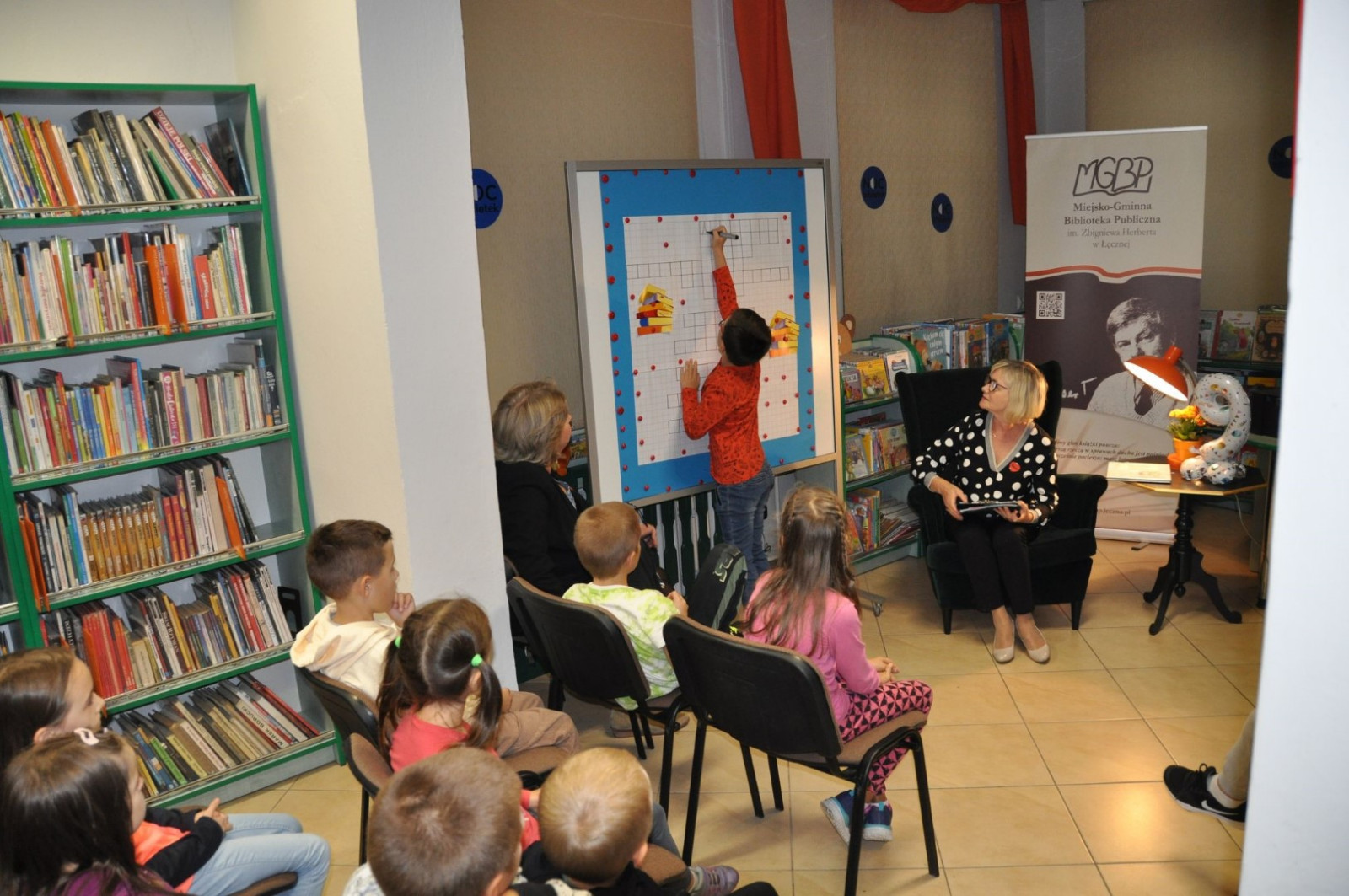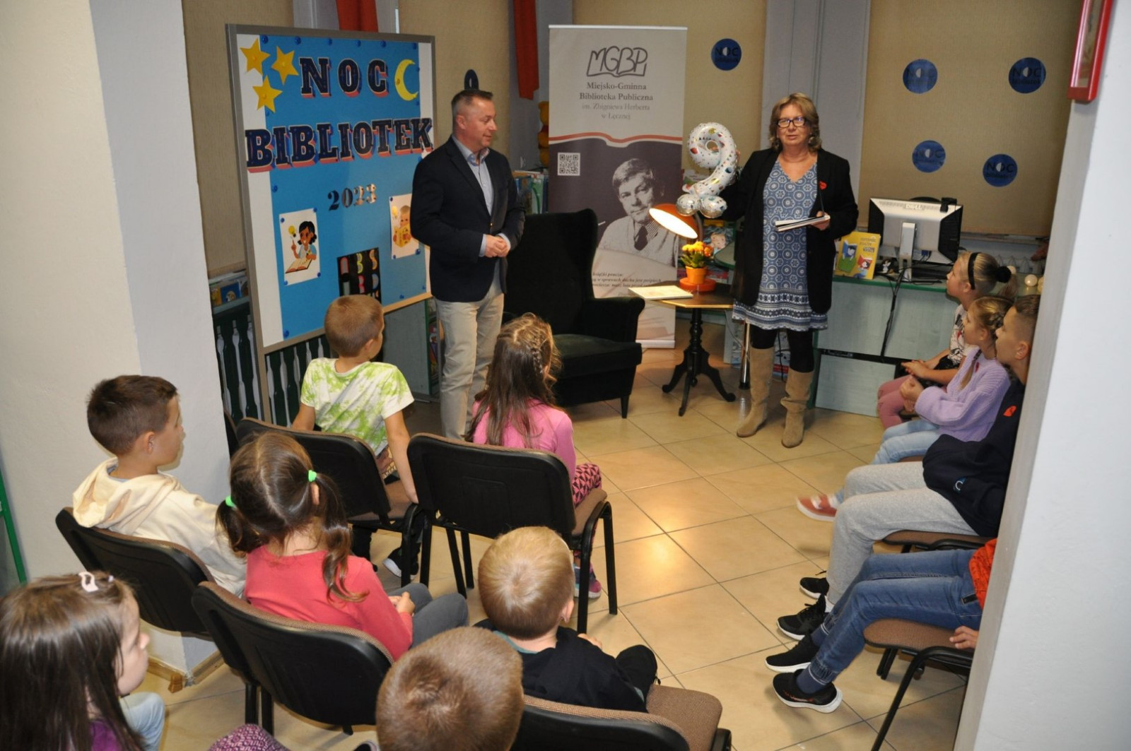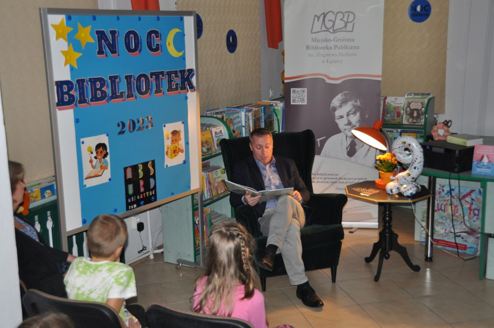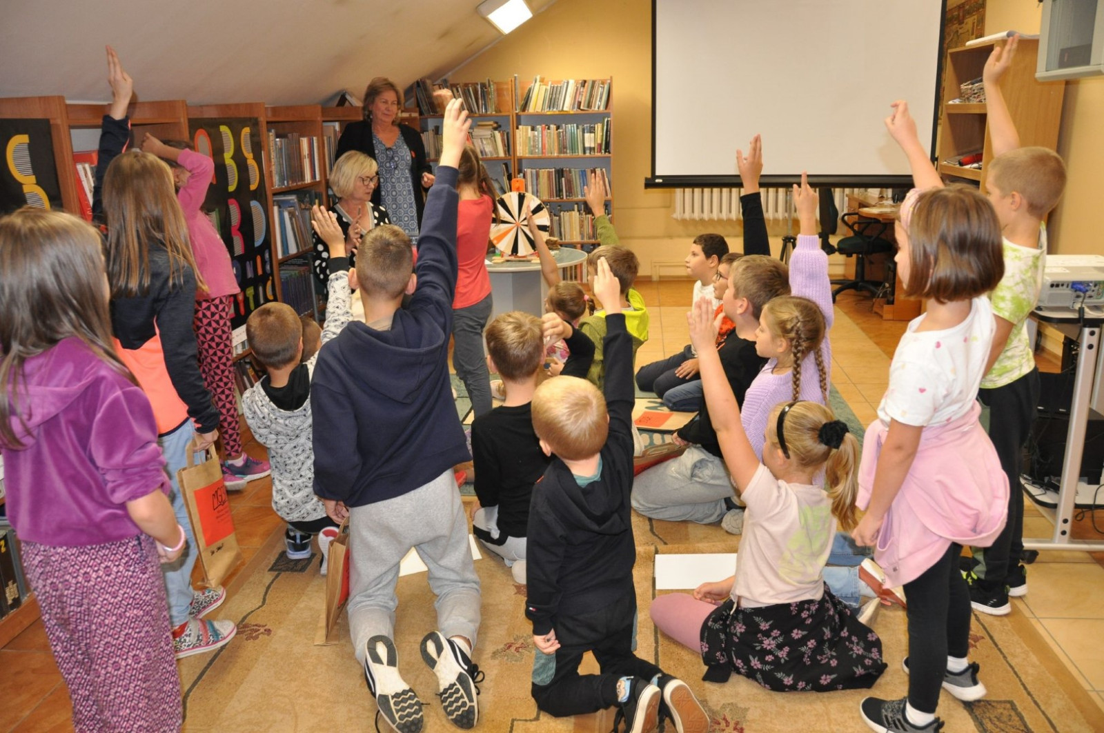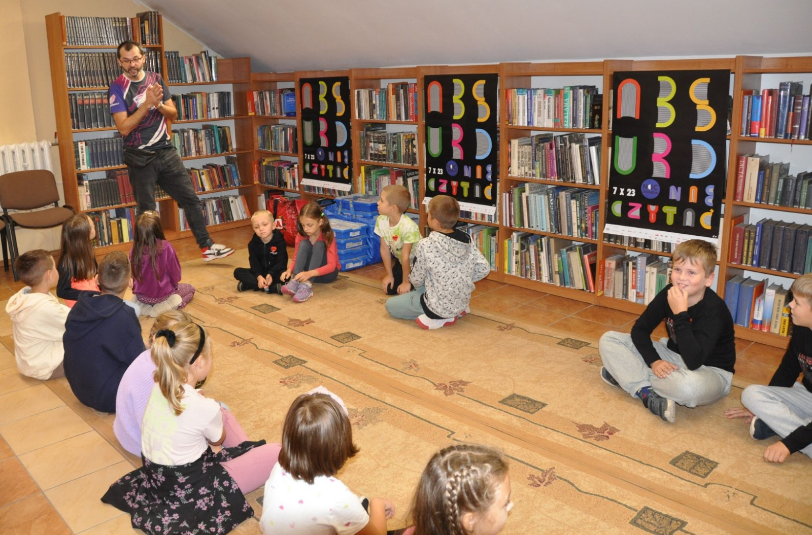W dniu 7 października 2023 r. w Bibliotece przy ul. Bożnicznej 21 było gwarno i bardzo wesoło. Punktualnie o godzinie 17.00 do biblioteki przybyli uczestnicy wyjątkowego spotkania, jaką jest NOC BIBLIOTEK. Tegoroczna IX edycja tej ogólnopolskiej akcji obchodzona była pod hasłem "Absurd nie czytać". Na początku spotkania dyrektor Biblioteki Monika Mazurkiewicz powitała wszystkich uczestników „Nocy w Bibliotece” i zaprosiła do wspólnej zabawy. Następnie burmistrz Łęcznej – Leszek Włodarski przeczytał dzieciom książkę pt. „Nie lubię książek. Koniec. Kropka”. W dalszej części spotkania uczestnicy wspólnie rozwiązywali krzyżówkę z hasłem „Absurd nie czytać” oraz szukali odpowiedzi na pytanie - co to jest absurd?. Wkrótce potem dzieci tworzyły ciekawe absurdalne konstrukcje z klocków LEGO oraz zgłębiły tajniki sztucznej inteligencji pod kierunkiem pana Radosława Jóźwika z Firmy CyberSkill. Kolejnym punktem Nocy Bibliotek było głośne czytanie książki pt. „Najwyższa na świecie wieża z książek” przez dyrektor Biblioteki -Monikę Mazurkiewicz. Następnie dzieci stworzyły drużyny, które rywalizowały między sobą. Dużo frajdy było przy ustawianiu najwyższej wieży z zubytkowanych książek. Jak okazało się, nie było to takie proste zadanie. Wkrótce potem przyszedł czas na zajęcia „Wiem, bo czytam”. Dzieci brały udział w literackim kole fortuny, zabawie w skojarzenia, uzupełnianiu cytatów oraz pomylonych tytułów książek. Uczestnicy spotkania z łatwością odgadywali tytuły bajek, doskonale się przy tym bawiąc oraz zdobywając nagrody. Był też czas na zabawy ruchowo-muzyczne z chustą Klanzy oraz skaczącymi stópkami. Po wspólnej kolacji, nadszedł czas na projekcję filmu pt. „Moja mama Gorylica”. Brzmiący absurdalnie tytuł filmu, to historia małej Jonnie mieszkającej w domu dziecka, którą pewnego dnia adoptuje gorylica. Dzieci z wielkim zainteresowaniem oglądały ten wyjątkowy film, prezentujący inność, miłość, ogromną empatię i troskę o słabszych. Czas spędzony w Bibliotece minął bardzo szybko, większości uczestnikom za szybko. Na zakończenie imprezy, o godzinie 21, wszyscy otrzymali pamiątkowe dyplomy, zakładki z logo Nocy Bibliotek oraz balony w kształcie serca. Cieszymy się, że dzieci uwielbiają takie inicjatywy i bardzo chętnie biorą w nich udział. Mamy nadzieję, że Wszyscy dobrze się bawili i Noc w Bibliotece na długo pozostanie w ich pamięci.