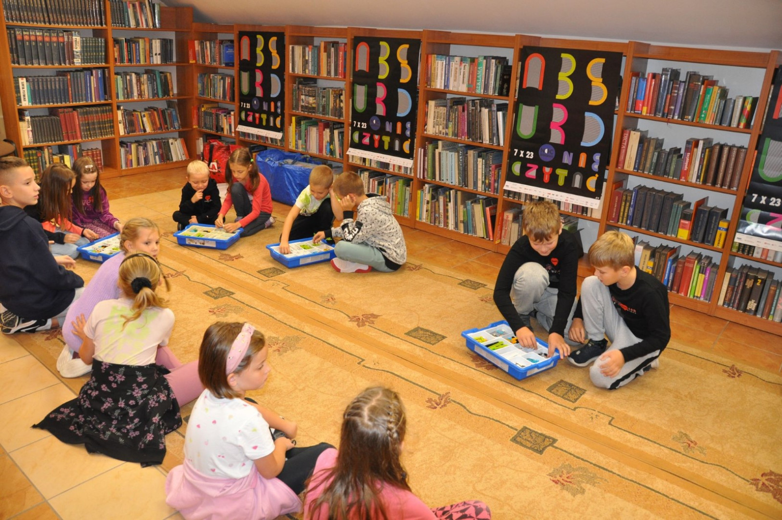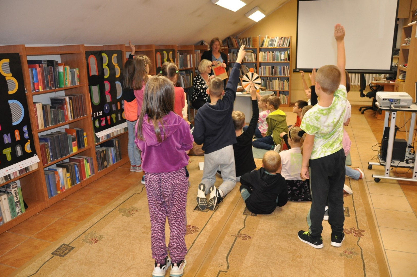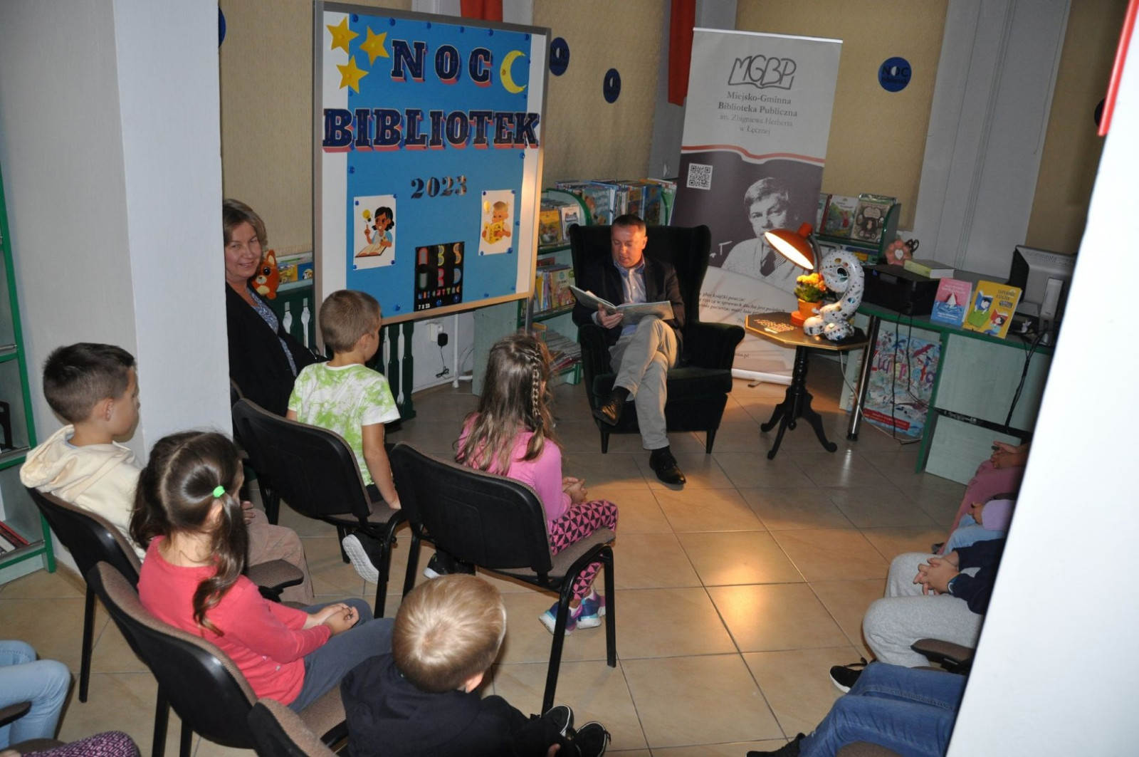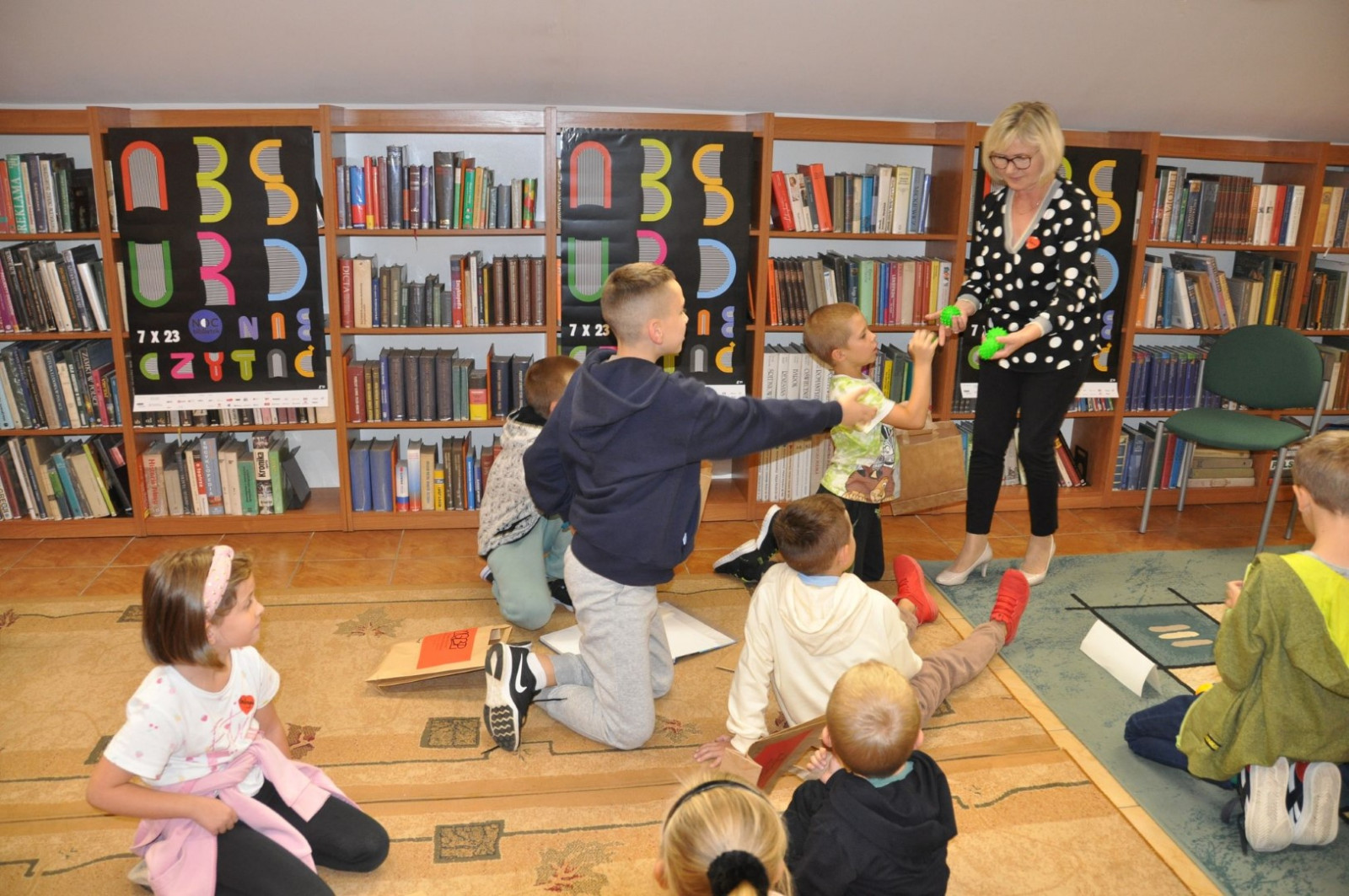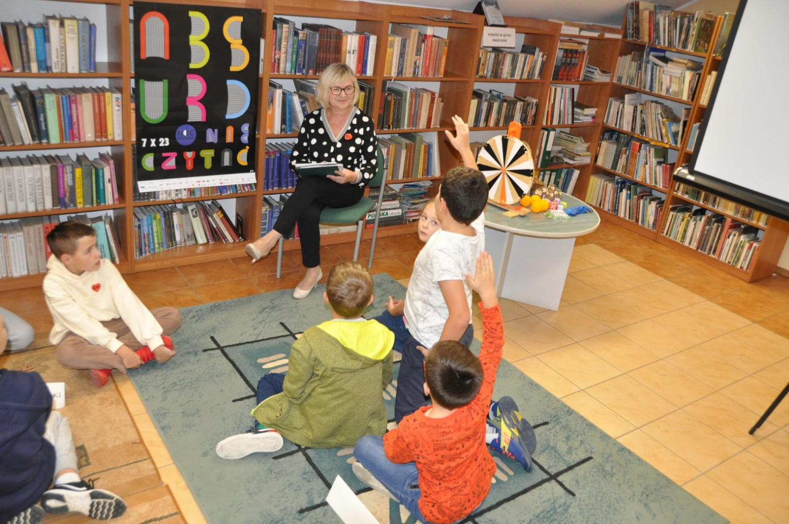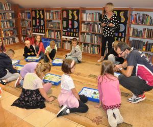 W dniu 7 października 2023 r. w Bibliotece przy ul. Bożnicznej 21 było gwarno i bardzo wesoło. Punktualnie o godzinie 17.00 do biblioteki przybyli uczestnicy wyjątkowego spotkania, jaką jest NOC BIBLIOTEK. Tegoroczna IX edycja tej ogólnopolskiej akcji obchodzona była pod hasłem "Absurd nie czytać". Na początku spotkania dyrektor Biblioteki Monika Mazurkiewicz powitała wszystkich uczestników „Nocy w Bibliotece” i zaprosiła do wspólnej zabawy. Następnie burmistrz Łęcznej – Leszek Włodarski przeczytał dzieciom książkę pt. „Nie lubię książek. Koniec. Kropka”. W dalszej części spotkania uczestnicy wspólnie rozwiązywali krzyżówkę z hasłem „Absurd nie czytać” oraz szukali odpowiedzi na pytanie - co to jest absurd?. Wkrótce potem dzieci tworzyły ciekawe absurdalne konstrukcje z klocków LEGO oraz zgłębiły tajniki sztucznej inteligencji pod kierunkiem pana Radosława Jóźwika z Firmy CyberSkill. Kolejnym punktem Nocy Bibliotek było głośne czytanie książki pt. „Najwyższa na świecie wieża z książek” przez dyrektor Biblioteki -Monikę Mazurkiewicz. Następnie dzieci stworzyły drużyny, które rywalizowały między sobą. Dużo frajdy było przy ustawianiu najwyższej wieży z zubytkowanych książek. Jak okazało się, nie było to takie proste zadanie. Wkrótce potem przyszedł czas na zajęcia „Wiem, bo czytam”. Dzieci brały udział w literackim kole fortuny, zabawie w skojarzenia, uzupełnianiu cytatów oraz pomylonych tytułów książek. Uczestnicy spotkania z łatwością odgadywali tytuły bajek, doskonale się przy tym bawiąc oraz zdobywając nagrody. Był też czas na zabawy ruchowo-muzyczne z chustą Klanzy oraz skaczącymi stópkami. Po wspólnej kolacji, nadszedł czas na projekcję filmu pt. „Moja mama Gorylica”. Brzmiący absurdalnie tytuł filmu, to historia małej Jonnie mieszkającej w domu dziecka, którą pewnego dnia adoptuje gorylica. Dzieci z wielkim zainteresowaniem oglądały ten wyjątkowy film, prezentujący inność, miłość, ogromną empatię i troskę o słabszych. Czas spędzony w Bibliotece minął bardzo szybko, większości uczestnikom za szybko. Na zakończenie imprezy, o godzinie 21, wszyscy otrzymali pamiątkowe dyplomy, zakładki z logo Nocy Bibliotek oraz balony w kształcie serca. Cieszymy się, że dzieci uwielbiają takie inicjatywy i bardzo chętnie biorą w nich udział. Mamy nadzieję, że Wszyscy dobrze się bawili i Noc w Bibliotece na długo pozostanie w ich pamięci.