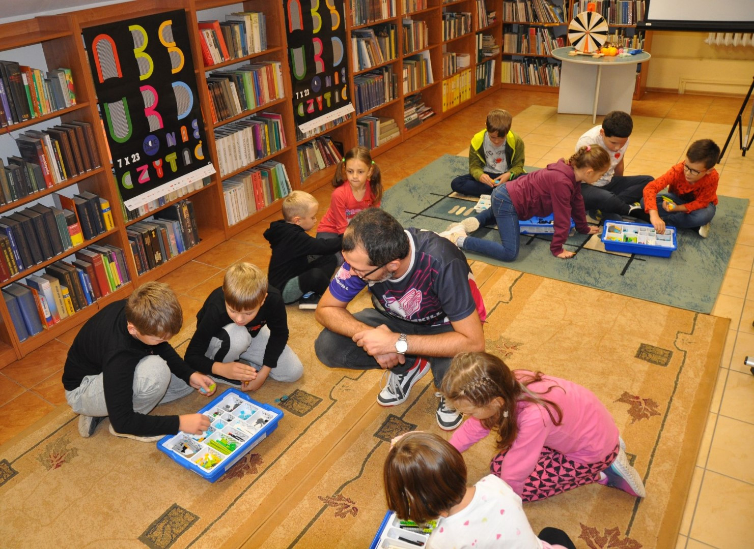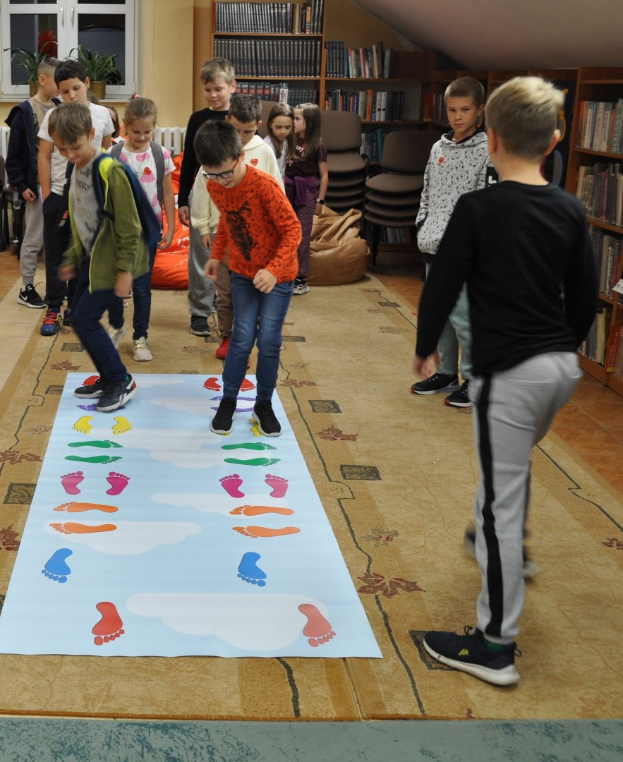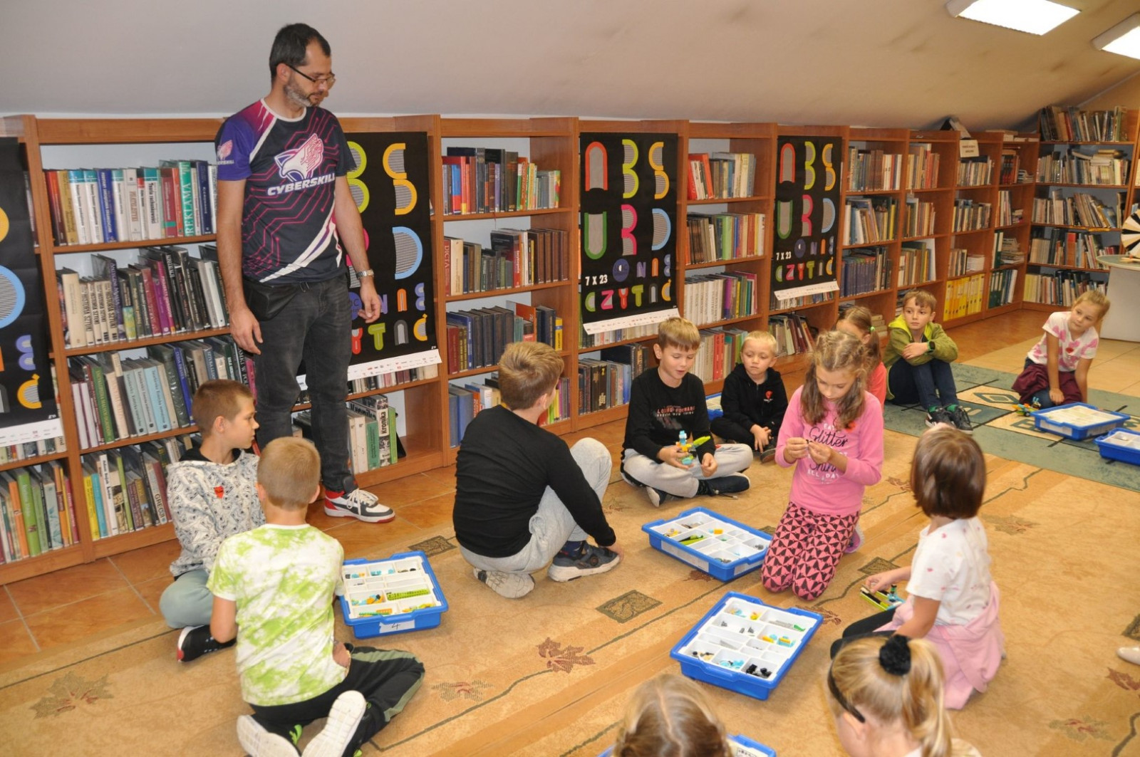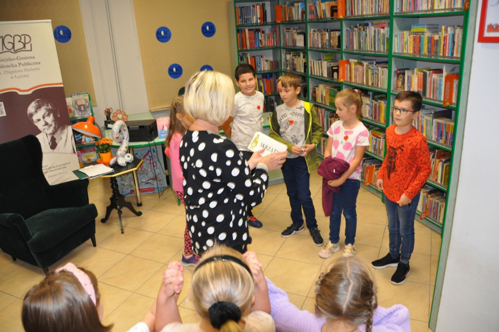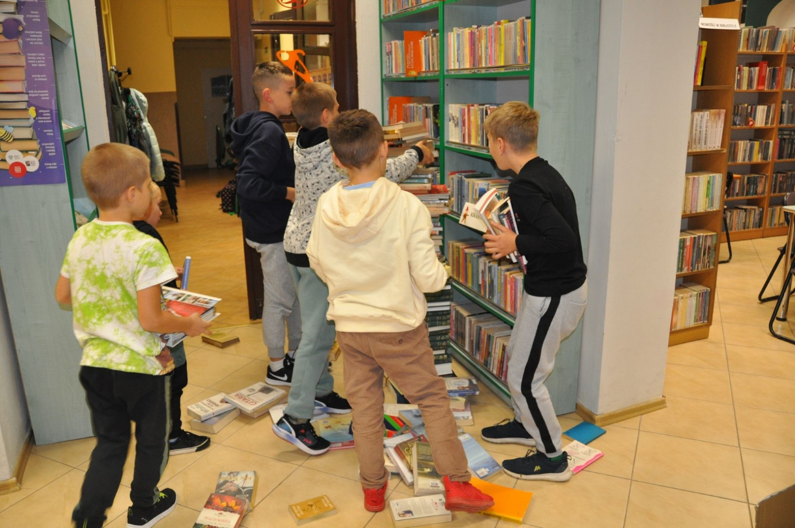 W dniu 7 października 2023 r. w Bibliotece przy ul. Bożnicznej 21 było gwarno i bardzo wesoło. Punktualnie o godzinie 17.00 do biblioteki przybyli uczestnicy wyjątkowego spotkania, jaką jest NOC BIBLIOTEK. Tegoroczna IX edycja tej ogólnopolskiej akcji obchodzona była pod hasłem "Absurd nie czytać". Na początku spotkania dyrektor Biblioteki Monika Mazurkiewicz powitała wszystkich uczestników „Nocy w Bibliotece” i zaprosiła do wspólnej zabawy. Następnie burmistrz Łęcznej – Leszek Włodarski przeczytał dzieciom książkę pt. „Nie lubię książek. Koniec. Kropka”. W dalszej części spotkania uczestnicy wspólnie rozwiązywali krzyżówkę z hasłem „Absurd nie czytać” oraz szukali odpowiedzi na pytanie - co to jest absurd?. Wkrótce potem dzieci tworzyły ciekawe absurdalne konstrukcje z klocków LEGO oraz zgłębiły tajniki sztucznej inteligencji pod kierunkiem pana Radosława Jóźwika z Firmy CyberSkill. Kolejnym punktem Nocy Bibliotek było głośne czytanie książki pt. „Najwyższa na świecie wieża z książek” przez dyrektor Biblioteki -Monikę Mazurkiewicz. Następnie dzieci stworzyły drużyny, które rywalizowały między sobą. Dużo frajdy było przy ustawianiu najwyższej wieży z zubytkowanych książek. Jak okazało się, nie było to takie proste zadanie. Wkrótce potem przyszedł czas na zajęcia „Wiem, bo czytam”. Dzieci brały udział w literackim kole fortuny, zabawie w skojarzenia, uzupełnianiu cytatów oraz pomylonych tytułów książek. Uczestnicy spotkania z łatwością odgadywali tytuły bajek, doskonale się przy tym bawiąc oraz zdobywając nagrody. Był też czas na zabawy ruchowo-muzyczne z chustą Klanzy oraz skaczącymi stópkami. Po wspólnej kolacji, nadszedł czas na projekcję filmu pt. „Moja mama Gorylica”. Brzmiący absurdalnie tytuł filmu, to historia małej Jonnie mieszkającej w domu dziecka, którą pewnego dnia adoptuje gorylica. Dzieci z wielkim zainteresowaniem oglądały ten wyjątkowy film, prezentujący inność, miłość, ogromną empatię i troskę o słabszych. Czas spędzony w Bibliotece minął bardzo szybko, większości uczestnikom za szybko. Na zakończenie imprezy, o godzinie 21, wszyscy otrzymali pamiątkowe dyplomy, zakładki z logo Nocy Bibliotek oraz balony w kształcie serca. Cieszymy się, że dzieci uwielbiają takie inicjatywy i bardzo chętnie biorą w nich udział. Mamy nadzieję, że Wszyscy dobrze się bawili i Noc w Bibliotece na długo pozostanie w ich pamięci.