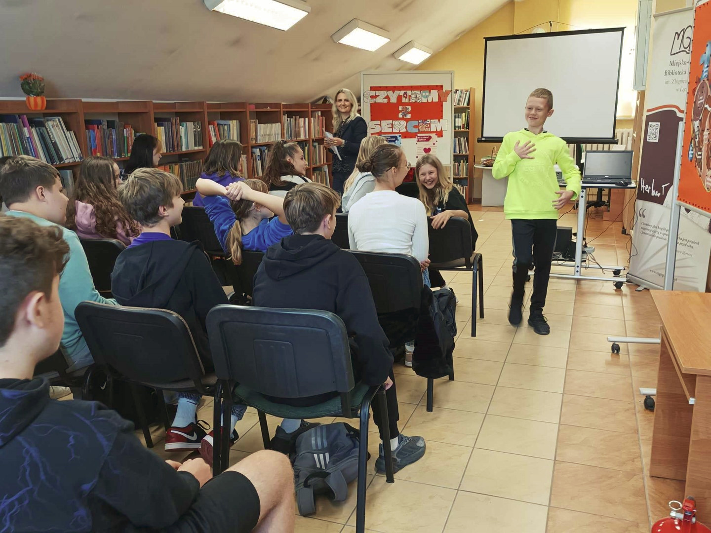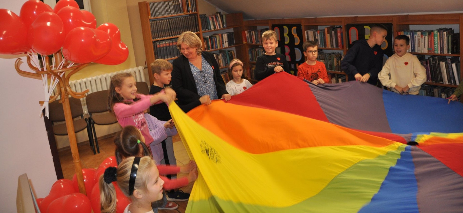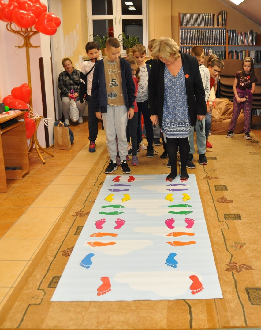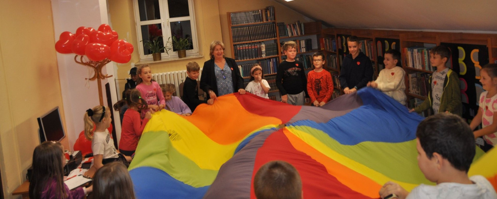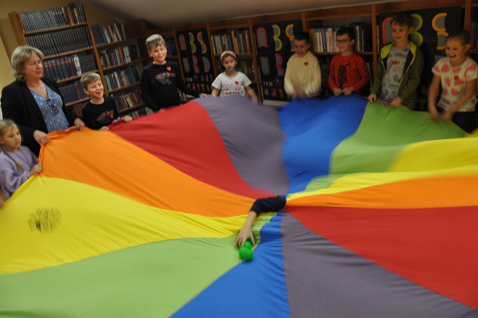 W dniu 7 października 2023 r. w Bibliotece przy ul. Bożnicznej 21 było gwarno i bardzo wesoło. Punktualnie o godzinie 17.00 do biblioteki przybyli uczestnicy wyjątkowego spotkania, jaką jest NOC BIBLIOTEK. Tegoroczna IX edycja tej ogólnopolskiej akcji obchodzona była pod hasłem "Absurd nie czytać". Na początku spotkania dyrektor Biblioteki Monika Mazurkiewicz powitała wszystkich uczestników „Nocy w Bibliotece” i zaprosiła do wspólnej zabawy. Następnie burmistrz Łęcznej – Leszek Włodarski przeczytał dzieciom książkę pt. „Nie lubię książek. Koniec. Kropka”. W dalszej części spotkania uczestnicy wspólnie rozwiązywali krzyżówkę z hasłem „Absurd nie czytać” oraz szukali odpowiedzi na pytanie - co to jest absurd?. Wkrótce potem dzieci tworzyły ciekawe absurdalne konstrukcje z klocków LEGO oraz zgłębiły tajniki sztucznej inteligencji pod kierunkiem pana Radosława Jóźwika z Firmy CyberSkill. Kolejnym punktem Nocy Bibliotek było głośne czytanie książki pt. „Najwyższa na świecie wieża z książek” przez dyrektor Biblioteki -Monikę Mazurkiewicz. Następnie dzieci stworzyły drużyny, które rywalizowały między sobą. Dużo frajdy było przy ustawianiu najwyższej wieży z zubytkowanych książek. Jak okazało się, nie było to takie proste zadanie. Wkrótce potem przyszedł czas na zajęcia „Wiem, bo czytam”. Dzieci brały udział w literackim kole fortuny, zabawie w skojarzenia, uzupełnianiu cytatów oraz pomylonych tytułów książek. Uczestnicy spotkania z łatwością odgadywali tytuły bajek, doskonale się przy tym bawiąc oraz zdobywając nagrody. Był też czas na zabawy ruchowo-muzyczne z chustą Klanzy oraz skaczącymi stópkami. Po wspólnej kolacji, nadszedł czas na projekcję filmu pt. „Moja mama Gorylica”. Brzmiący absurdalnie tytuł filmu, to historia małej Jonnie mieszkającej w domu dziecka, którą pewnego dnia adoptuje gorylica. Dzieci z wielkim zainteresowaniem oglądały ten wyjątkowy film, prezentujący inność, miłość, ogromną empatię i troskę o słabszych. Czas spędzony w Bibliotece minął bardzo szybko, większości uczestnikom za szybko. Na zakończenie imprezy, o godzinie 21, wszyscy otrzymali pamiątkowe dyplomy, zakładki z logo Nocy Bibliotek oraz balony w kształcie serca. Cieszymy się, że dzieci uwielbiają takie inicjatywy i bardzo chętnie biorą w nich udział. Mamy nadzieję, że Wszyscy dobrze się bawili i Noc w Bibliotece na długo pozostanie w ich pamięci.