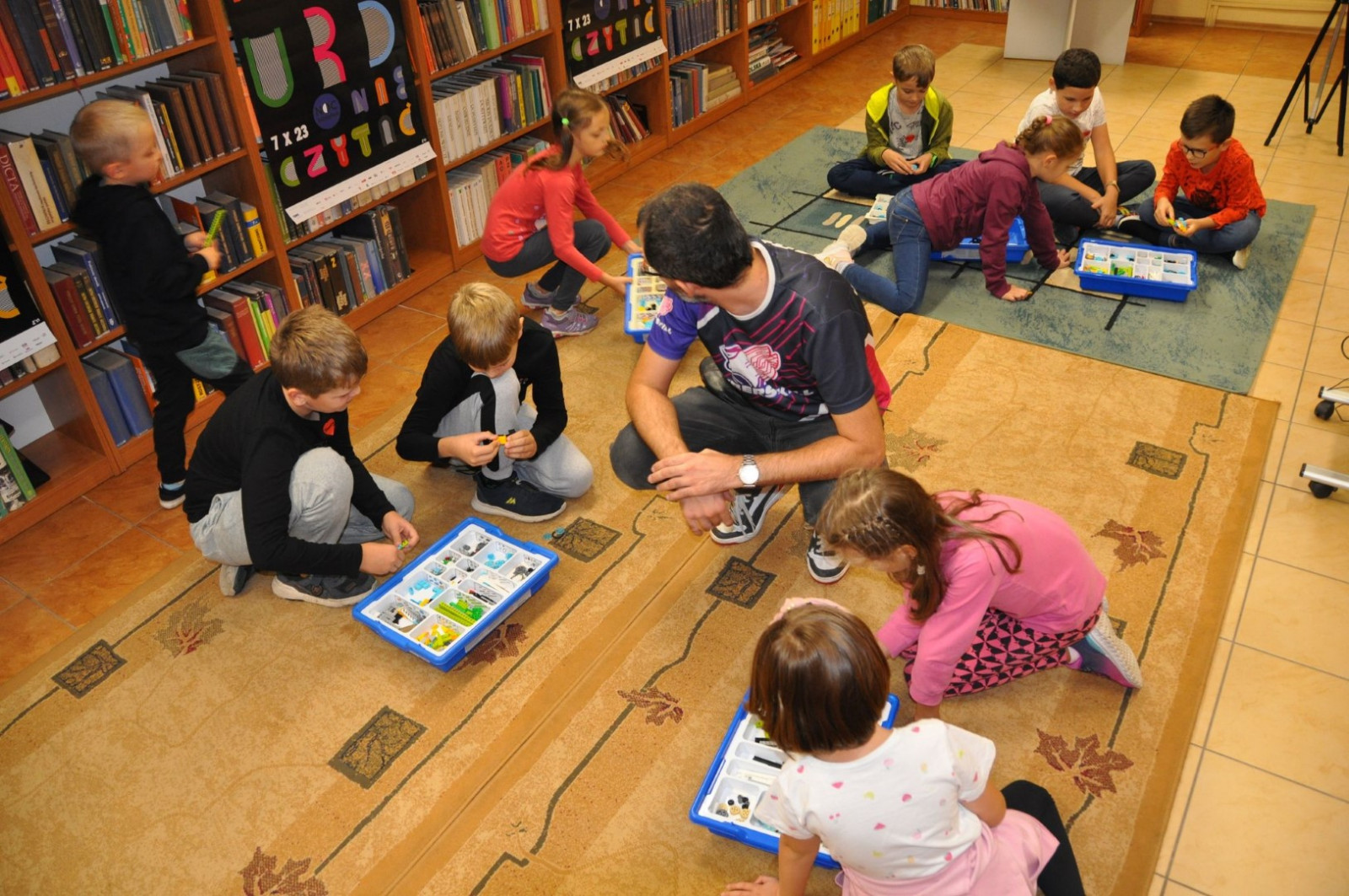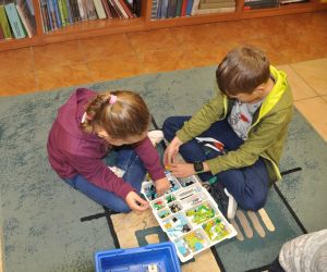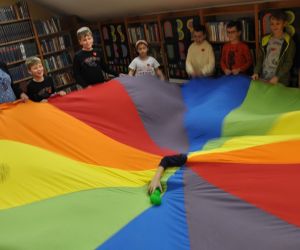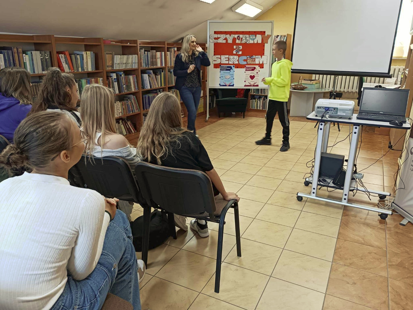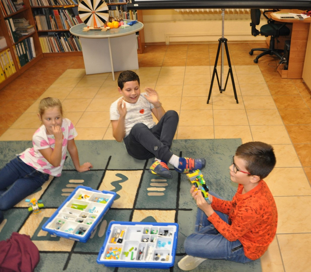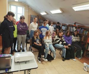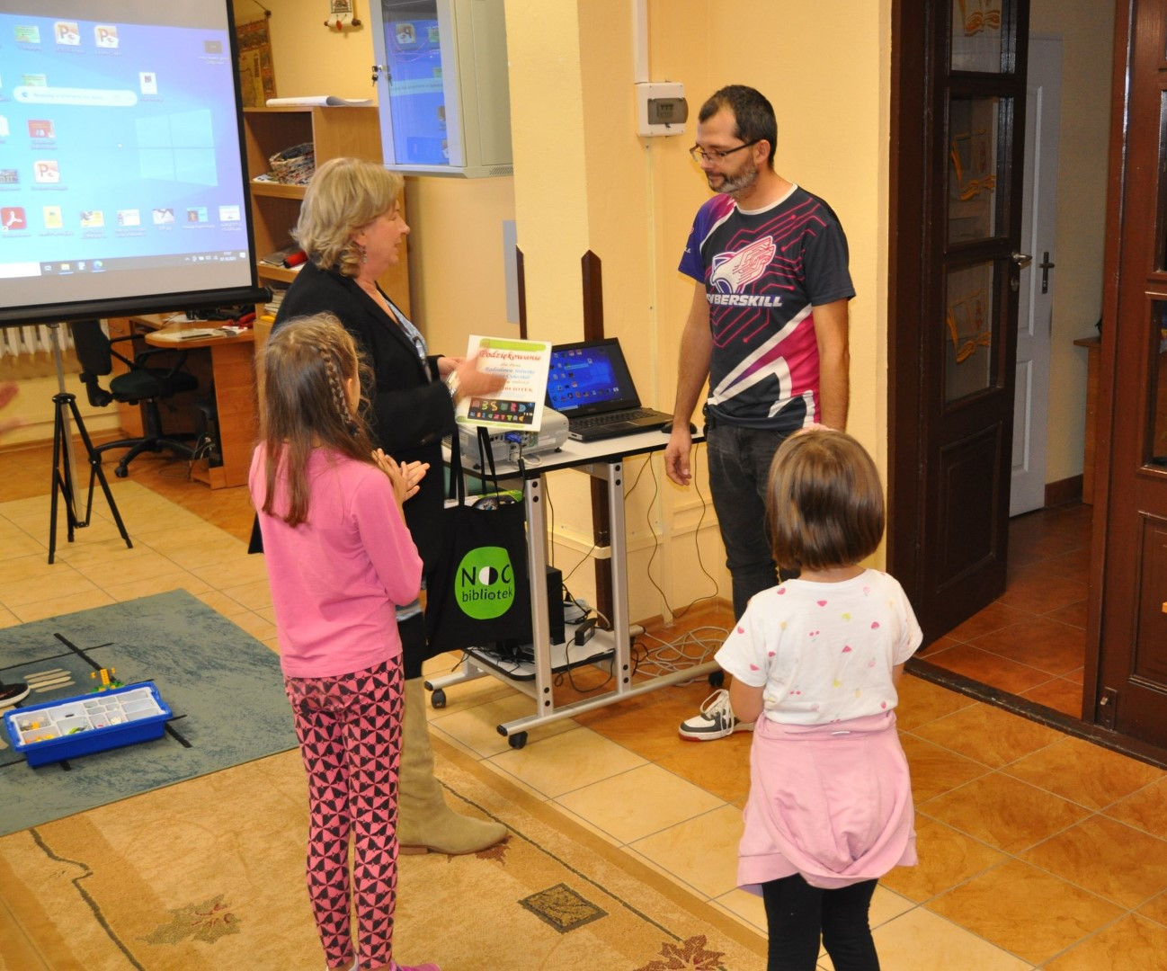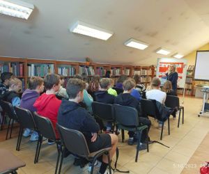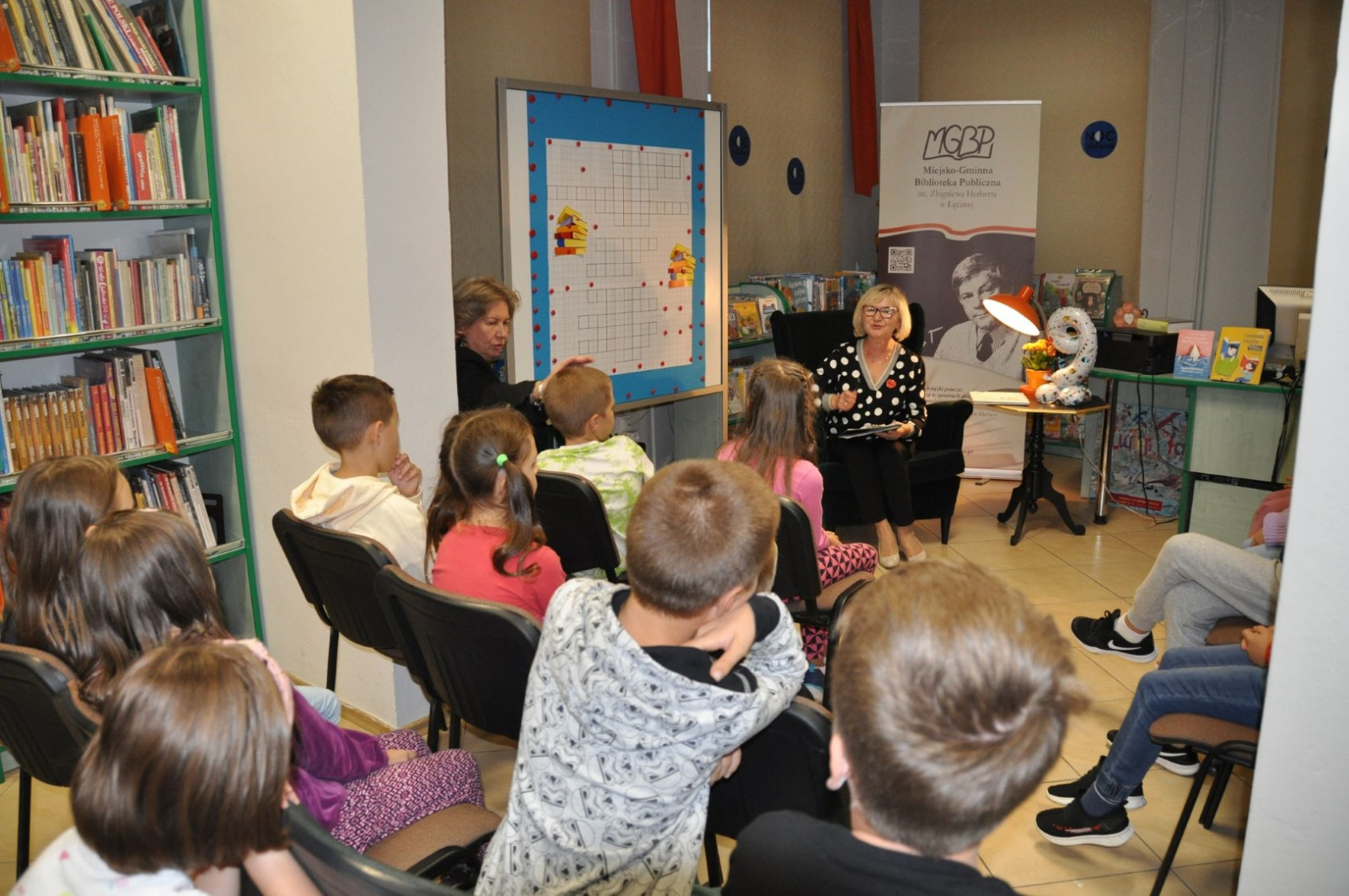 W dniu 7 października 2023 r. w Bibliotece przy ul. Bożnicznej 21 było gwarno i bardzo wesoło. Punktualnie o godzinie 17.00 do biblioteki przybyli uczestnicy wyjątkowego spotkania, jaką jest NOC BIBLIOTEK. Tegoroczna IX edycja tej ogólnopolskiej akcji obchodzona była pod hasłem "Absurd nie czytać". Na początku spotkania dyrektor Biblioteki Monika Mazurkiewicz powitała wszystkich uczestników „Nocy w Bibliotece” i zaprosiła do wspólnej zabawy. Następnie burmistrz Łęcznej – Leszek Włodarski przeczytał dzieciom książkę pt. „Nie lubię książek. Koniec. Kropka”. W dalszej części spotkania uczestnicy wspólnie rozwiązywali krzyżówkę z hasłem „Absurd nie czytać” oraz szukali odpowiedzi na pytanie - co to jest absurd?. Wkrótce potem dzieci tworzyły ciekawe absurdalne konstrukcje z klocków LEGO oraz zgłębiły tajniki sztucznej inteligencji pod kierunkiem pana Radosława Jóźwika z Firmy CyberSkill. Kolejnym punktem Nocy Bibliotek było głośne czytanie książki pt. „Najwyższa na świecie wieża z książek” przez dyrektor Biblioteki -Monikę Mazurkiewicz. Następnie dzieci stworzyły drużyny, które rywalizowały między sobą. Dużo frajdy było przy ustawianiu najwyższej wieży z zubytkowanych książek. Jak okazało się, nie było to takie proste zadanie. Wkrótce potem przyszedł czas na zajęcia „Wiem, bo czytam”. Dzieci brały udział w literackim kole fortuny, zabawie w skojarzenia, uzupełnianiu cytatów oraz pomylonych tytułów książek. Uczestnicy spotkania z łatwością odgadywali tytuły bajek, doskonale się przy tym bawiąc oraz zdobywając nagrody. Był też czas na zabawy ruchowo-muzyczne z chustą Klanzy oraz skaczącymi stópkami. Po wspólnej kolacji, nadszedł czas na projekcję filmu pt. „Moja mama Gorylica”. Brzmiący absurdalnie tytuł filmu, to historia małej Jonnie mieszkającej w domu dziecka, którą pewnego dnia adoptuje gorylica. Dzieci z wielkim zainteresowaniem oglądały ten wyjątkowy film, prezentujący inność, miłość, ogromną empatię i troskę o słabszych. Czas spędzony w Bibliotece minął bardzo szybko, większości uczestnikom za szybko. Na zakończenie imprezy, o godzinie 21, wszyscy otrzymali pamiątkowe dyplomy, zakładki z logo Nocy Bibliotek oraz balony w kształcie serca. Cieszymy się, że dzieci uwielbiają takie inicjatywy i bardzo chętnie biorą w nich udział. Mamy nadzieję, że Wszyscy dobrze się bawili i Noc w Bibliotece na długo pozostanie w ich pamięci.