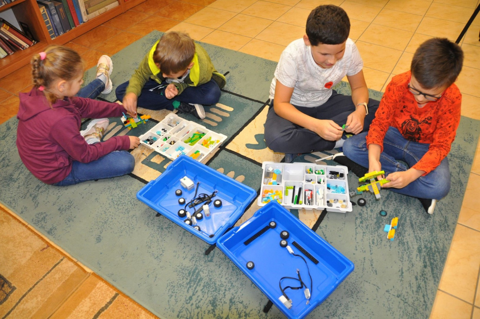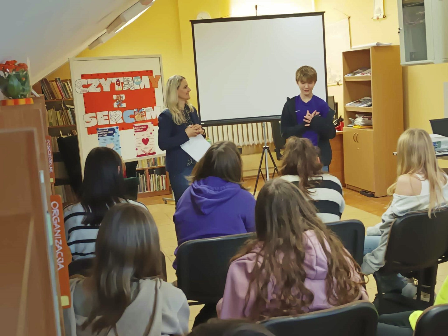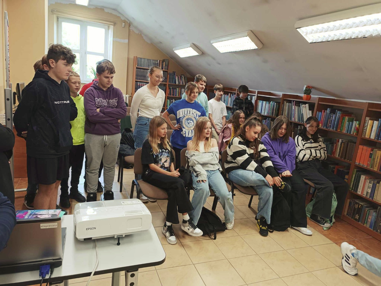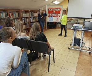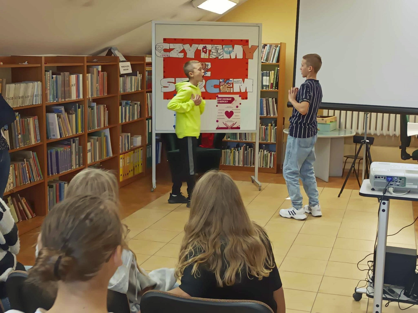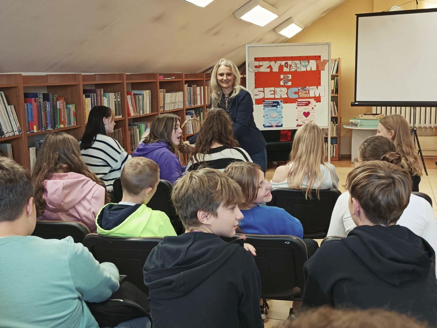 W dniu 7 października 2023 r. w Bibliotece przy ul. Bożnicznej 21 było gwarno i bardzo wesoło. Punktualnie o godzinie 17.00 do biblioteki przybyli uczestnicy wyjątkowego spotkania, jaką jest NOC BIBLIOTEK. Tegoroczna IX edycja tej ogólnopolskiej akcji obchodzona była pod hasłem "Absurd nie czytać". Na początku spotkania dyrektor Biblioteki Monika Mazurkiewicz powitała wszystkich uczestników „Nocy w Bibliotece” i zaprosiła do wspólnej zabawy. Następnie burmistrz Łęcznej – Leszek Włodarski przeczytał dzieciom książkę pt. „Nie lubię książek. Koniec. Kropka”. W dalszej części spotkania uczestnicy wspólnie rozwiązywali krzyżówkę z hasłem „Absurd nie czytać” oraz szukali odpowiedzi na pytanie - co to jest absurd?. Wkrótce potem dzieci tworzyły ciekawe absurdalne konstrukcje z klocków LEGO oraz zgłębiły tajniki sztucznej inteligencji pod kierunkiem pana Radosława Jóźwika z Firmy CyberSkill. Kolejnym punktem Nocy Bibliotek było głośne czytanie książki pt. „Najwyższa na świecie wieża z książek” przez dyrektor Biblioteki -Monikę Mazurkiewicz. Następnie dzieci stworzyły drużyny, które rywalizowały między sobą. Dużo frajdy było przy ustawianiu najwyższej wieży z zubytkowanych książek. Jak okazało się, nie było to takie proste zadanie. Wkrótce potem przyszedł czas na zajęcia „Wiem, bo czytam”. Dzieci brały udział w literackim kole fortuny, zabawie w skojarzenia, uzupełnianiu cytatów oraz pomylonych tytułów książek. Uczestnicy spotkania z łatwością odgadywali tytuły bajek, doskonale się przy tym bawiąc oraz zdobywając nagrody. Był też czas na zabawy ruchowo-muzyczne z chustą Klanzy oraz skaczącymi stópkami. Po wspólnej kolacji, nadszedł czas na projekcję filmu pt. „Moja mama Gorylica”. Brzmiący absurdalnie tytuł filmu, to historia małej Jonnie mieszkającej w domu dziecka, którą pewnego dnia adoptuje gorylica. Dzieci z wielkim zainteresowaniem oglądały ten wyjątkowy film, prezentujący inność, miłość, ogromną empatię i troskę o słabszych. Czas spędzony w Bibliotece minął bardzo szybko, większości uczestnikom za szybko. Na zakończenie imprezy, o godzinie 21, wszyscy otrzymali pamiątkowe dyplomy, zakładki z logo Nocy Bibliotek oraz balony w kształcie serca. Cieszymy się, że dzieci uwielbiają takie inicjatywy i bardzo chętnie biorą w nich udział. Mamy nadzieję, że Wszyscy dobrze się bawili i Noc w Bibliotece na długo pozostanie w ich pamięci.