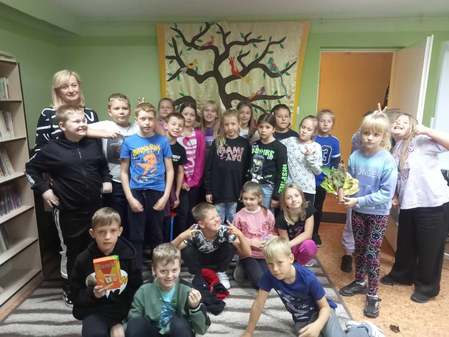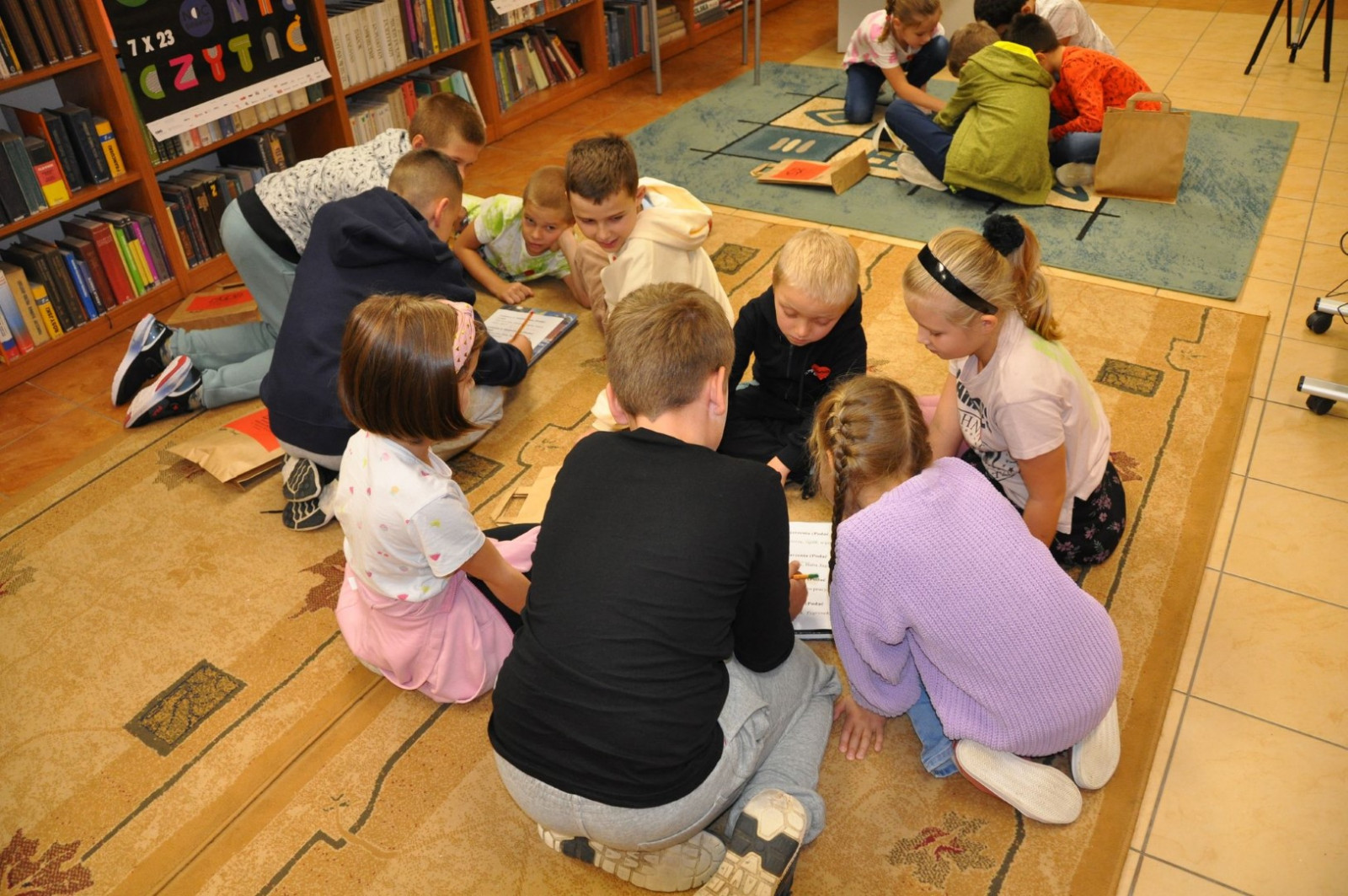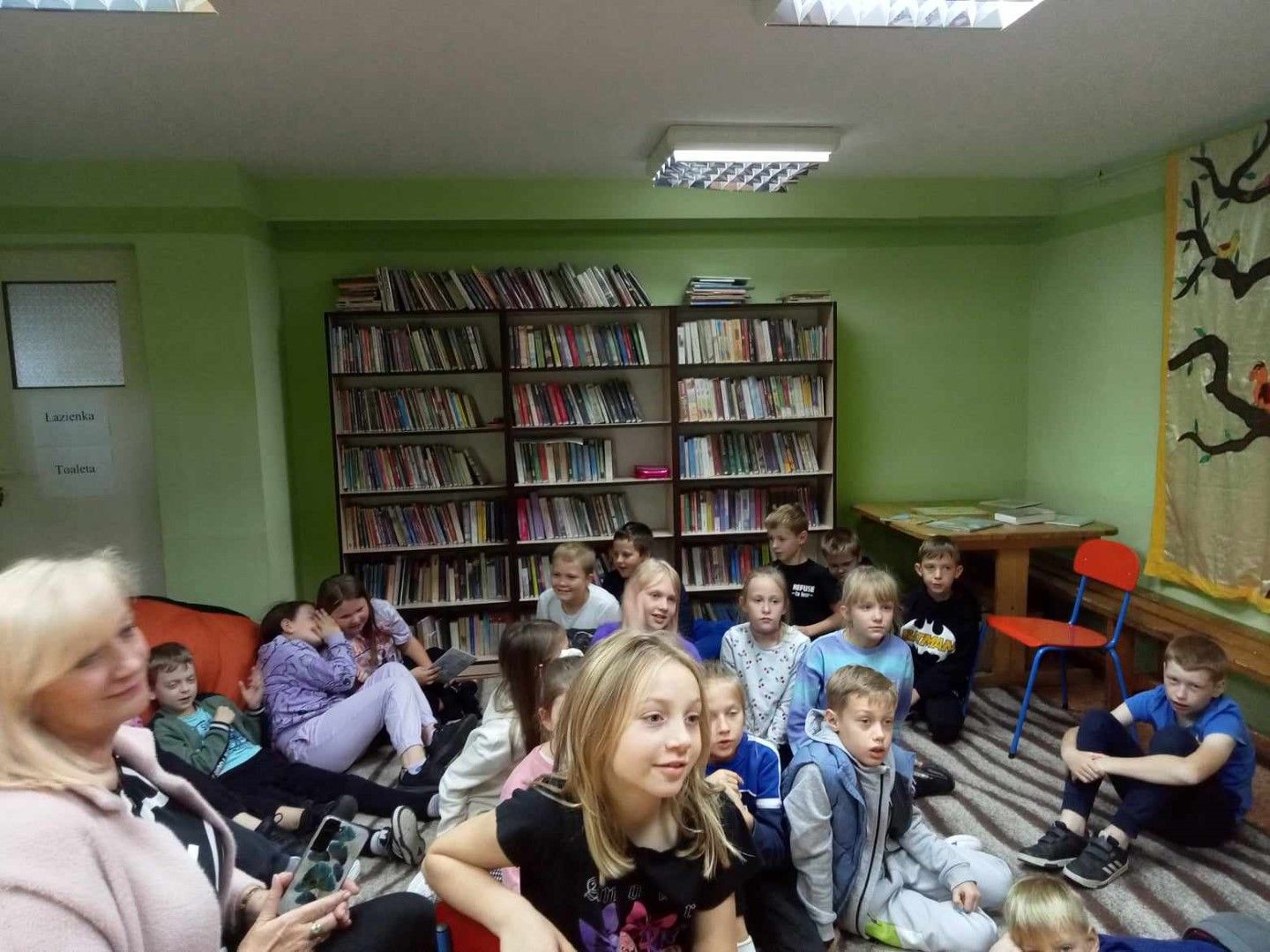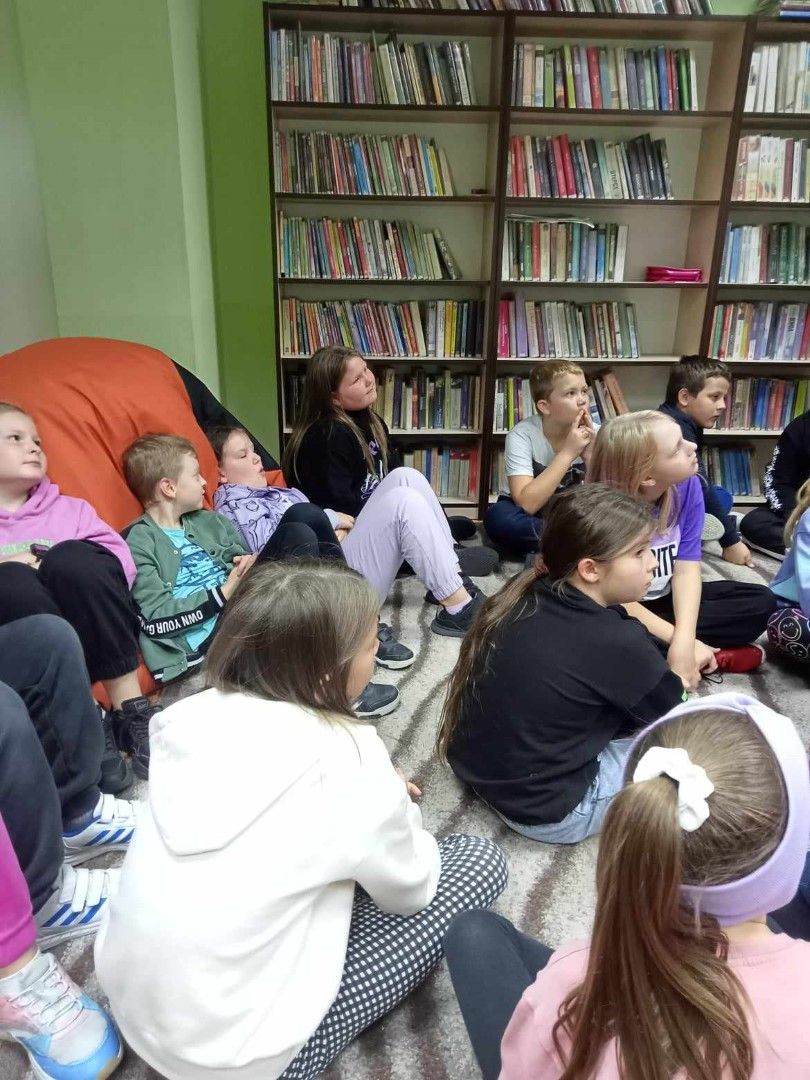 5 października 2023 r. w Filii nr 3 gościliśmy uczniów z klasy III c i III e ze Szkoły Podstawowej nr 4 w Łęcznej z wychowawczyniami p. Barbarą Kasprzak i p. Marią Hawrylak. Dzieci wzięły udział w warsztatach literacko – plastycznych: „Zaczarowana jesień” poświęconych tematyce jesieni. Uczniowie wysłuchali ciekawej bajki z książki: „Bajki na każdą porę roku” A. Melisa o przygodach dzielnego Kesina Kessolo. Usłyszeli ciekawostki o zmianach zachodzących w przyrodzie jesienią. Mogli też poznać powieść Władysława Reymonta: „Chłopi” zawierającą piękne opisy polskiej przyrody jesienią, na podstawie której powstał film będący polskim kandydatem do Oscara.