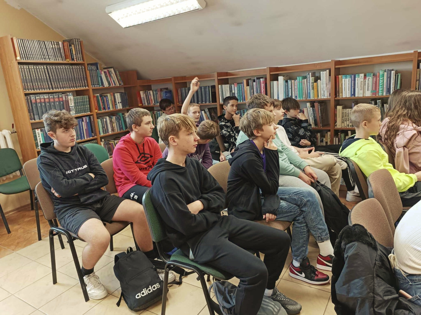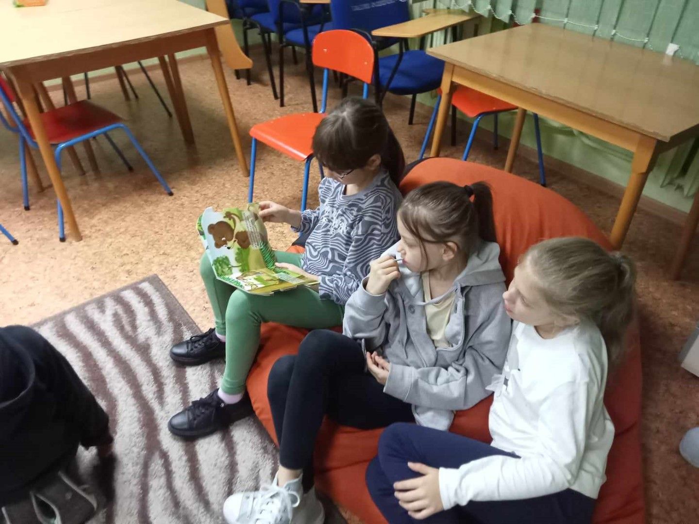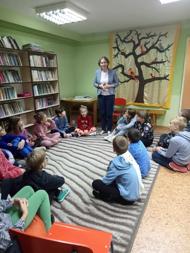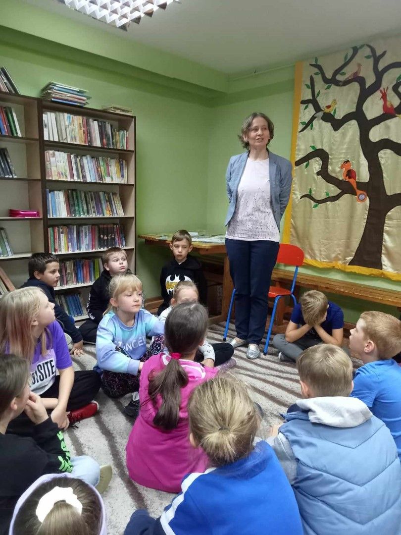 5 października 2023 r. w Filii nr 3 gościliśmy uczniów z klasy III c i III e ze Szkoły Podstawowej nr 4 w Łęcznej z wychowawczyniami p. Barbarą Kasprzak i p. Marią Hawrylak. Dzieci wzięły udział w warsztatach literacko – plastycznych: „Zaczarowana jesień” poświęconych tematyce jesieni. Uczniowie wysłuchali ciekawej bajki z książki: „Bajki na każdą porę roku” A. Melisa o przygodach dzielnego Kesina Kessolo. Usłyszeli ciekawostki o zmianach zachodzących w przyrodzie jesienią. Mogli też poznać powieść Władysława Reymonta: „Chłopi” zawierającą piękne opisy polskiej przyrody jesienią, na podstawie której powstał film będący polskim kandydatem do Oscara.