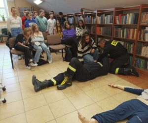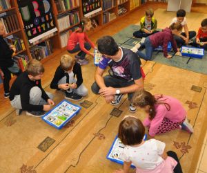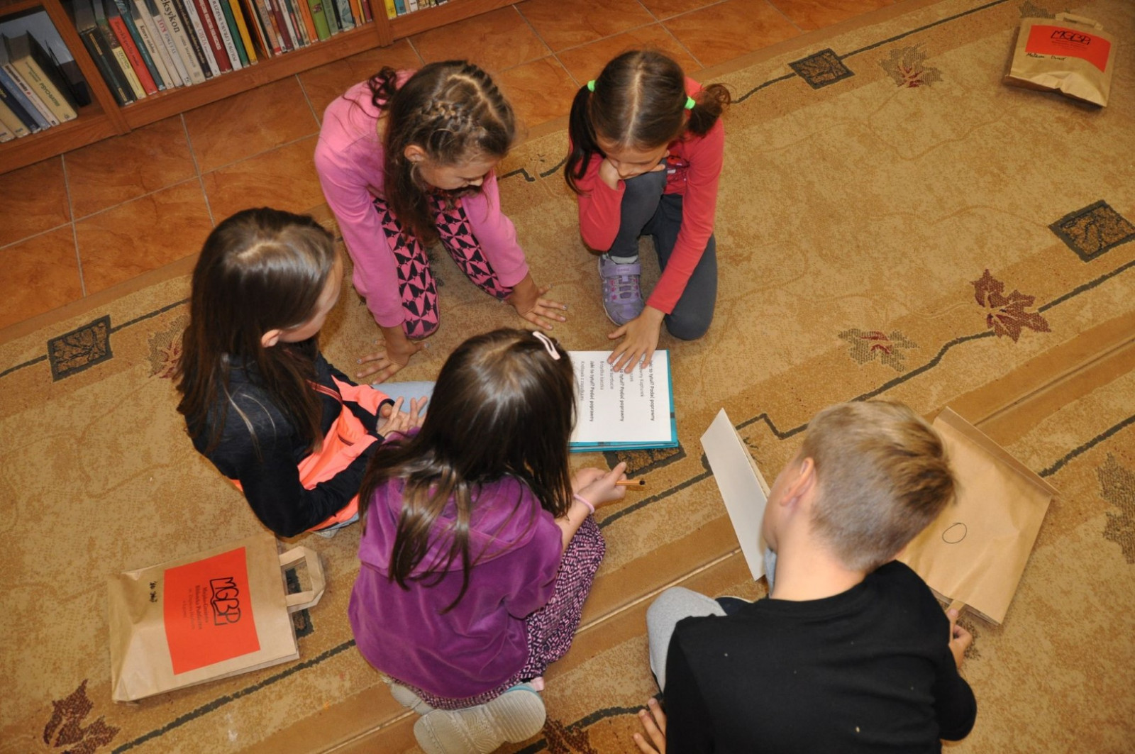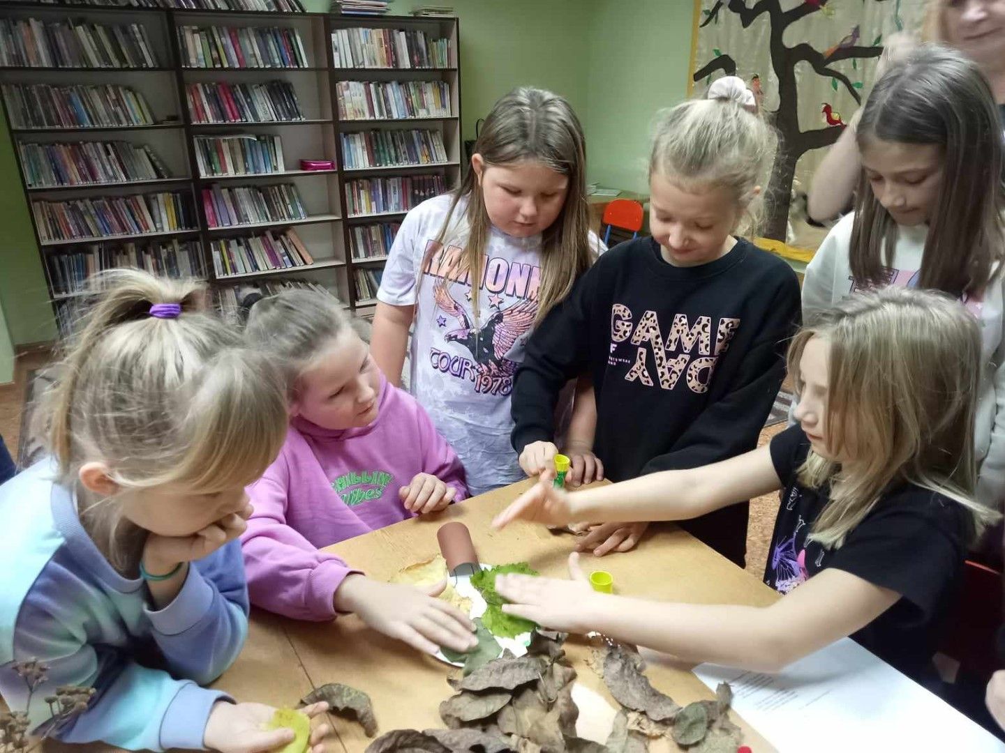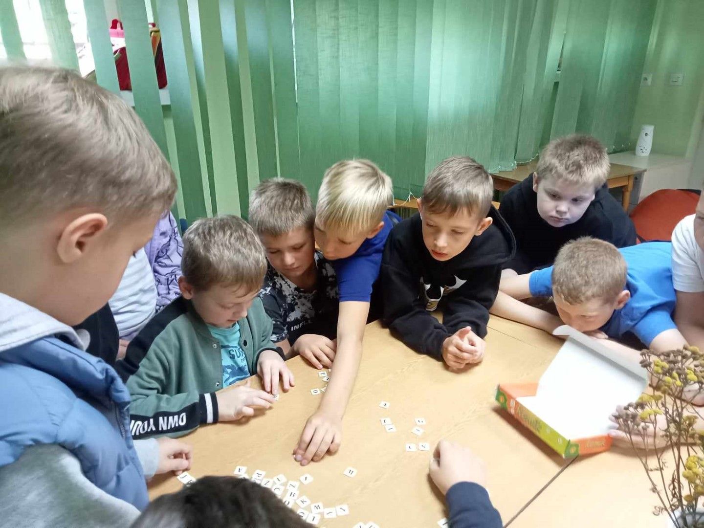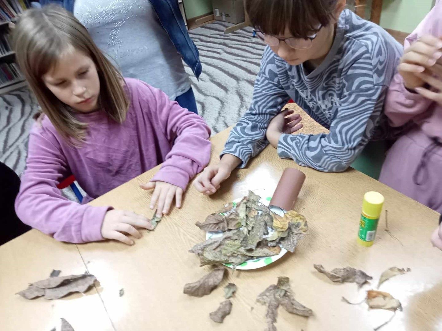 Następnie chętni uczestnicy rozwiązywali krzyżówki i zagadki poświęcone jesieni. „Grupy: Jeżyki i Liski – III c oraz Jeżyki i Wiewiórki - III e” dzielnie rywalizowały ze sobą w zgadywaniu jesiennych zagadek. W dalszej części uczestnicy poznali utwór muzyczny Antonio Vivaldiego pt.: „Jesień”. Chętni uczniowie wykazali się talentem twórczym i układali „jesienne hasła”- w grze „Remik Słowny” lub w grupie wykonywali „jesienne drzewko” z liści i papierowych talerzyków. Na zakończenie chętni mogli wypożyczyć książki.