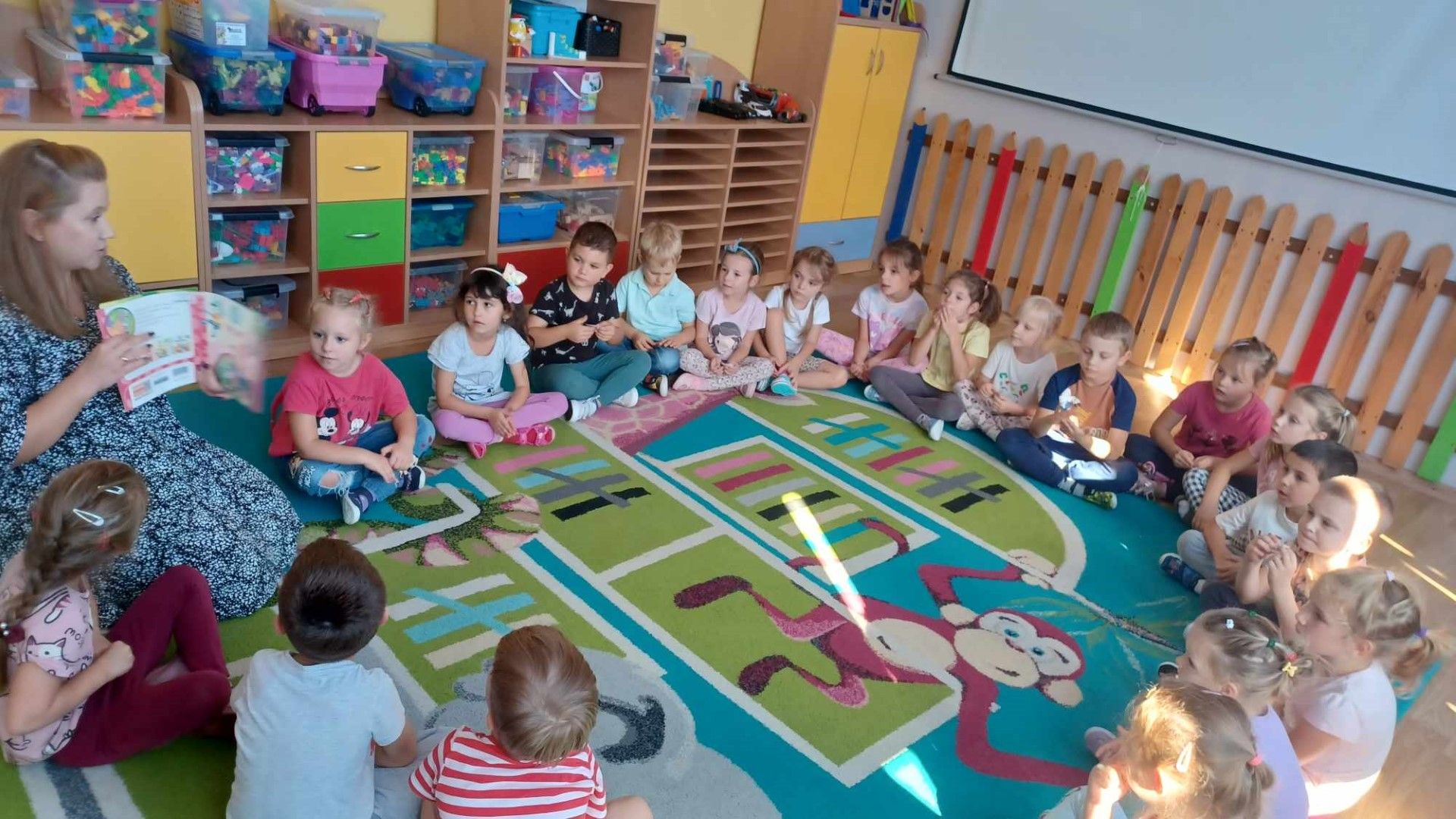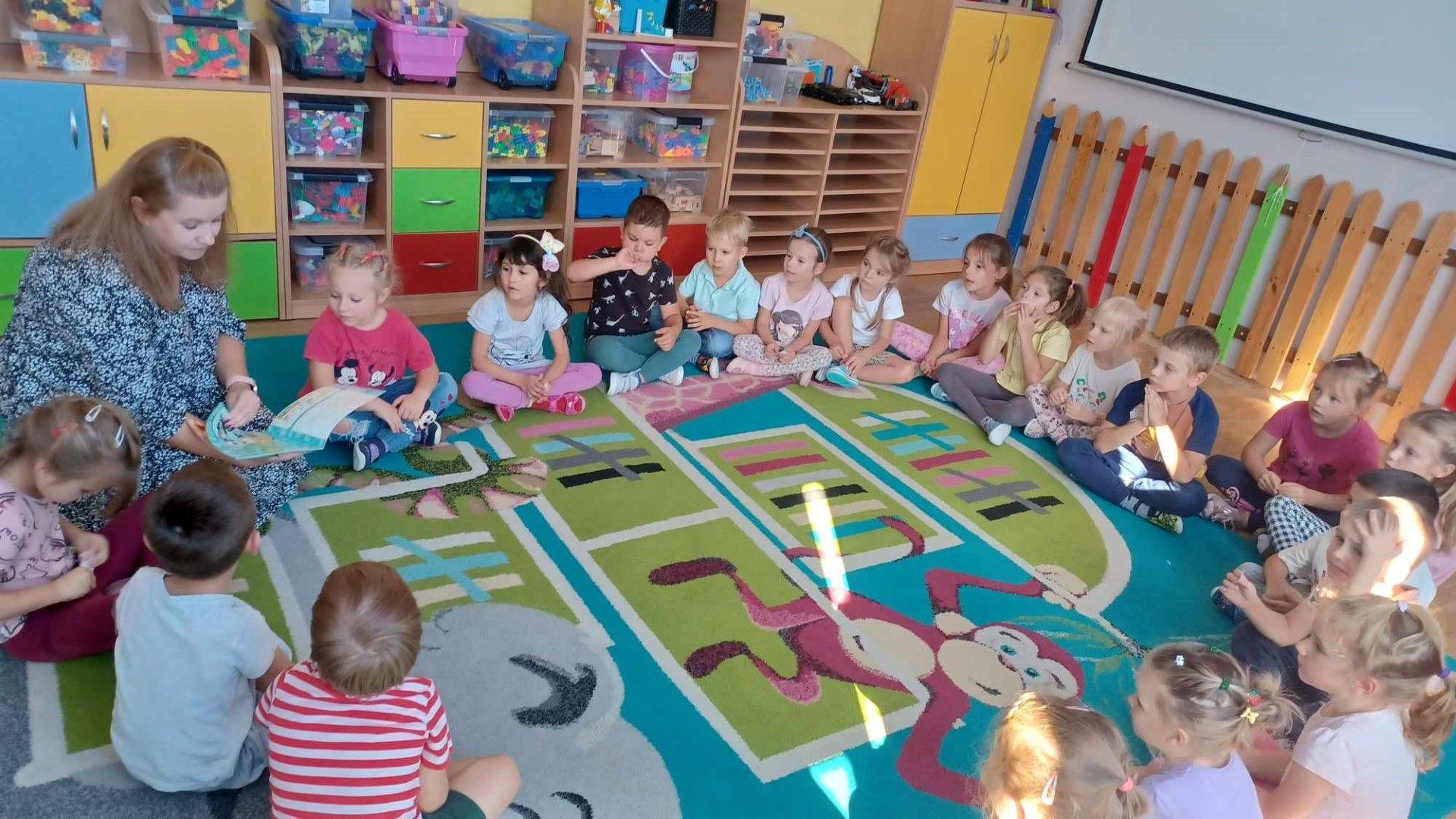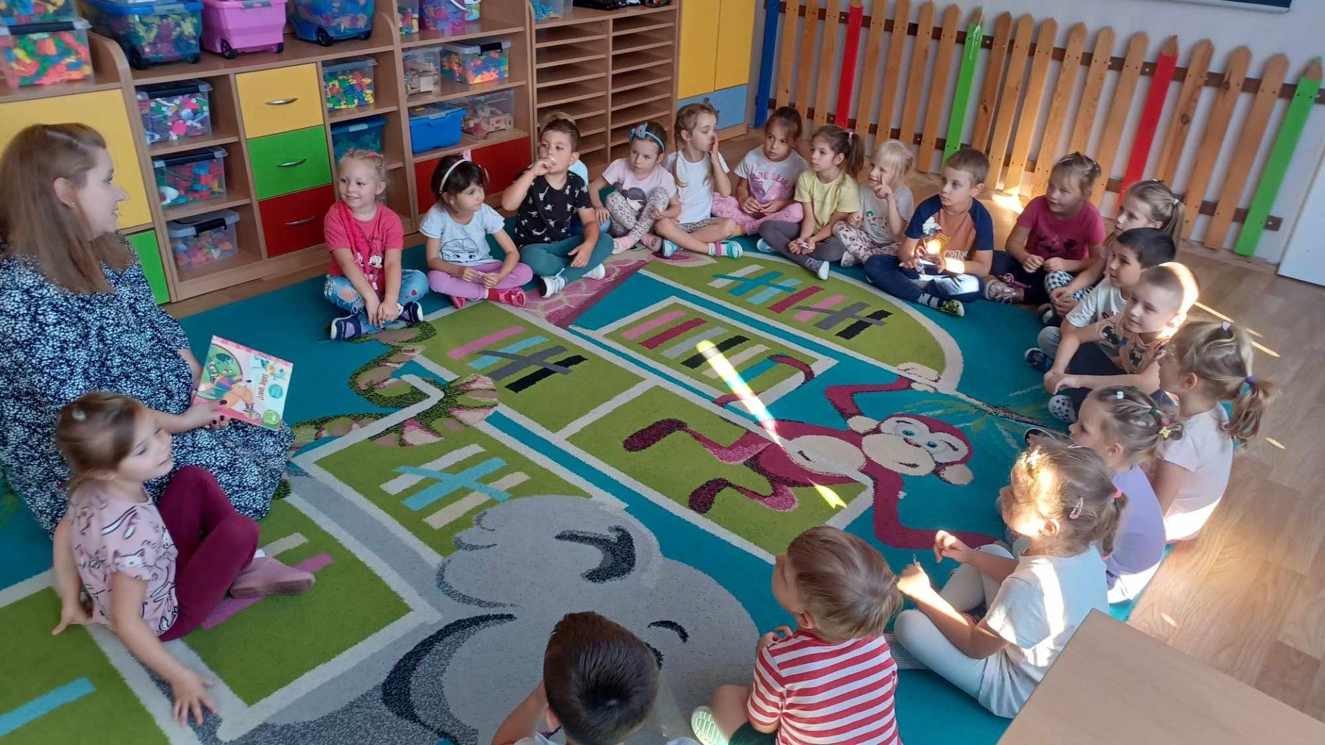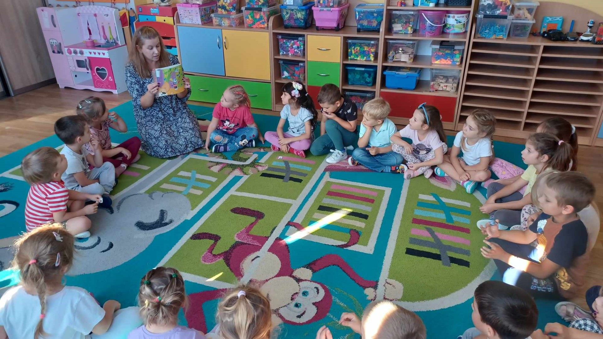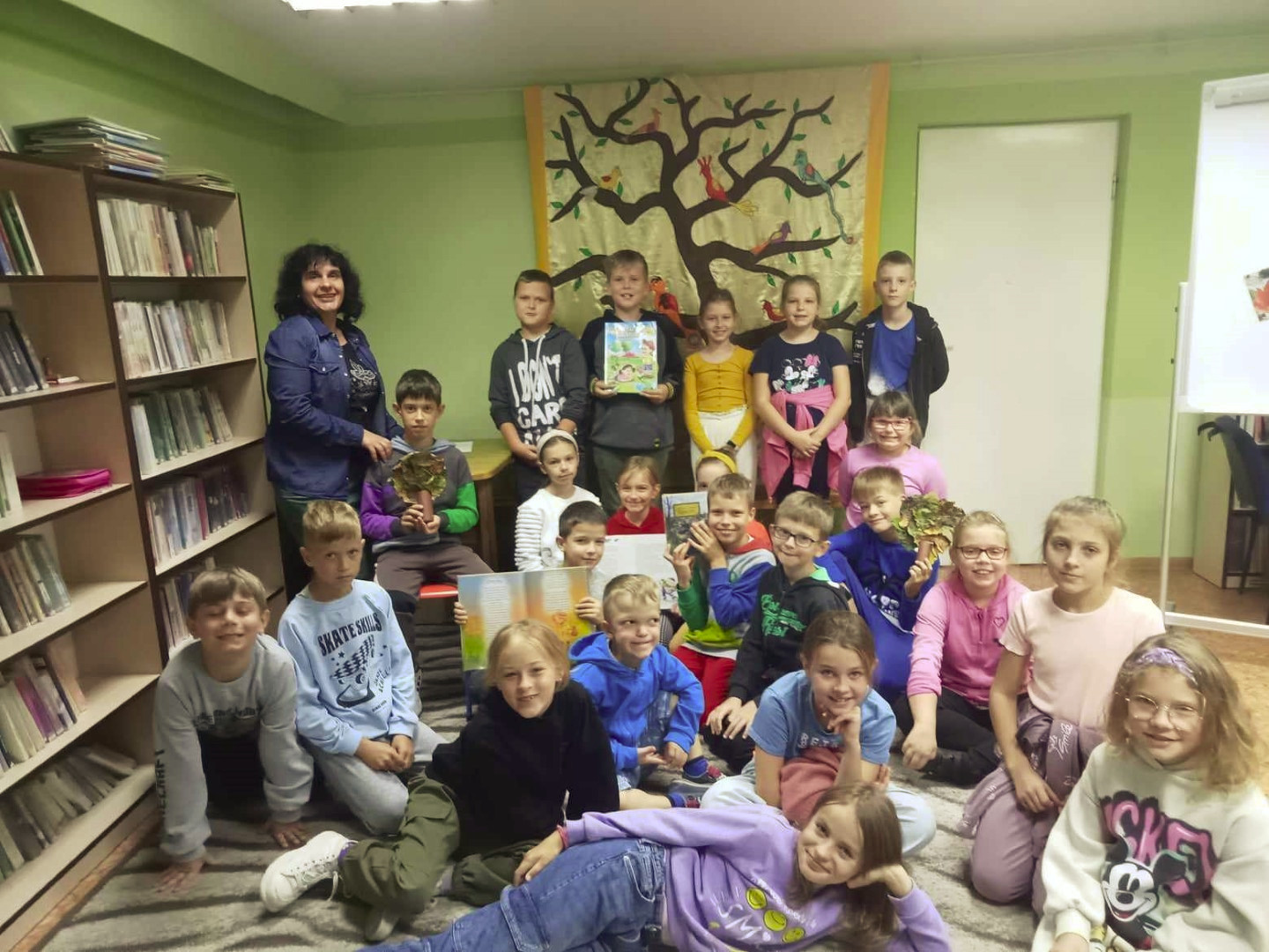 Słoneczna i pogodna jesień, kiedy liście drzew stają się żółte i czerwone to złota polska jesień. O tej porze roku bibliotekarka rozmawiała z przedszkolakami.