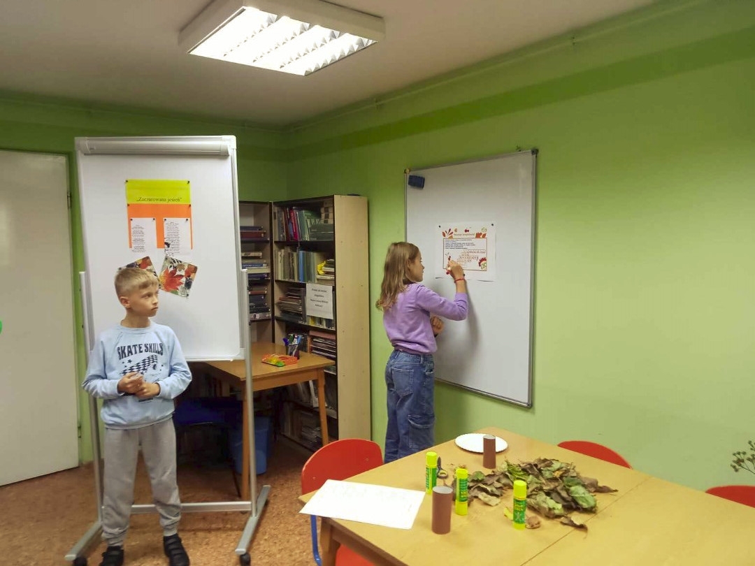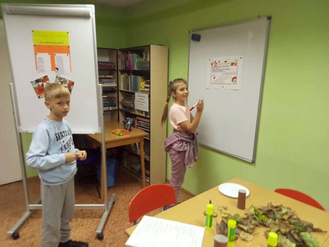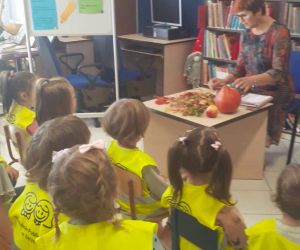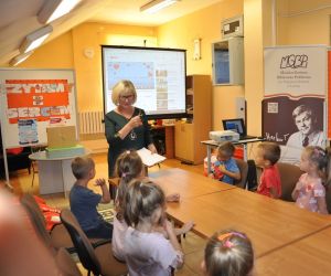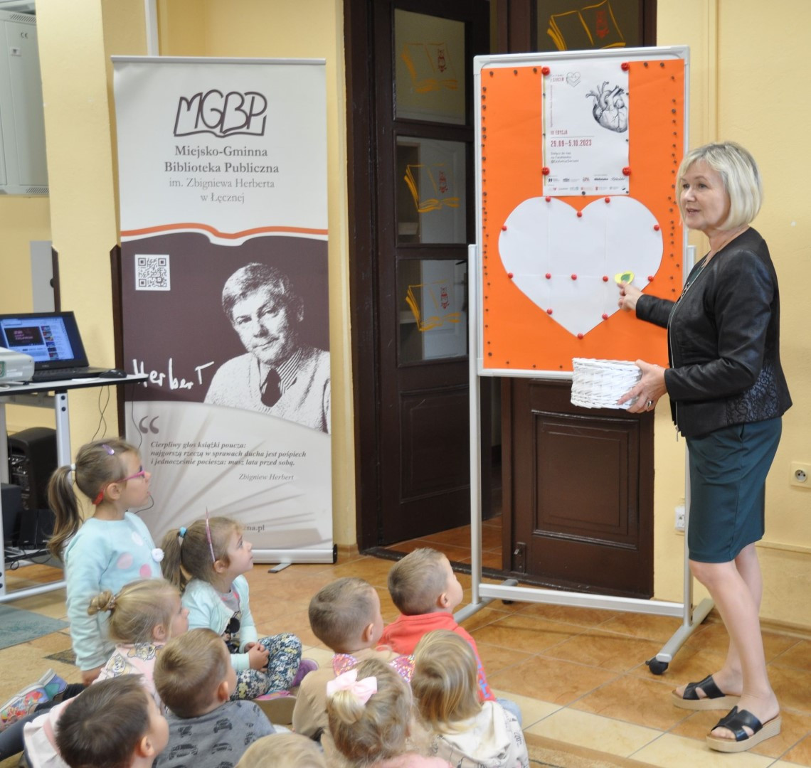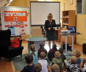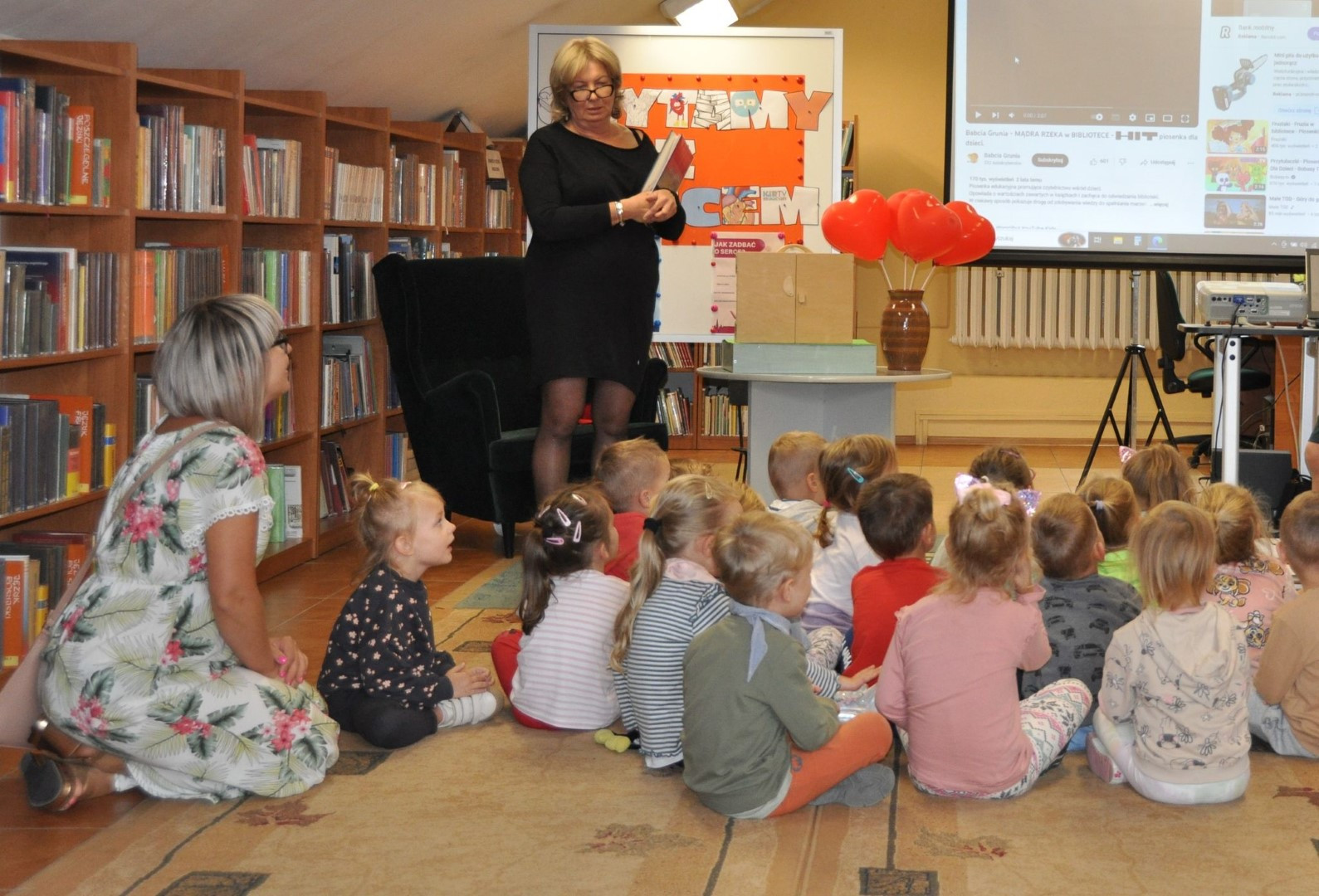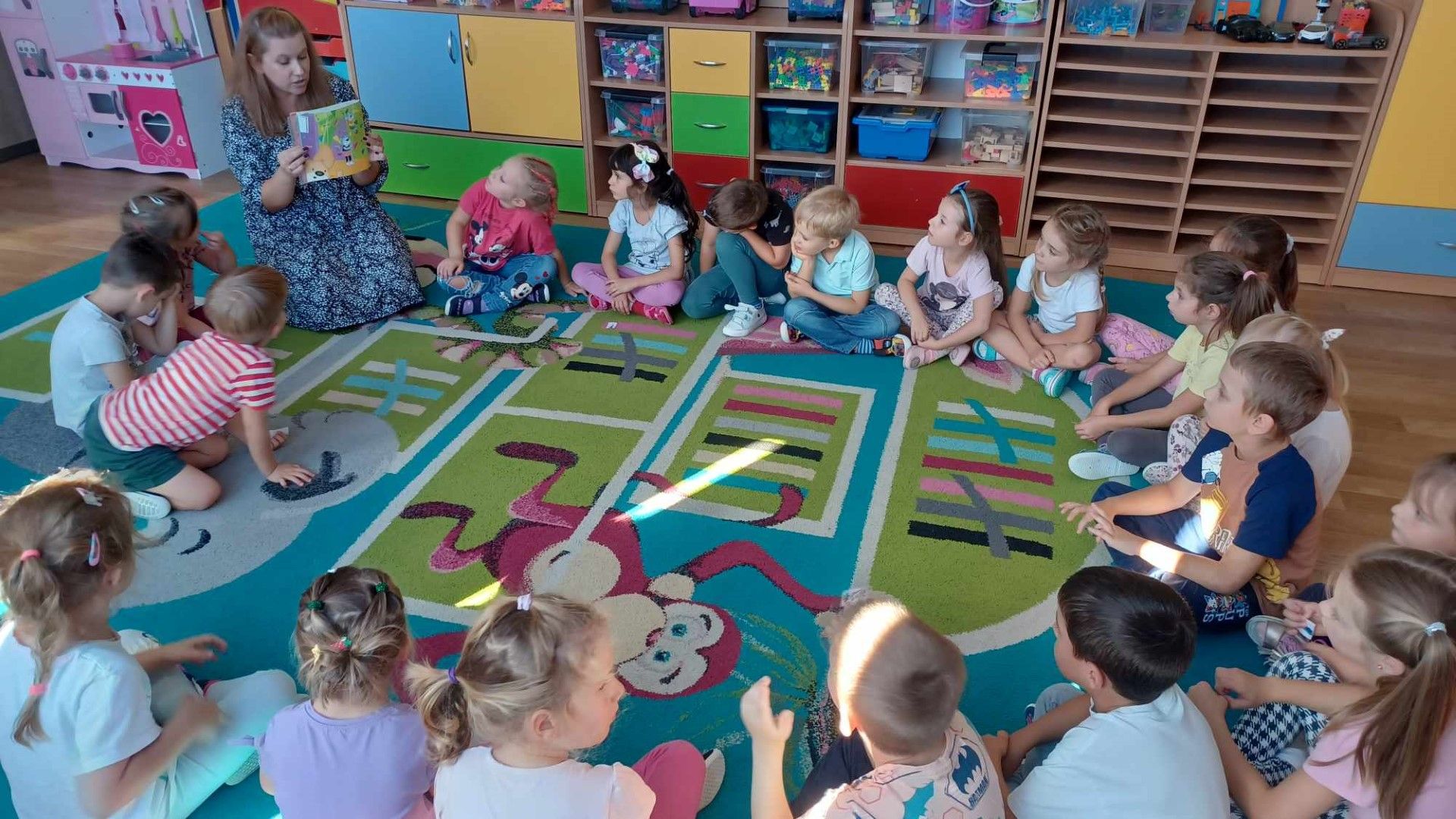 Słoneczna i pogodna jesień, kiedy liście drzew stają się żółte i czerwone to złota polska jesień. O tej porze roku bibliotekarka rozmawiała z przedszkolakami.