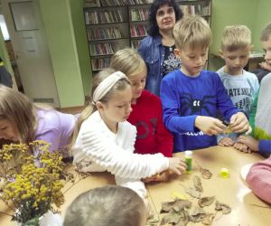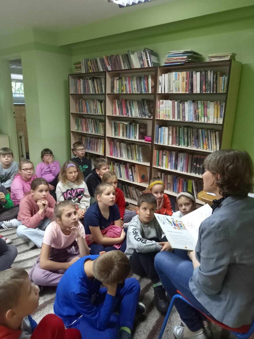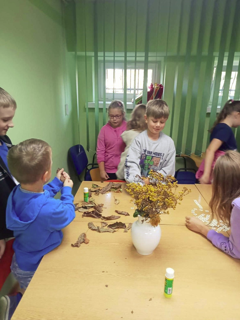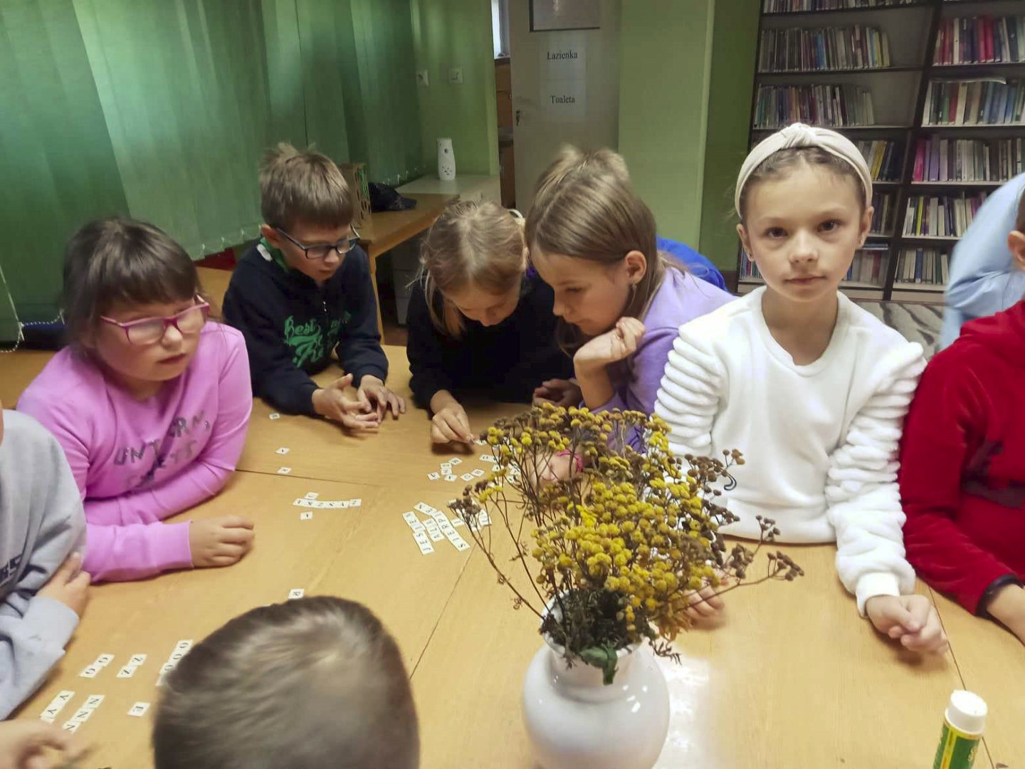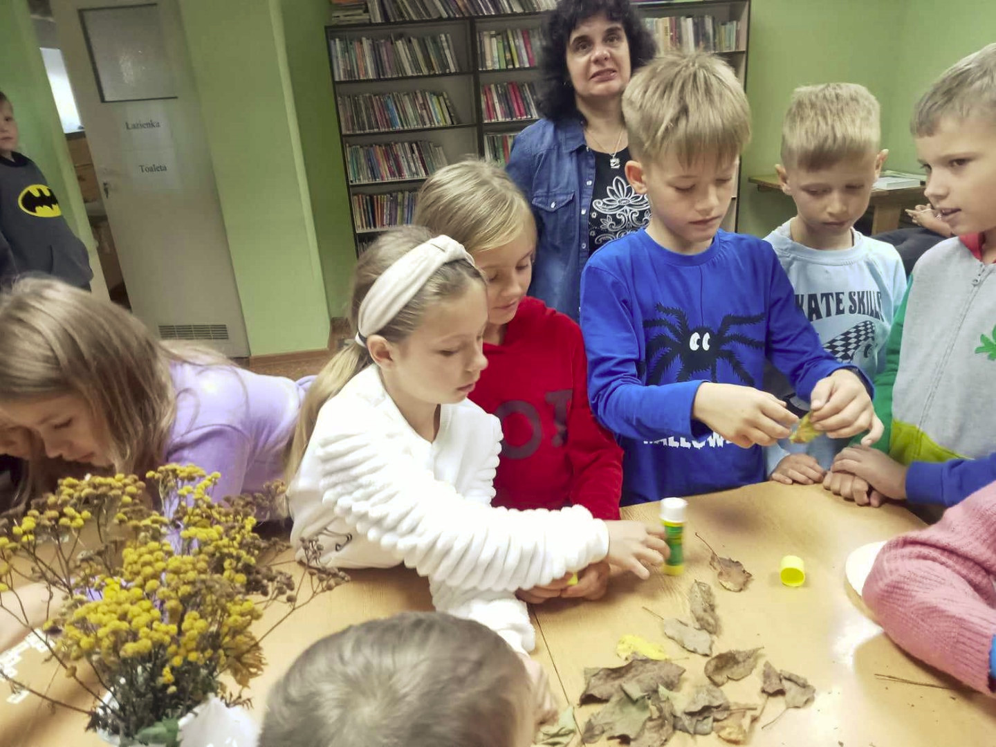 2 października 2023 r. w Filii nr 3 gościliśmy uczniów z klasy III b ze Szkoły Podstawowej nr 4 w Łęcznej z wychowawczynią panią Wiolettą Tchórzewską. Dzieci wzięły udział w warsztatach literacko - plastycznych poświęconych tematyce jesieni. Uczniowie wysłuchali niezwykłej bajki edukacyjnej o losach Kesina Kessolo pt.: „Teraz jest, teraz nie ma!” z książki „Bajki na każdą porę roku” A. Melisa, w której główny bohater właśnie jesienią przeżył niezwykłą przygodę. Prowadząca zapoznała uczestników z wartościową literaturą poświęconą jesieni. Uczestnicy usłyszeli ciekawostki o książce pt.: „Chłopi" Władysława Reymonta zawierającej piękne opisy jesiennej przyrody, na podstawie której powstał film, który jest polskim kandydatem do Oscara. Dużo radości sprawiło dzieciom rozwiązywanie krzyżówki oraz zagadek poświęconych jesieni. „Grupy Jeżyki i Wiewiórki” dzielnie rywalizowały ze sobą w zgadywaniu jesiennych zagadek. Słuchając utworu Antonio Vivaldiego pt.: „Jesień” dzieci budowały z liter słówka o tematyce jesiennej - w grze „Remik Słowny”. W dalszej części uczniowie podzieleni na 2 grupy wykonali „jesienne drzewka” z liści i papierowych talerzyków. Na zakończenie chętni mogli wypożyczyć książki. Dziękujemy bardzo za udział i zapraszamy do korzystania z bogatego księgozbioru biblioteki.