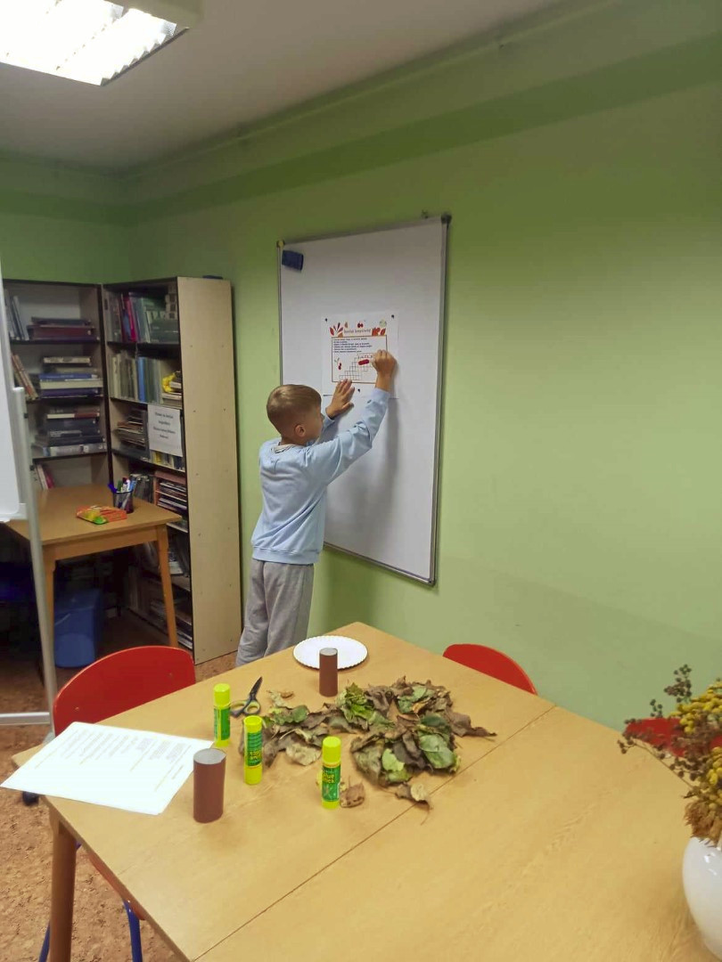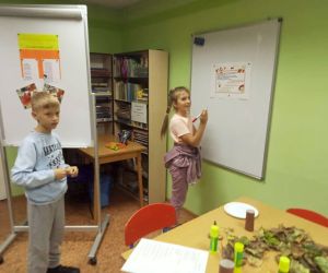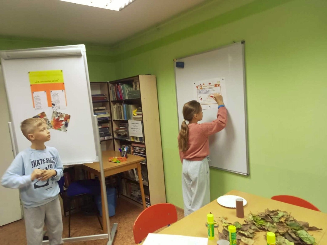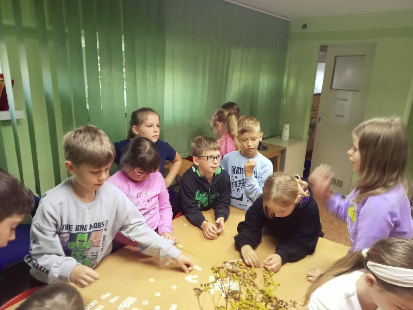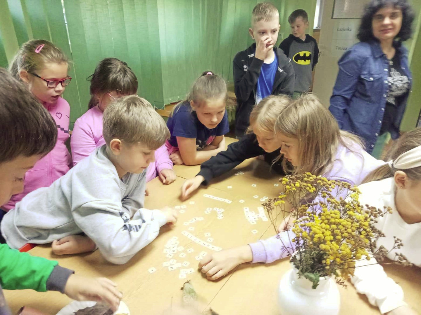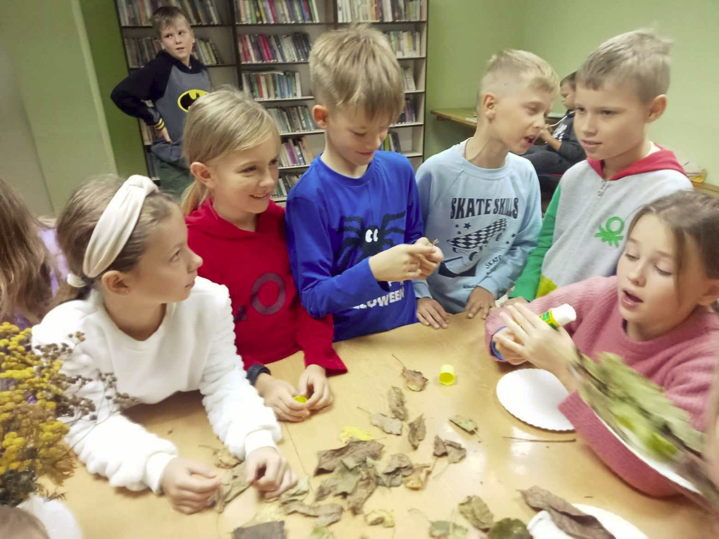 2 października 2023 r. w Filii nr 3 gościliśmy uczniów z klasy III b ze Szkoły Podstawowej nr 4 w Łęcznej z wychowawczynią panią Wiolettą Tchórzewską. Dzieci wzięły udział w warsztatach literacko - plastycznych poświęconych tematyce jesieni. Uczniowie wysłuchali niezwykłej bajki edukacyjnej o losach Kesina Kessolo pt.: „Teraz jest, teraz nie ma!” z książki „Bajki na każdą porę roku” A. Melisa, w której główny bohater właśnie jesienią przeżył niezwykłą przygodę. Prowadząca zapoznała uczestników z wartościową literaturą poświęconą jesieni. Uczestnicy usłyszeli ciekawostki o książce pt.: „Chłopi" Władysława Reymonta zawierającej piękne opisy jesiennej przyrody, na podstawie której powstał film, który jest polskim kandydatem do Oscara. Dużo radości sprawiło dzieciom rozwiązywanie krzyżówki oraz zagadek poświęconych jesieni. „Grupy Jeżyki i Wiewiórki” dzielnie rywalizowały ze sobą w zgadywaniu jesiennych zagadek. Słuchając utworu Antonio Vivaldiego pt.: „Jesień” dzieci budowały z liter słówka o tematyce jesiennej - w grze „Remik Słowny”. W dalszej części uczniowie podzieleni na 2 grupy wykonali „jesienne drzewka” z liści i papierowych talerzyków. Na zakończenie chętni mogli wypożyczyć książki. Dziękujemy bardzo za udział i zapraszamy do korzystania z bogatego księgozbioru biblioteki.