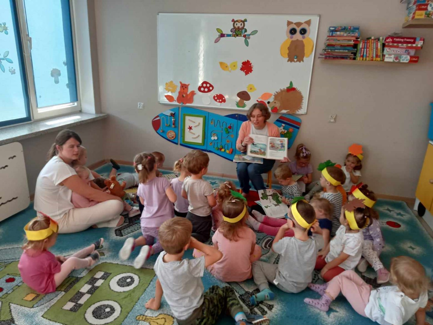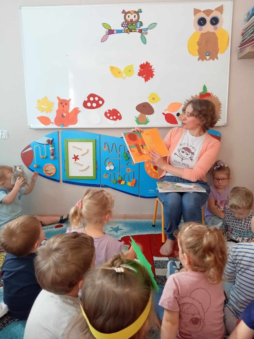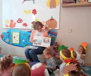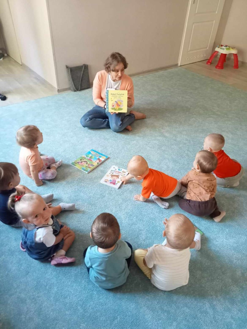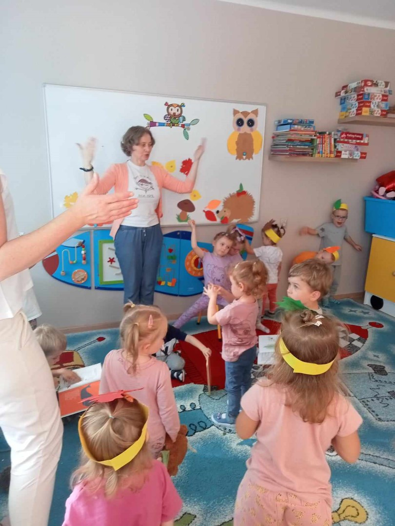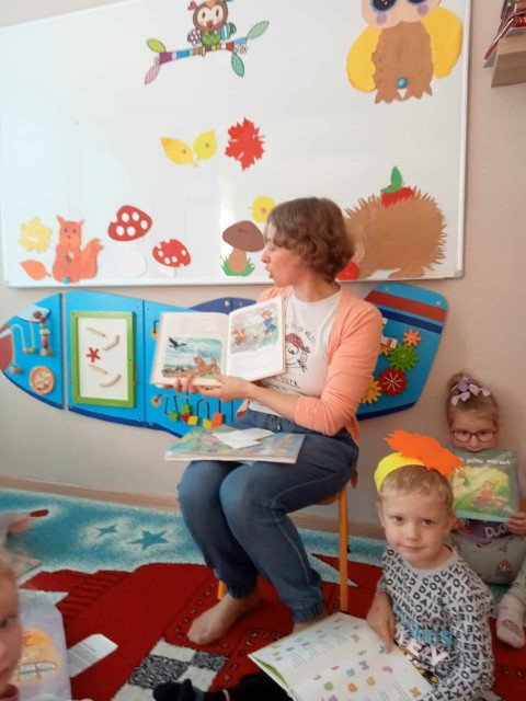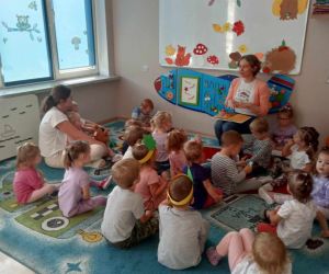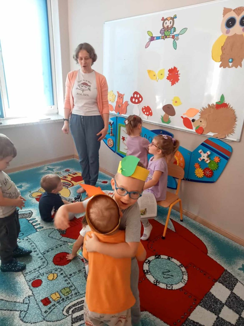 W piękny jesienny poranek 27 września 2023 r. pani Ewa z Filii nr 3 odwiedziła dzieci ze Żłobka „Mali Odkrywcy”. Na zaproszenie pani Agnieszki z grupy Sówki i wychowawców grup Kangurki i Biedronki pani Ewa czytała dzieciom wiersze i fragmenty książek o jesieni. Mali słuchacze poznali piękny wiersz Józefa Czechowicza pt.: „Jesień” i wysłuchali fragmentów książek „Kubuś Puchatek i cztery pory roku” W. Disneya oraz „Zwierzęta lasu” W. Drabika. Dzieci wzięły udział w zgadywance o jesiennych zwierzętach. Pani Ewa nauczyła też uczestników piosenki o jesieni. Następnie wszyscy wspólnie pokazywali jak „wieje wiatr i spadają jesienne liście”. Dzieci mogły obejrzeć i wypożyczyć książki o jesieni.