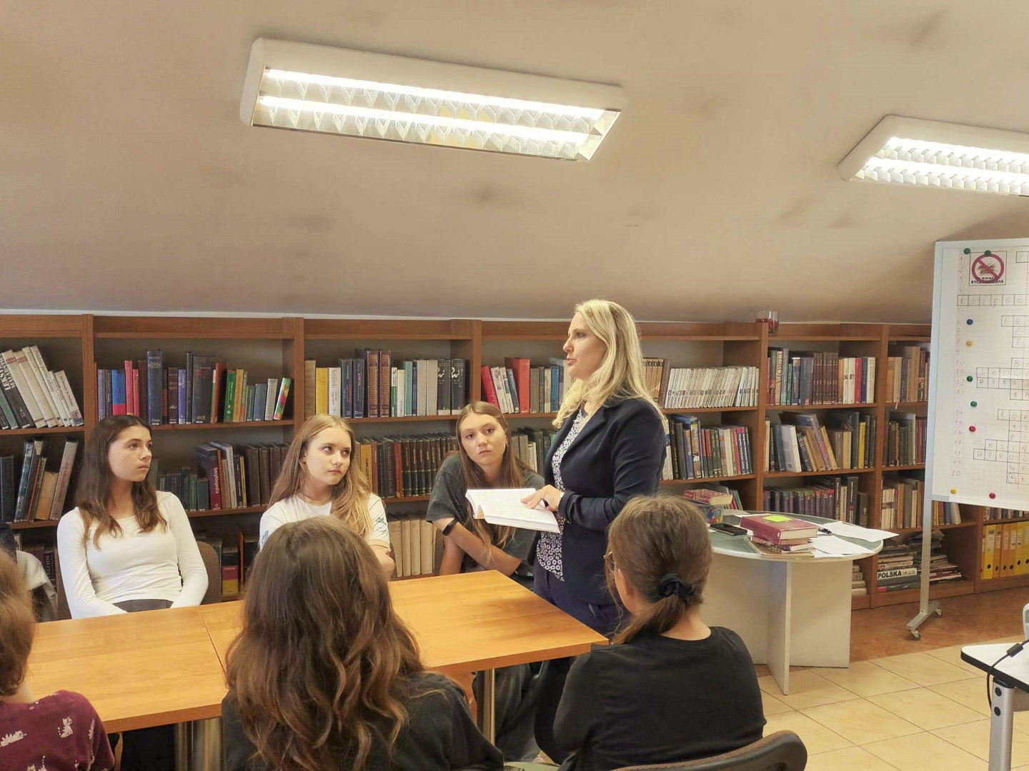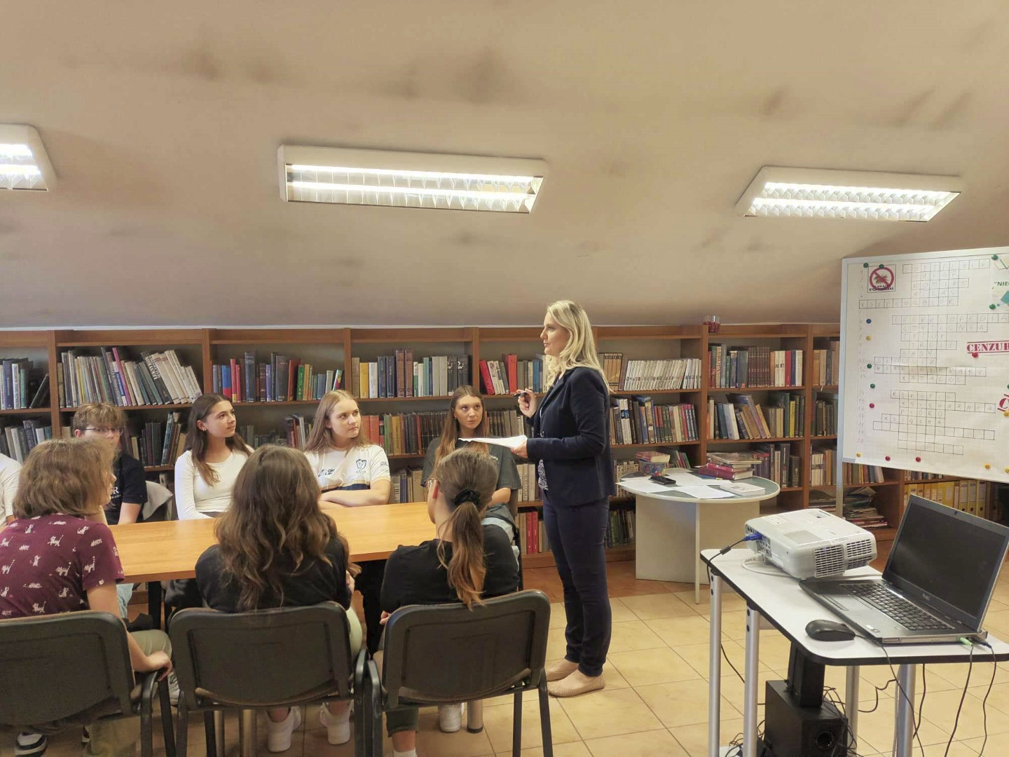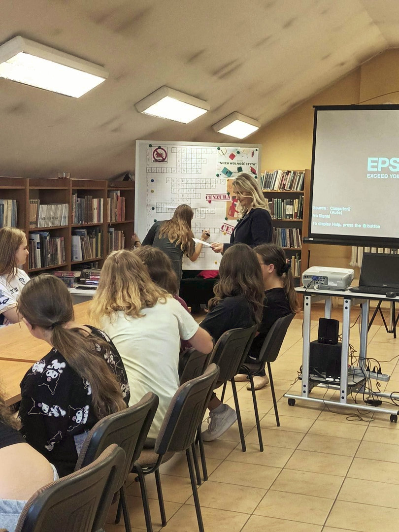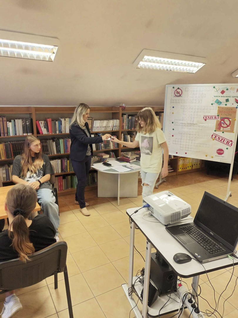 W trakcie spotkania młodzież rozwiązywała krzyżówkę, obejrzała „zakazane” pozycje dla młodzieży dostępne w naszej Bibliotece oraz zapoznała się z fragmentami „Dziennika Anne Frank”, książki wpisanej na listę UNESCO jako najbardziej wartościowy dokument świata.