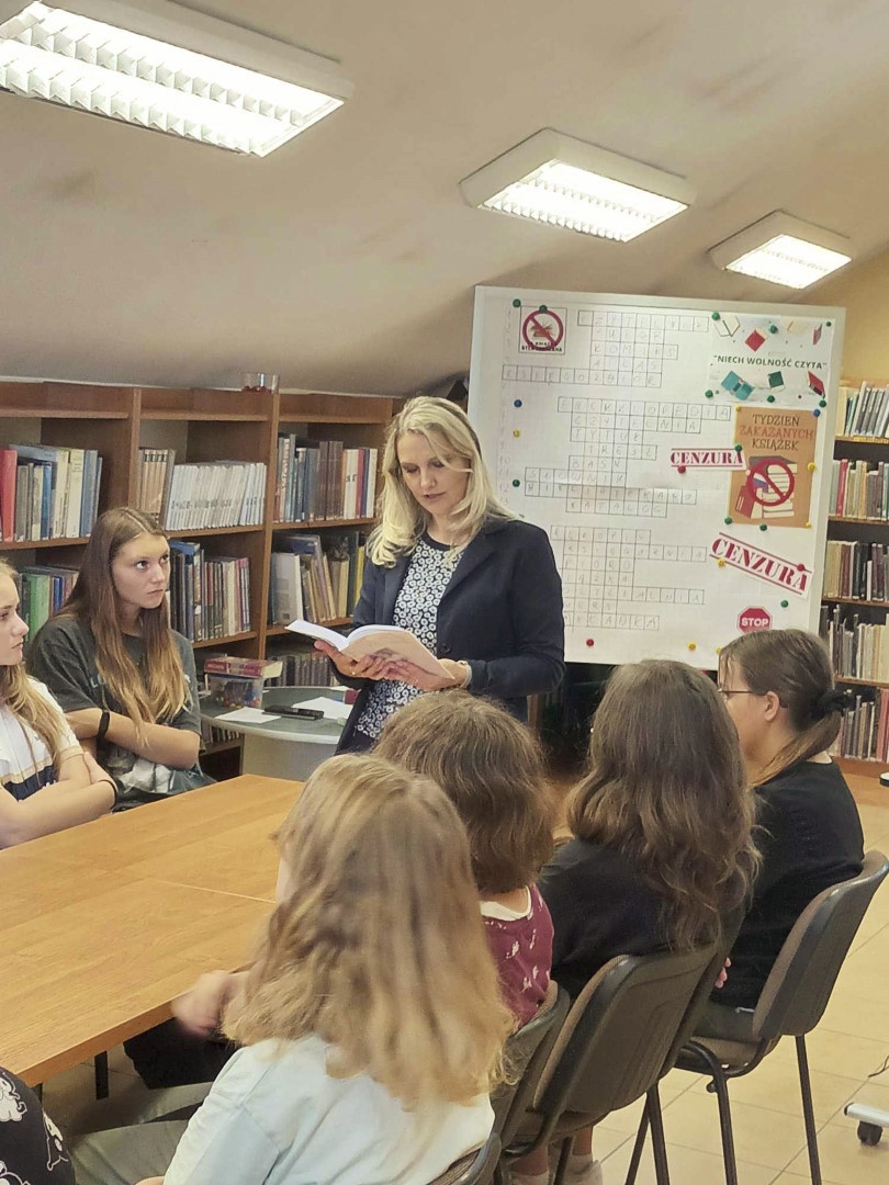28 września 2023 r. podczas trwania Tygodnia Zakazanych Książek, którego tegoroczne hasło przewodnie brzmi: "Niech wolność czyta ", w Bibliotece Głównej przy ul. Bożnicznej 21 gościliśmy uczniów klasy 7 B ze Szkoły Podstawowej Nr 2 w Łęcznej wraz z wychowawczynią.
