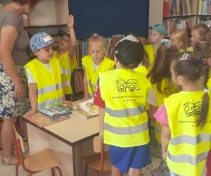 Podczas wizyty w bibliotece dzieci wypożyczyły sobie książki do domu.