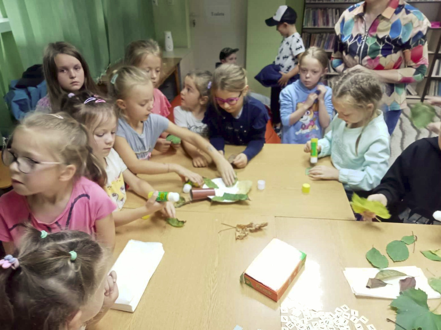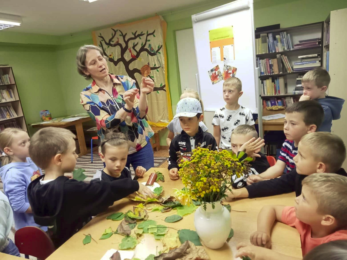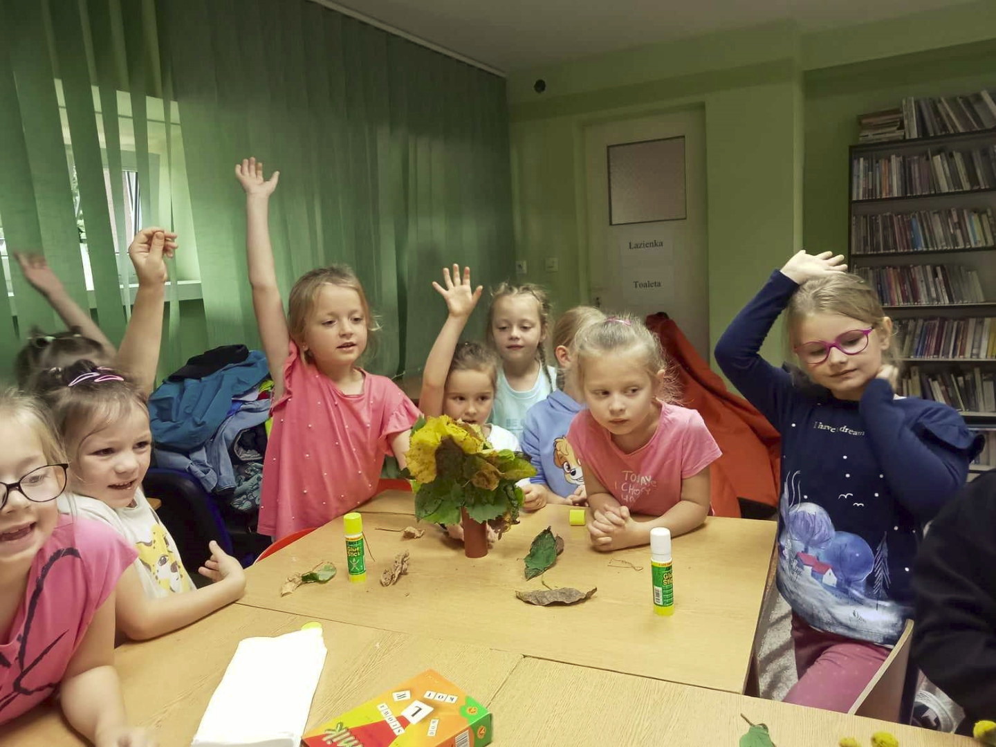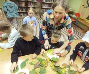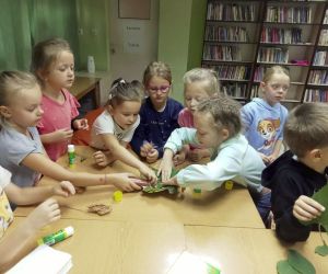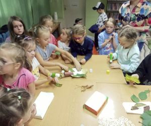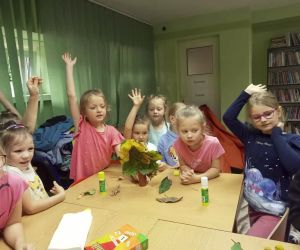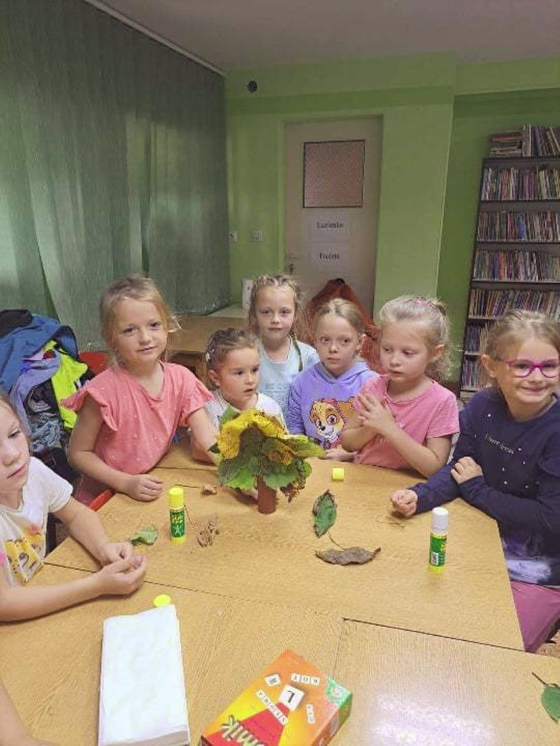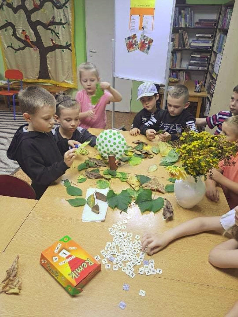 19 września 2023 r. w Filii nr 3 gościliśmy uczniów z klasy 0 „E” ze Szkoły Podstawowej nr 4 w Łęcznej. Dzieci wzięły udział w warsztatach literacko-plastycznych „Zaczarowana jesień”. Nasi goście wysłuchali wierszy o jesieni oraz poznali bajkę P. Księżyka pt: „Jeżyk Cyprian i pierwszy dzień jesieni”, z których usłyszeli o pięknie jesiennej przyrody i przygodach małego jeżyka. Dzieci rozpoznawały też jesienne kwiaty, owoce, warzywa i liście drzew. Pani Ewa pokazała dzieciom ciekawe książki o jesieni i nauczyła piosenki: „Jesień jak zaczarowana”, (słowa A. Bomba, muzyka M. Konarski). Następnie mali goście pod kierunkiem prowadzącej wykonali „Jesienne drzewka” z liści i materiałów ekologicznych .Wzięli też twórczy udział w grze „Remik słowny”, podczas której budowali słowa z literek. Wszyscy spisali się na medal i wykonali swoje zadania celująco. „Jesienne drzewka” dziewczynek i chłopców z klasy 0 „E” wyszły niemalże jak prawdziwe. Uczniowie wykazali się też biegłą znajomością literek i samodzielnie ułożyli słowa „Jesień” i inne jesienne słówka. Dziękujemy serdecznie za udział i zapraszamy do czytania książek o jesieni i nie tylko.