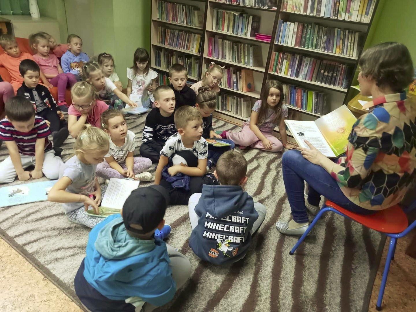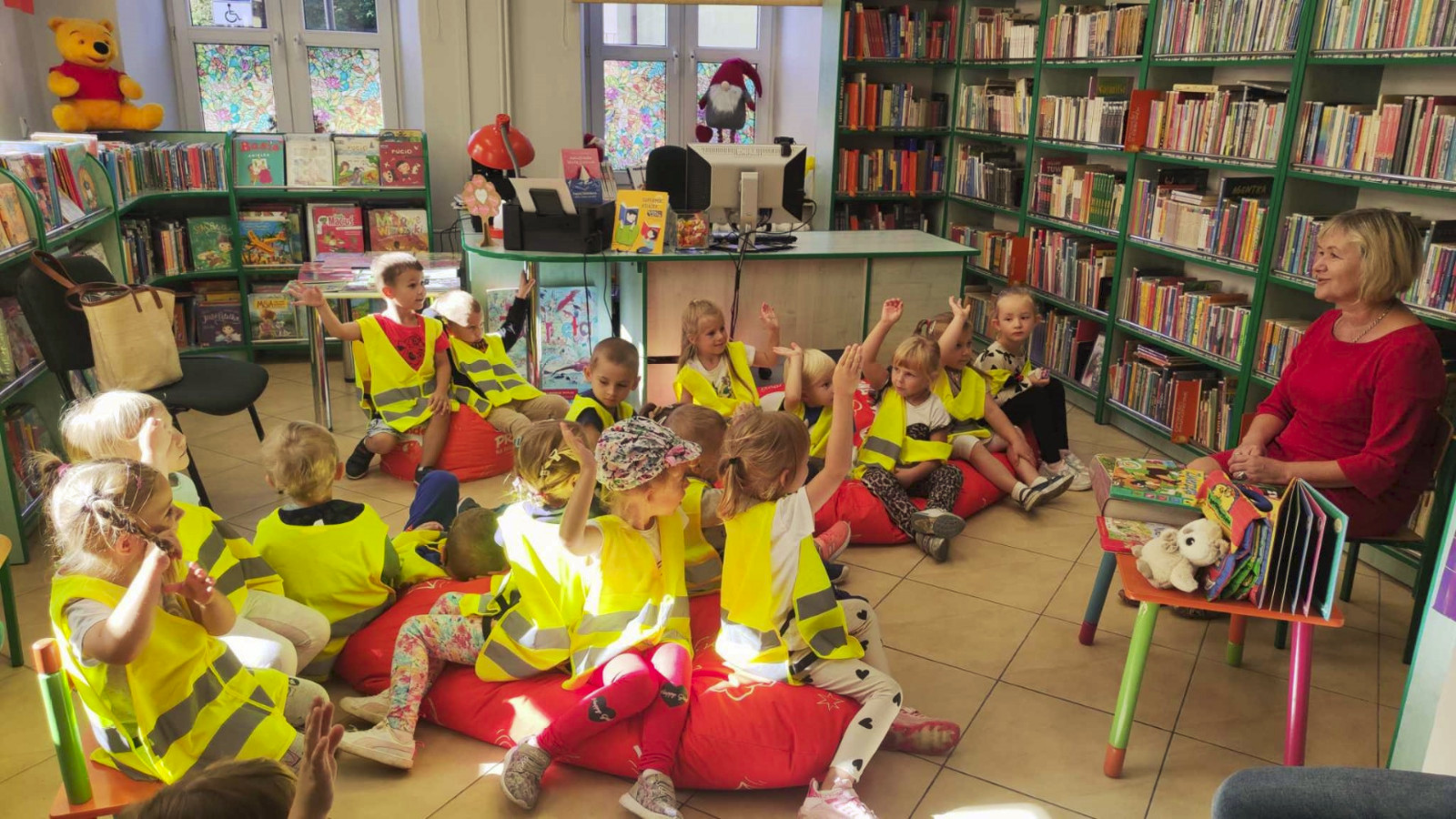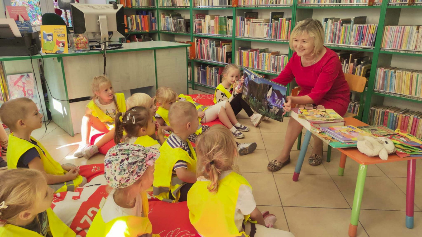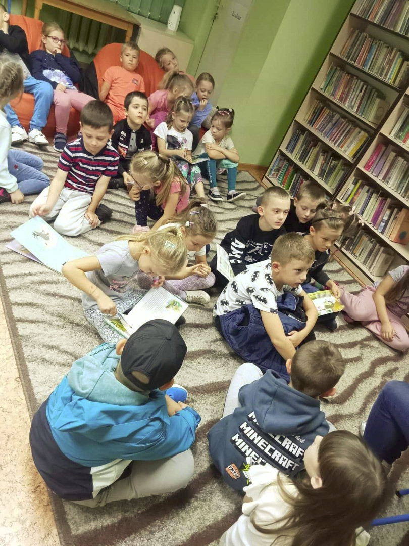 W dniu 21 września 2023 r. Oddział dla Dzieci przy ul. Bożnicznej 21 gościł dzieci z grupy „Muchomorki" z Przedszkole Publiczne Nr 1 w Łęcznej Przedszkolaki poznały magiczne miejsce, w którym „mieszkają książki". Dla zdecydowanej większości dzieci była to pierwsza wizyta wśród tak dużego księgozbioru. Bibliotekarka przeczytała dzieciom książkę z serii Przygody Fenka pt. „Biblioteka”. Wspólnie z bohaterem książki - Liskiem Fenkiem , dzieci poznały miejsce pełne różnorodnych książek: dużych i małych, cienkich i grubych, nowych i starych. Podczas spotkania przedszkolaki poznały różnice pomiędzy biblioteką a księgarnią i dowiedziały się w jaki sposób należy szanować książki. Ogromnym zainteresowaniem cieszyły się książki – zabawki przeznaczone dla najmłodszych. Przy okazji wizyty w bibliotece, dzieci wypożyczyły sobie książki. Tego typu spotkania rozbudzają wyobraźnię oraz umożliwiają bezpośredni kontakt dzieci z miejscem, w którym można wypożyczyć książkę do domu.