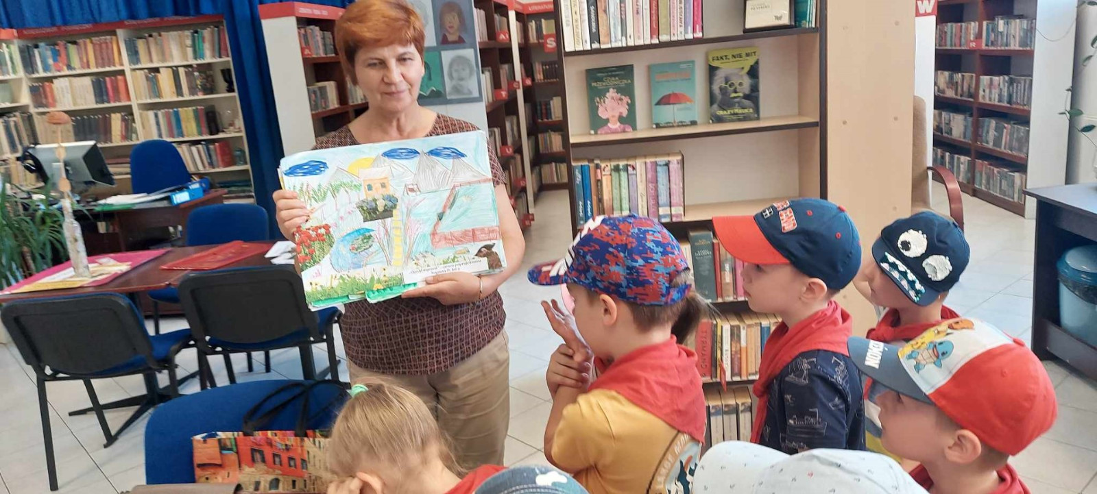 Wychowawczynie przyniosły prace plastyczne wykonane przez dzieci z projektu realizowanego w przedszkolu, które będą wkrótce na wystawie w naszej bibliotece.