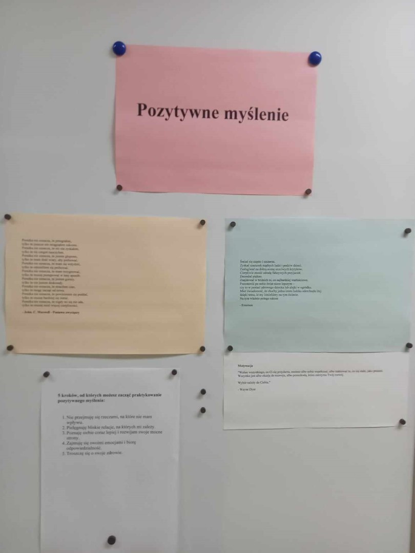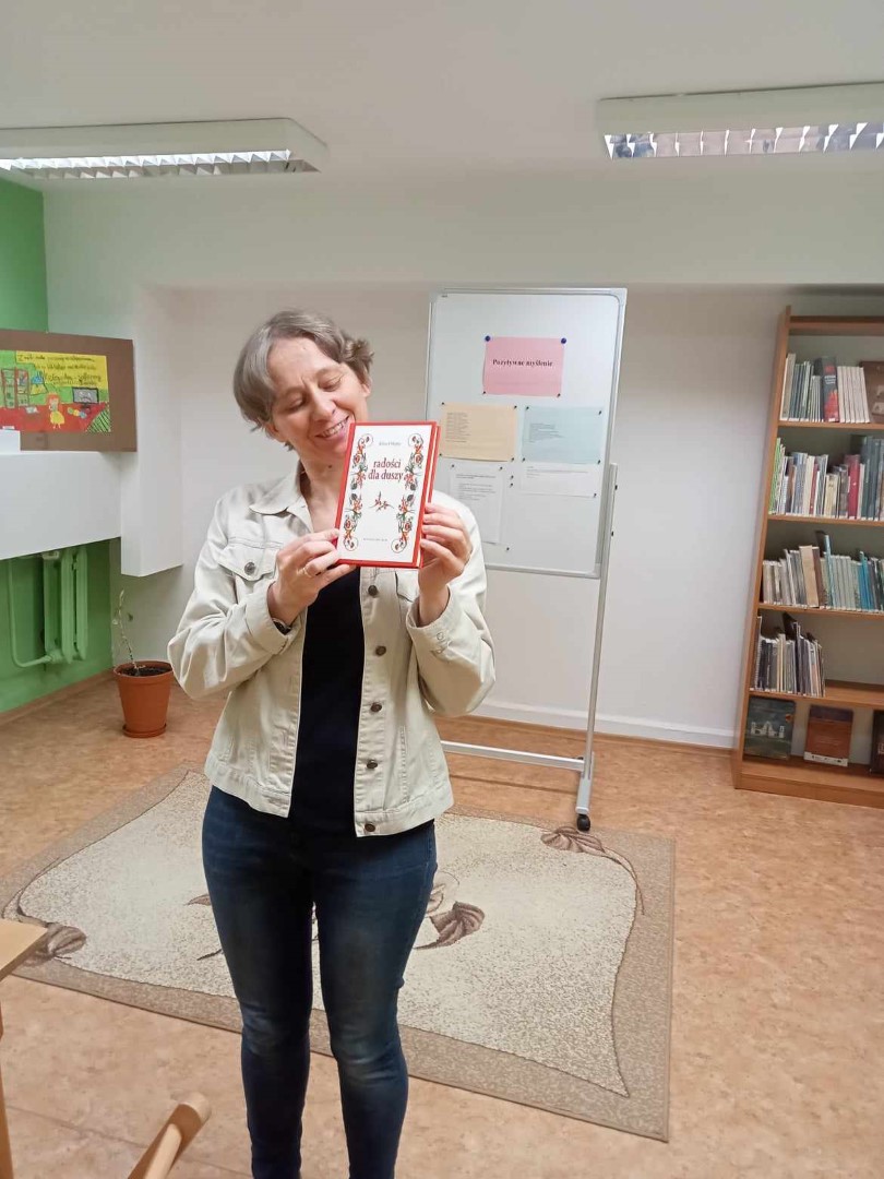 W trakcie zajęć, wspólnie porozmawialiśmy o tym co może skłaniać nas do optymizmu i czynić nas lepszymi, ćwiczyliśmy pozytywne myślenie i nastawienie do siebie nawzajem i otoczenia. Pod kierunkiem prowadzącej, pacjenci biorący udział w spotkaniu, chętnie wyrażali swoje sposoby i pomysły na pozytywne myślenie i nastawienie do siebie i otoczenia. Chętni mogli wypożyczyć książki nawiązujące do tematu spotkania.