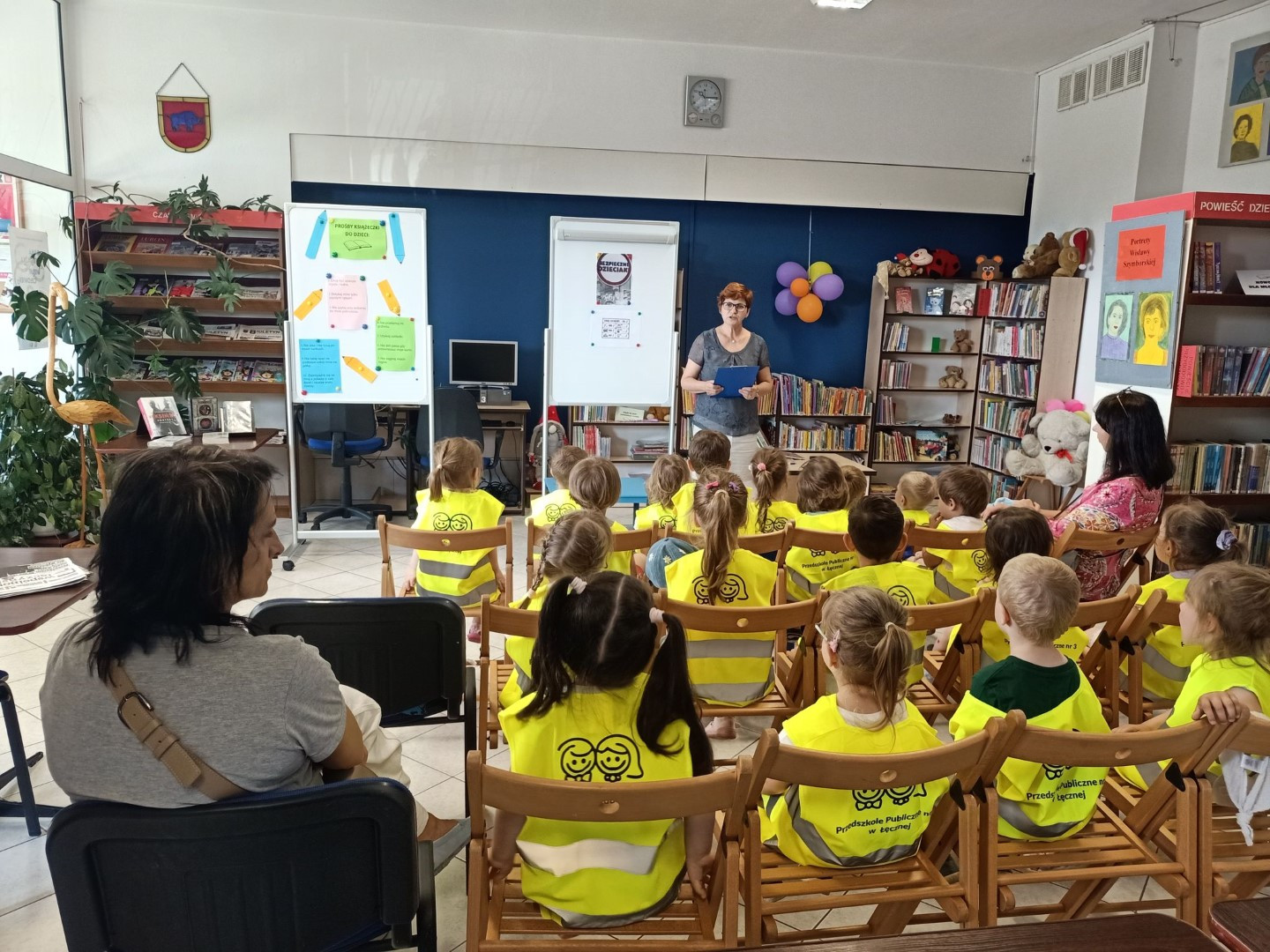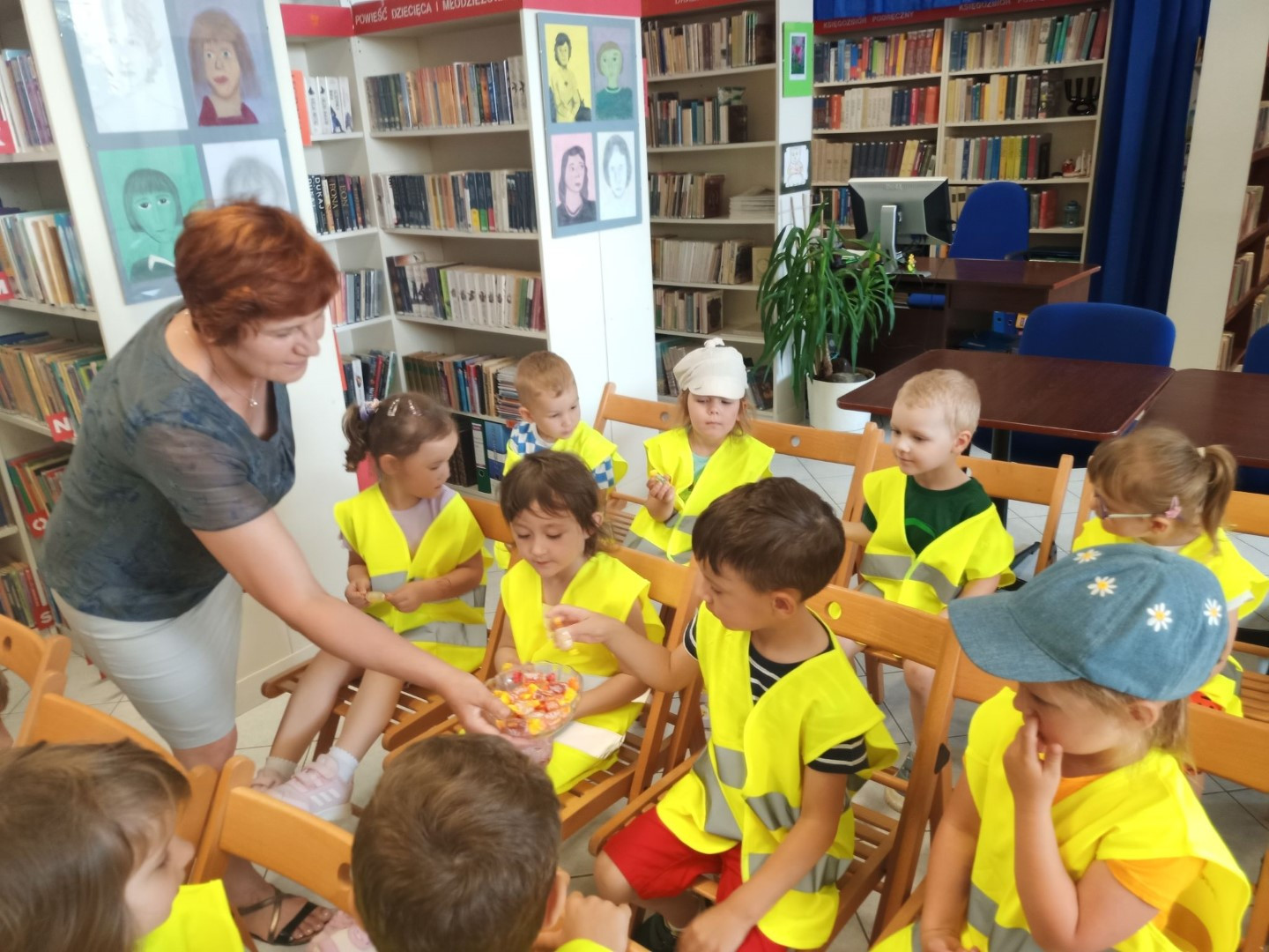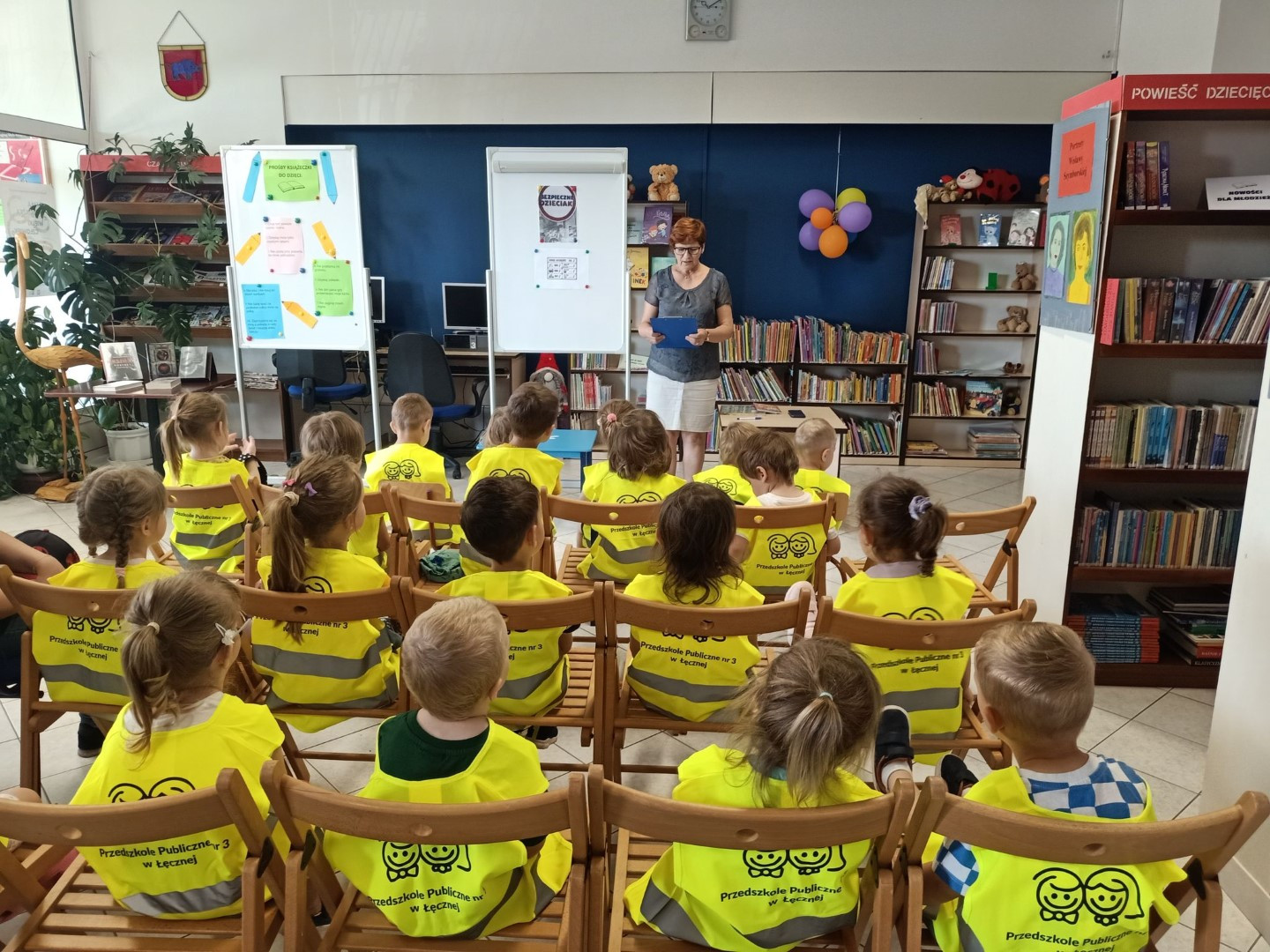 Dzieci z grupy „Maleństwa” z Przedszkola Publicznego nr 3 w Łęcznej wraz z panią Ewą Kalitą w dniu 20 czerwca odwiedziły bibliotekę, by wziąć udział w zajęciach poświęconych bezpiecznemu zachowaniu podczas wakacji. Bibliotekarka przeczytała wiersz pt.” Bezpieczne wakacje” A. Bober. Dzieci chętnie odpowiadały na zadawane pytania dotyczące bezpieczeństwa . Obejrzały kącik z książkami dla dzieci i dowiedziały się o pracy w bibliotece.
