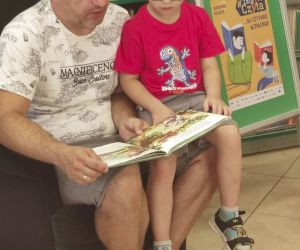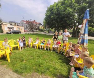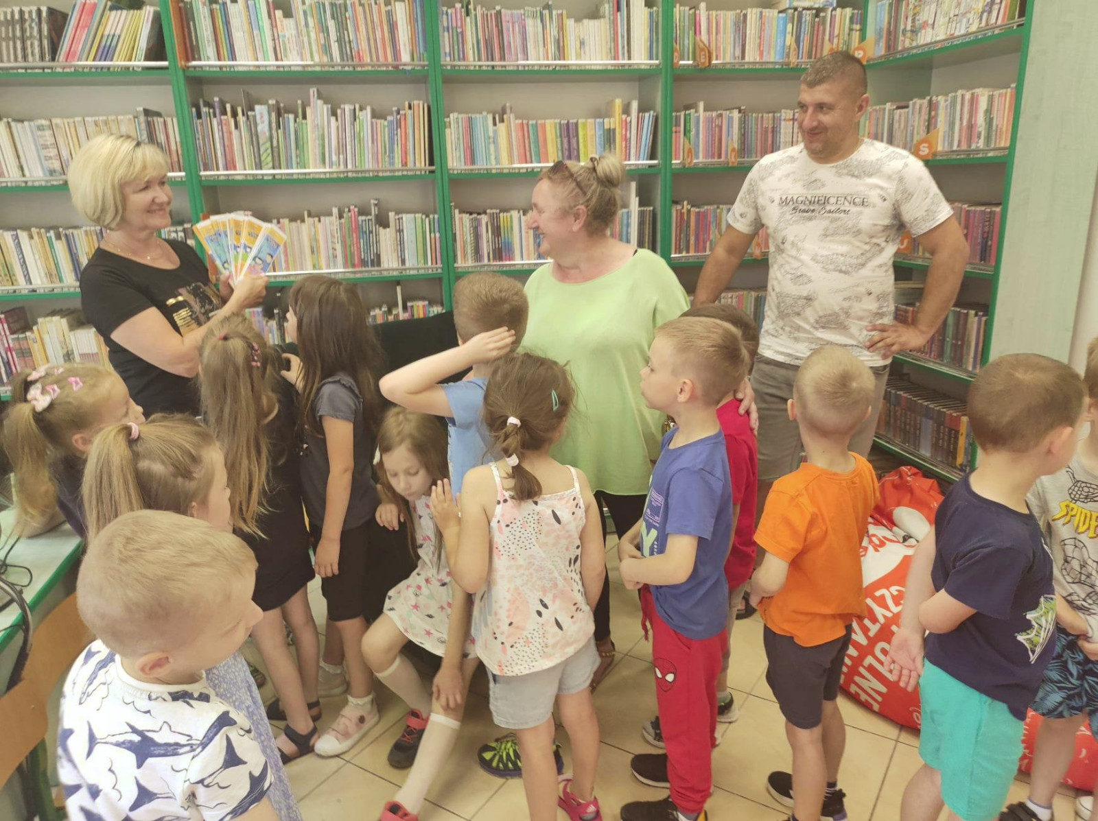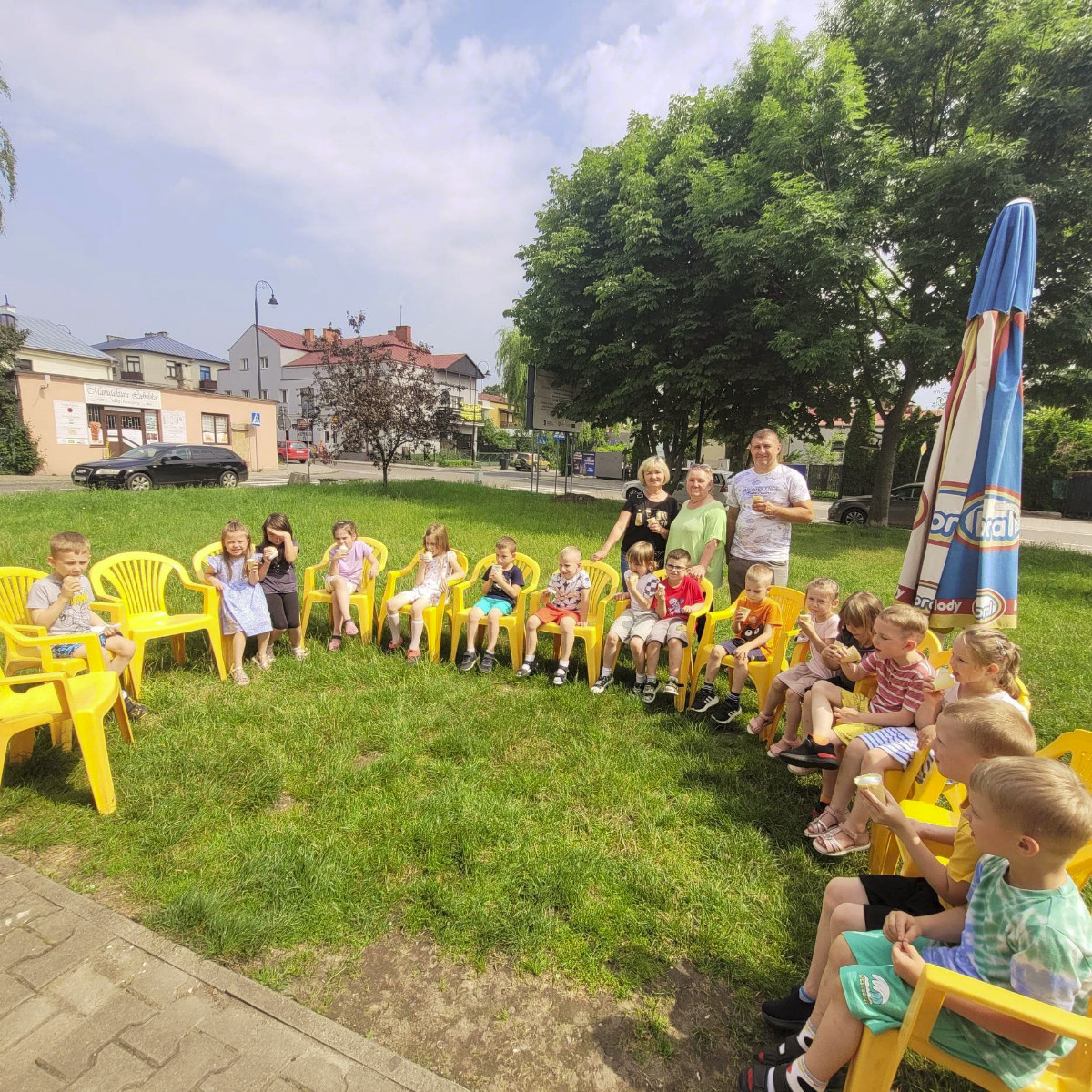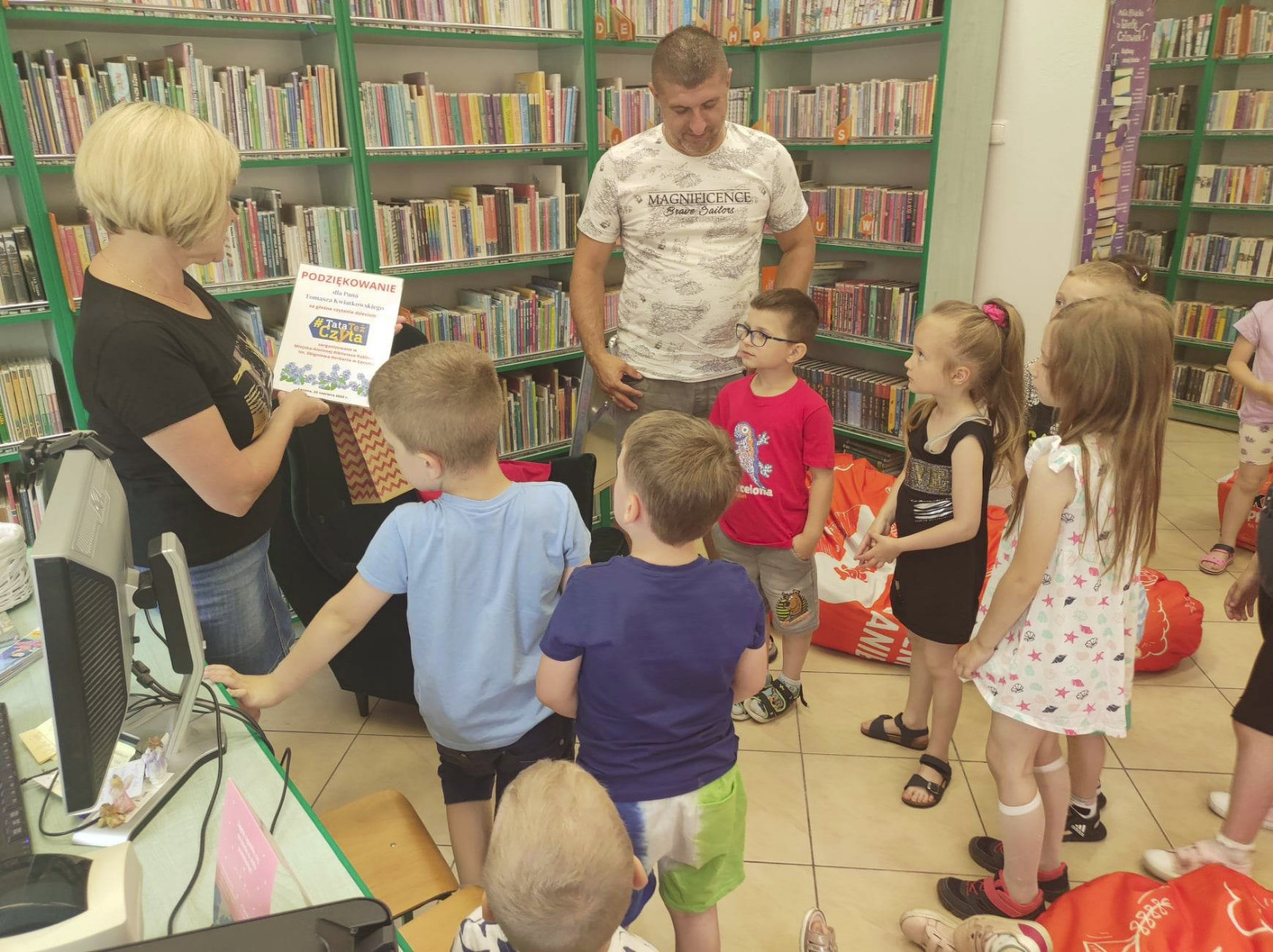 W upalne czwartkowe przedpołudnie 22 czerwca 2023 r. spotkaliśmy się w Bibliotece przy ul. Bożnicznej 21, z dziećmi z grup: „Muchomorki” oraz „Słoneczka” z Przedszkola Publicznego nr 1 w Łęcznej na głośnym czytaniu. Do udziału w akcji #TataTeżCzyta zaprosiliśmy Pana Tomasza Kwiatkowskiego, tatę Ignasia z grupy „Muchomorki”. Pan Tomasz, który bardzo często przychodzi ze swoim synem do biblioteki , z wielką przyjemnością przeczytał dzieciom książkę pt. „Dzień z tatą” autorstwa K. Richardsa. Przedszkolaki z ogromnym zainteresowaniem słuchały uroczej opowieści o zabawnym zajączku i jego tacie, a następnie odpowiadały na pytania bibliotekarki. Wybór książki do czytania nie był przypadkowy, bowiem jutro obchodzimy Dzień Taty. Podczas spotkania był czas na słuchanie piosenek o tacie oraz wspólne rozmowy. Na zakończenie dzieci otrzymały zakładki z logo akcji oraz słodką niespodziankę. Miłym akcentem spotkania było wspólne wyjście z „Muchomorkami” na pyszne lody.
