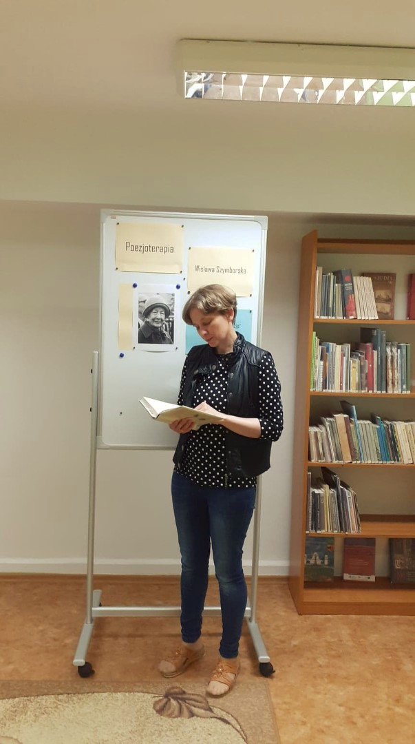13 czerwca 2023 r. w Filii nr 3 gościliśmy pacjentów z Oddziału Dziennego Psychiatrycznego Szpitala Powiatowego w Łęcznej. Podczas spotkania odkrywaliśmy poezję Wisławy Szymborskiej, Zbigniewa Herberta, Adama Mickiewicza, Jana Kasprowicza i Jana Pocka. Czytaliśmy ciekawe wiersze i rozmawialiśmy o roli poezji w życiu człowieka. Chętni mogli wyrazić swoje skojarzenia i refleksje nt. wiersza pt.: „Nic dwa razy.” Podczas rozmowy uczestnicy dzielili się myślami czym dla nich jest poezja i jakie utwory lubią czytać. Prowadząca opowiedziała uczestnikom o zaletach czytania poezji i zachęciła do poznawania różnych utworów poetyckich. W trakcie spotkania nasi goście obejrzeli jako ciekawostkę popularny film: „Mieszkanie Wisławy Szymborskiej w Krakowie. Home Tour z Michałem Rusinkiem” zachęcający do zwiedzania muzeum poświęconego życiu i twórczości polskiej noblistki.