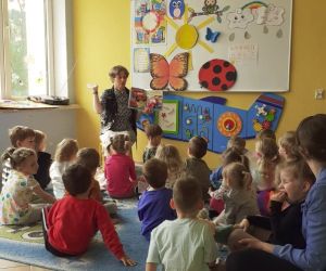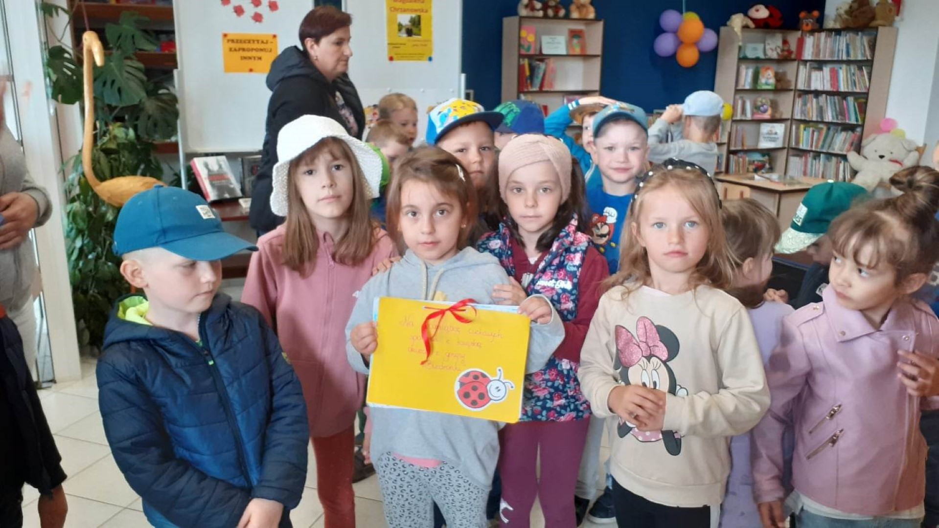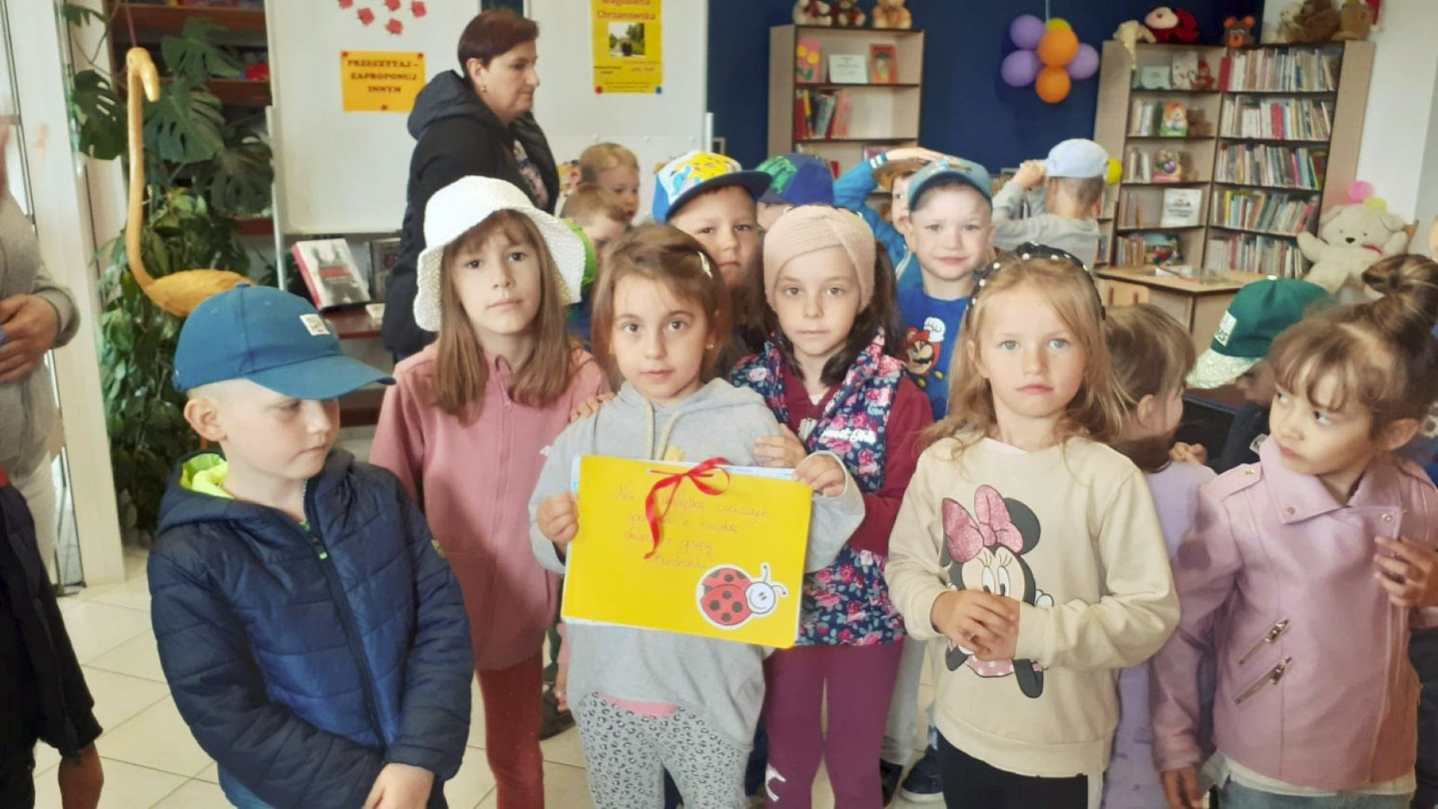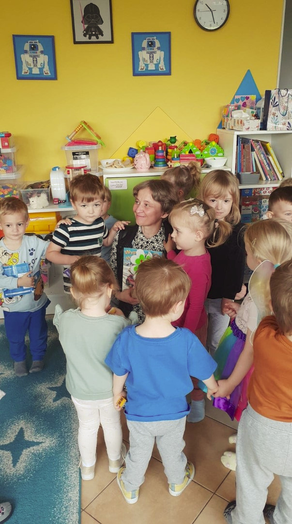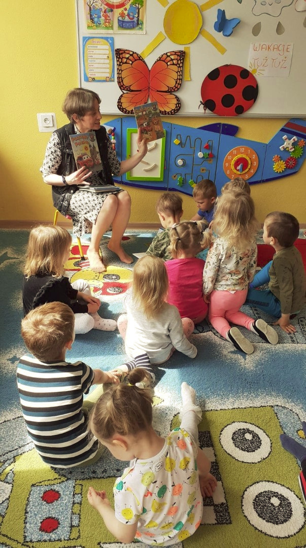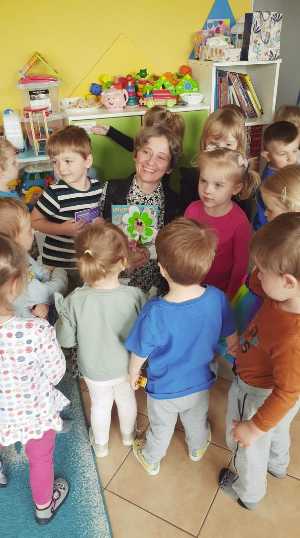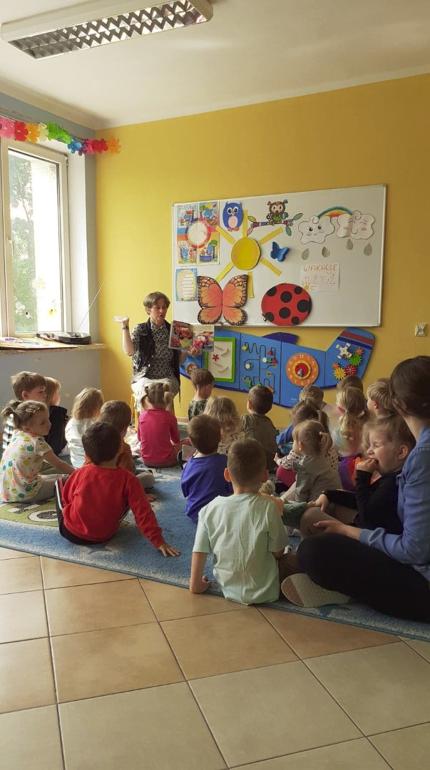 Z okazji zbliżających się wakacji 14.06.2023 r. bibliotekarka z Filii nr 3 odwiedziła dzieci i wzięła udział głośnym czytaniu w Żłobku Niepublicznym „Mali Odkrywcy” w Łęcznej. Mali słuchacze wysłuchali książeczki „Poznaję Polskę” Elżbiety Wójcik z serii Samochodzik Franek. Bohater historyjki - mały samochodzik Franek i jego przyjaciółka Błyskawica „przenieśli dzieci w podróż po Polsce”. Mali słuchacze „wybrali się” z Frankiem na nad morze, w góry, do Warszawy i na Mazury. Poznając przygody Franka mali słuchacze mogli poznać najciekawsze miejsca w Polsce do zwiedzenia w czasie wakacji. I tak razem z bibliotekarką dzieci poznały port w Gdańsku, syrenkę w Warszawie i smoka wawelskiego Krakowie. Dzieci obejrzały także inne ciekawe książeczki z serii o Franku i z serii „Jestem bezpieczny” Katarzyny Moryc. Z utworu pt.: „ Apteczka” dzieci dowiedziały się co znajduję się w czerwonym pudełeczku czyli apteczce i jak zaopatruje się ranę. W serdecznej i ciepłej atmosferze uczestnicy dzielili się pomysłami gdzie można spędzić wakacje. Na zakończenie dzieci wręczyły bibliotekarce podziękowanie: własnoręcznie wykonaną koniczynkę. Dziękujemy za zaproszenie, życzymy dzieciom i wychowawczyniom radosnego i bezpiecznego wypoczynku w wakacje.