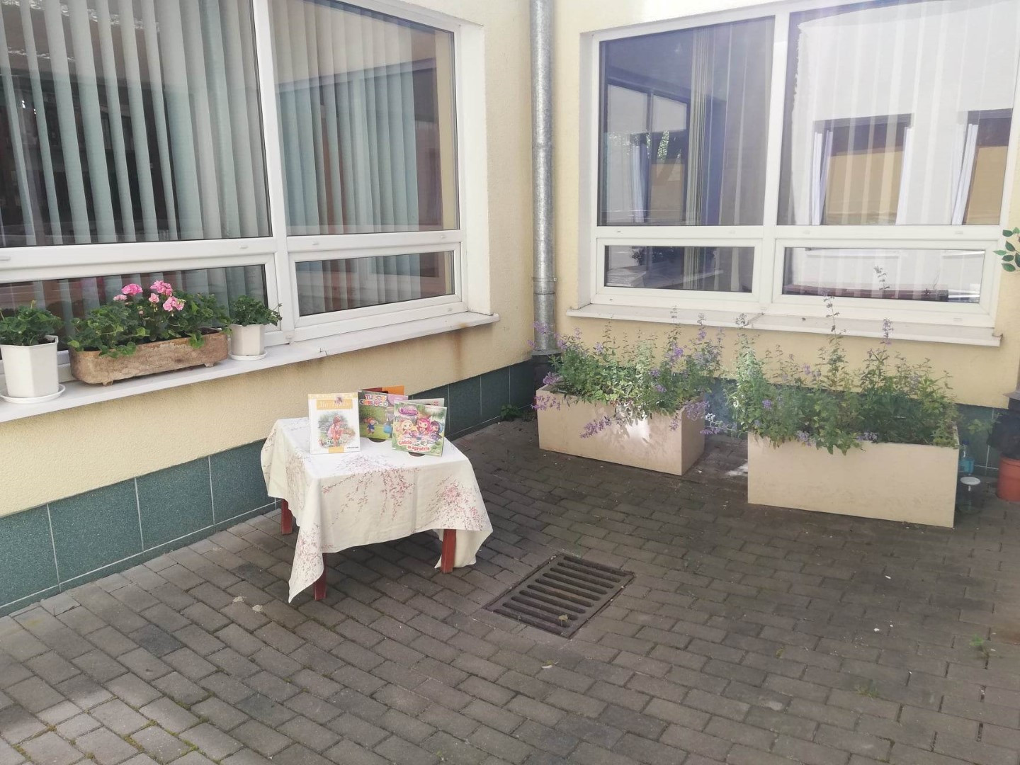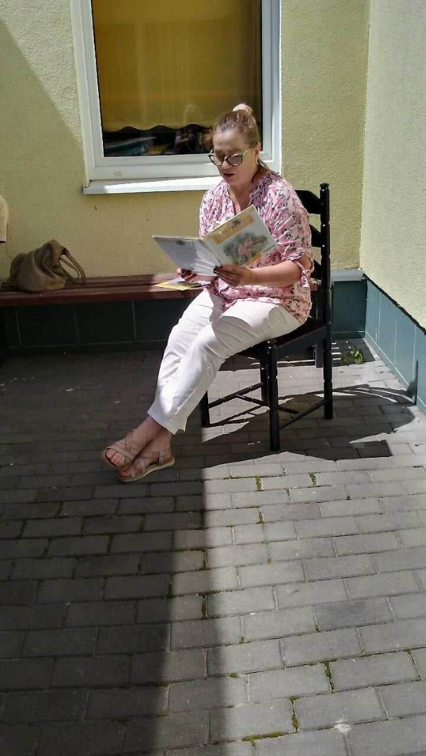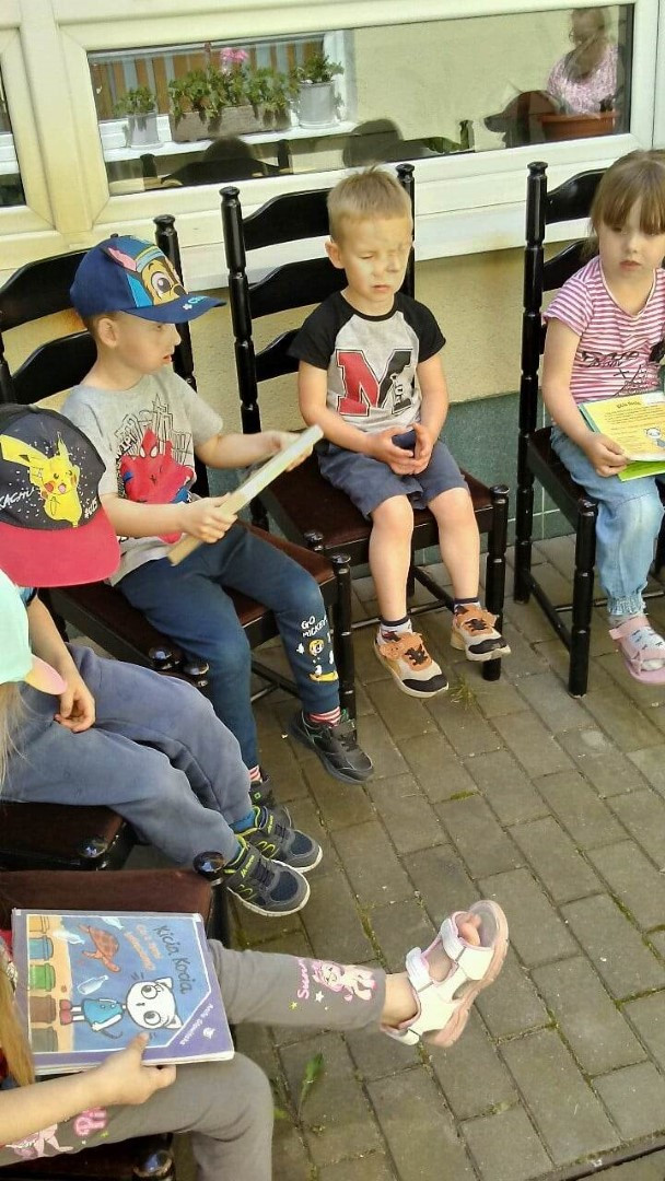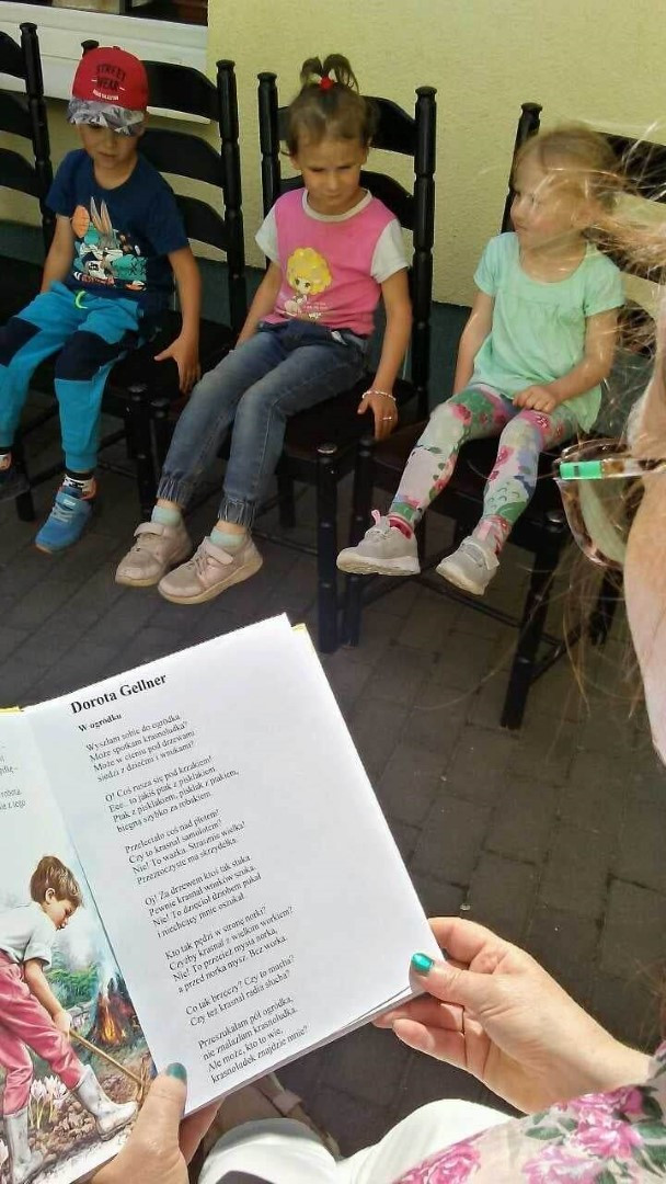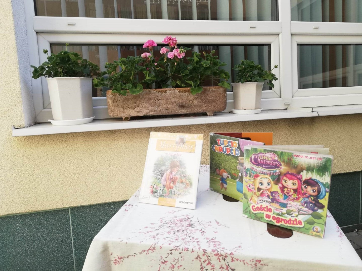 W ramach Tygodnia Czytania Dzieciom grupa Żabki z Przedszkola Publicznego nr 2 w Łęcznej miała zajęcia na świeżym powietrzu, w naszym ukwieconym wewnętrznym ogródeczku. Wierszyk Doroty Gellner „W ogródku”, był inspiracją do rozmowy o swoich ogródkach. Dzieci chętnie opowiadały jak pomagają swoim rodzicom i dziadkom w ich pielęgnowaniu. Pochwaliły się również swoim własnym ogródeczkiem przedszkolnym, w którym hodują miedzy innymi szczypiorek i bazylię. :Brawo Żabki”. Niezłe z was ogrodniczki. Po tak mile spędzonym czasie w naszym bibliotecznym ogródku przyszła pora na wypożyczanie książeczek.