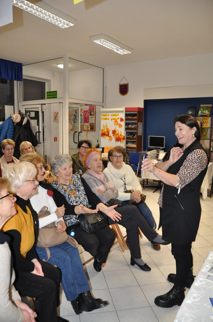 W dniu 18 listopada w Filii nr 2, ul. Obrońców Pokoju 1 odbyło się spotkanie autorskie z Moniką Gutek, autorką powieści obyczajowych. Na spotkanie zaproszone zostały czytelniczki biblioteki, słuchaczki Uniwersytetu Trzeciego Wieku Filia w Łęcznej, uczestniczki Dyskusyjnego Klubu Książki „Pod różą”, działającego w bibliotece. Autorka takich powieści jak „Twarze samotności”, „Chcę widzieć twój uśmiech” oraz „Krótka historia o kobiecie” w sposób bardzo ciepły, ciekawy i wzruszający dzieliła się swoimi odczuciami towarzyszącymi jej przy pisaniu książek. Nie mogło ich przecież zabraknąć, bo przecież powieści pani Moniki Gutek nasycone są tematyką, która dotyczy niemalże każdego z nas. Miłość lub jej brak, samotność, tęsknota za bliskością i zrozumieniem drugiej osoby, nałóg, rozstania i jeszcze raz samotność. Warto takie książki czytać, aby mimo wszystko, odnaleźć w nich nadzieję i wiarę, że gdzieś obok nas czeka ktoś bliski i , że tak do końca nie jesteśmy sami. Pani Monika zdradziła nam, że jest w trakcie pisania kolejnej książki, której tematyka przeniesie nas w czasy II wojny światowej. Powieść oparta będzie na faktach, pojawią się w niej postaci, które żyły w tych bardzo trudnych czasach. Czekamy więc z niecierpliwością na nową powieść. Na zakończenie spotkania można było zakupić książki autorki, oczywiście z dedykacją. Na pamiątkę spotkania pani Monika Gutek otrzymała upominki ufundowane przez Urząd Miejski w Łęcznej oraz bibliotekę.