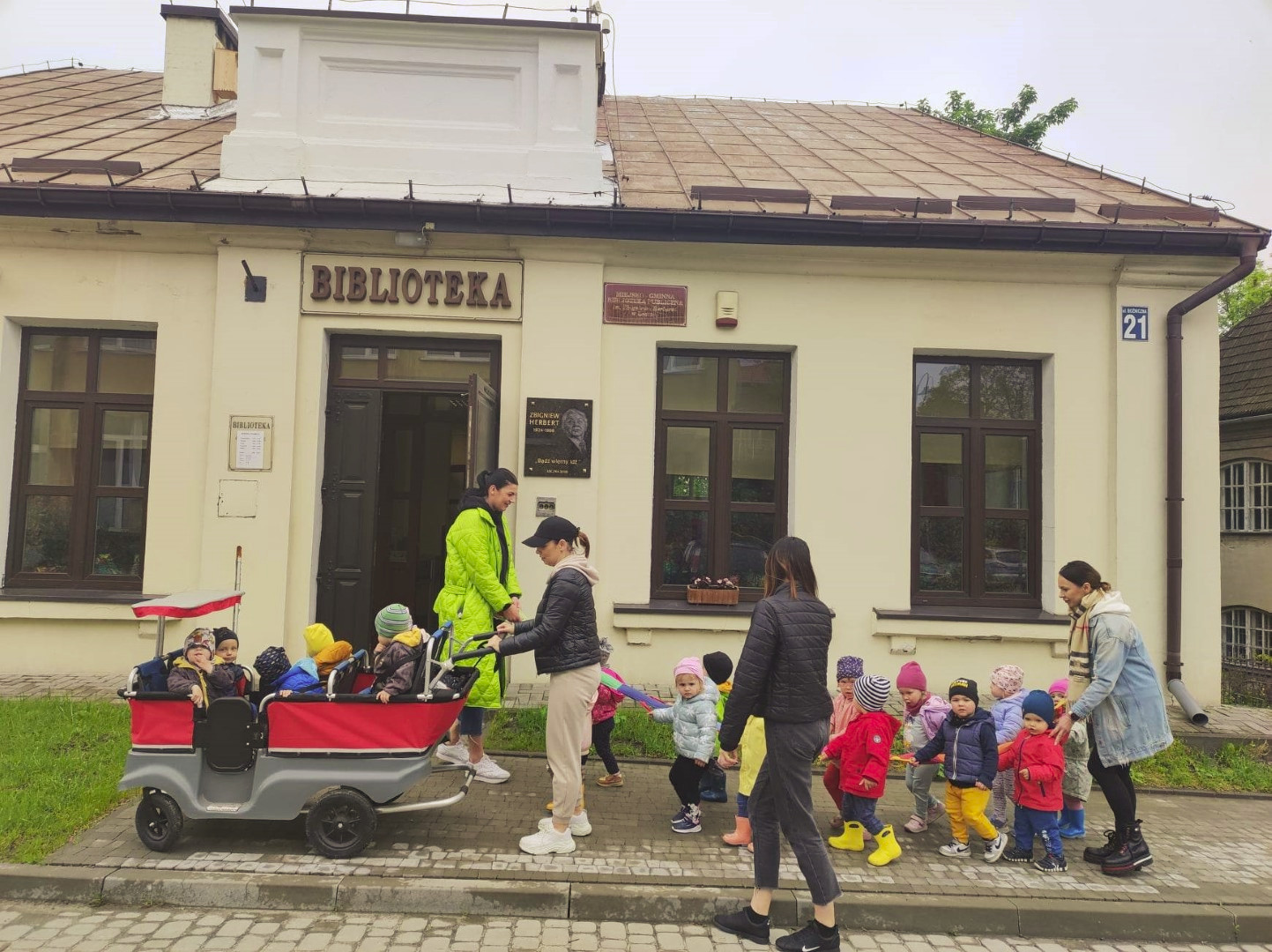 W dniu 18 maja 2023 r. odbyło się spotkanie z cyklu „Czwartkowy poranek z książką”. To cykl głośnego czytania organizowany przez Oddział dla Dzieci MGBP, skierowany do przedszkolaków z Przedszkola nr 1, w ramach współpracy obydwu placówek. Celem takich spotkań jest rozwijanie zainteresowań czytelniczych u dzieci. Podczas dzisiejszego „Czwartkowego poranka z książką” dzieci wysłuchały książeczki pt. „Franklin i książka z biblioteki”. Wybór książki na czytanie nie był przypadkowy, ponieważ w tym tygodniu dzieci poznają różne zawody. Na dzisiejszym spotkaniu przedszkolaki dzieci poznały zawód bibliotekarza, który „ na półkach książek ma bez liku i dba o te książki oraz Czytelników”. „Skrzaty” dowiedziały się o wyjątkowym miejscu, skąd bibliotekarka przynosi książki do Przedszkola i wypożycza w ramach akcji „Koszyk z książkami”. Podczas wizyty w przedszkolu bibliotekarka wprowadziła dzieci także w tematykę poszanowania książek recytując wiersz J. Huszczy pt.: „Skarga książki”. Ogromnym zainteresowaniem cieszyła się wspólna zabawę z książką pt. „W gospodarstwie” Na zakończenie każdy przedszkolak miał okazję wybrać sobie i wypożyczyć do domu książeczkę. Mamy nadzieję, że dzisiejsze spotkanie przybliżyło dzieciom pracę bibliotekarza.