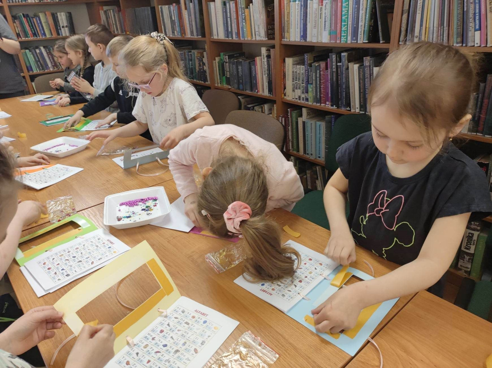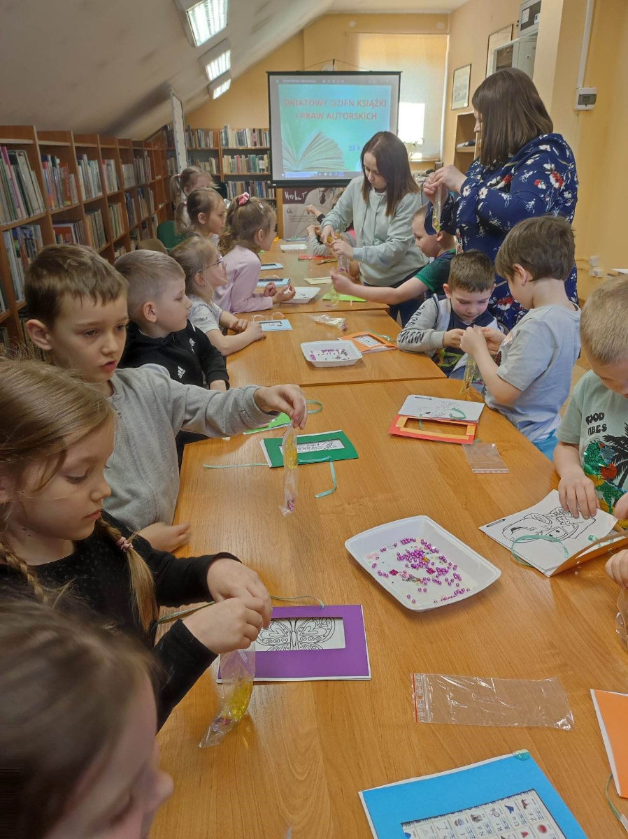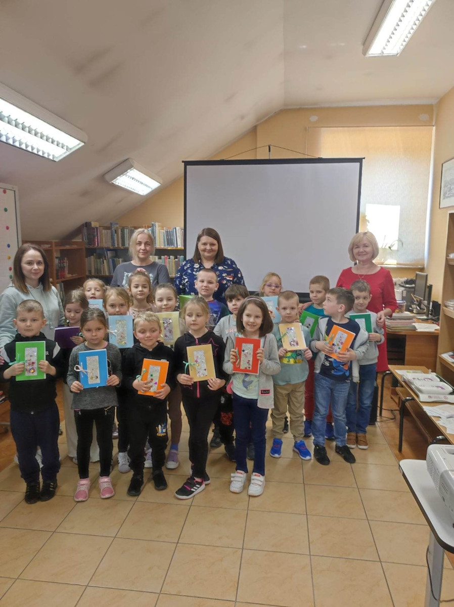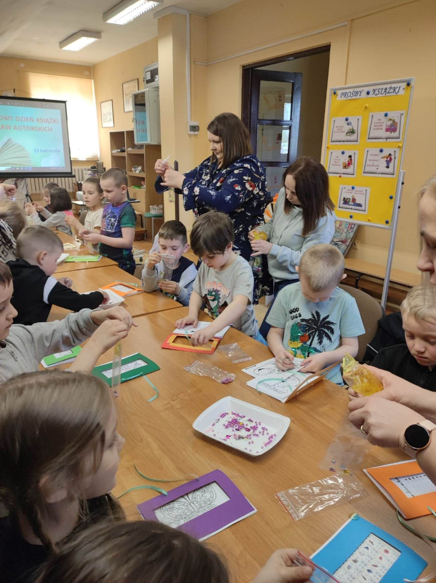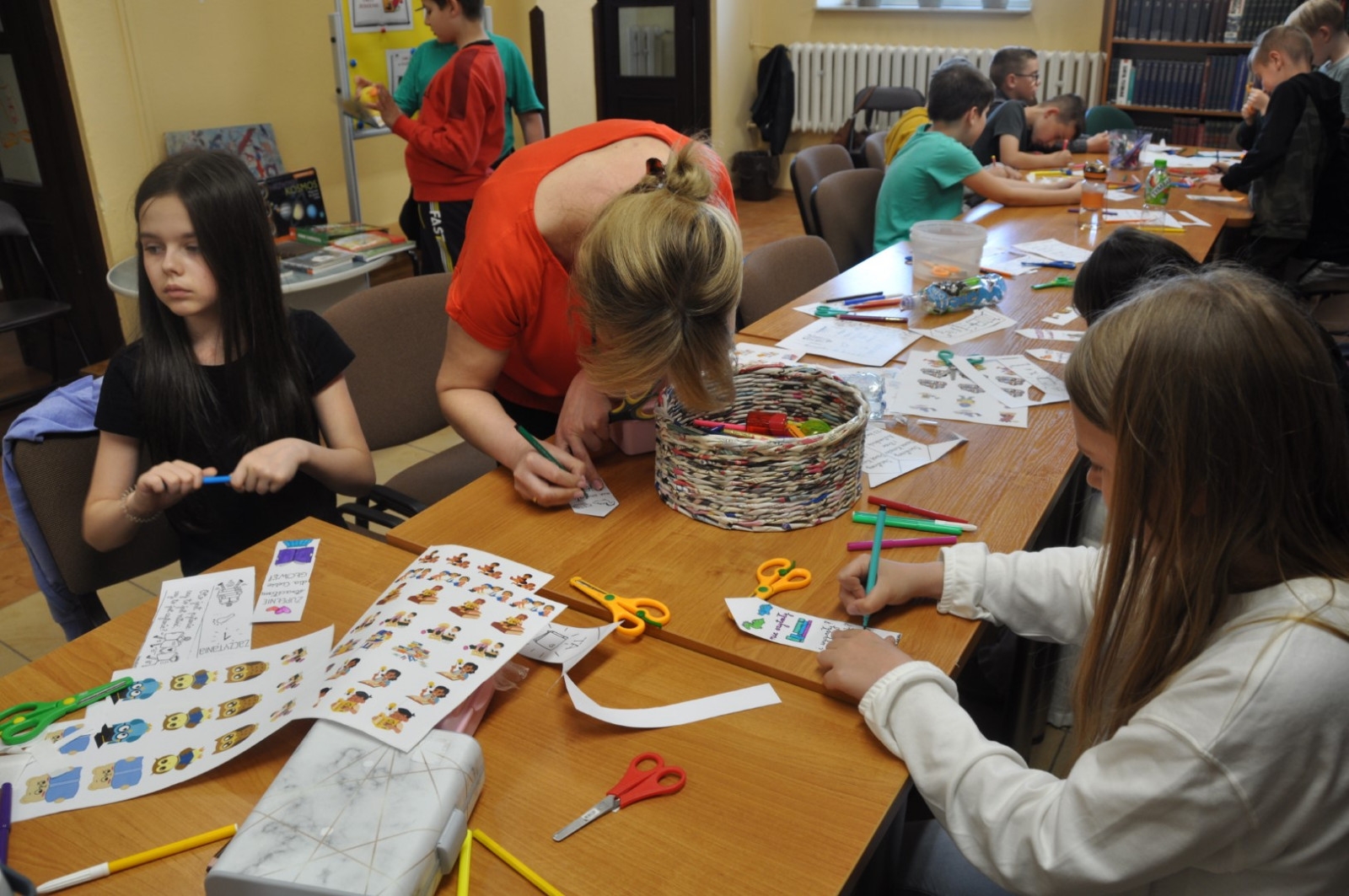 Podczas spotkania uczniowie rozmawiali o tym, jakie korzyści niesie za sobą czytanie książek, zapoznali się z historią książki, ciekawostkami bibliotecznymi oraz rozwiązywali krzyżówkę z hasłami dotyczącymi książek. Był także czas na zajęcia plastyczne, podczas których dzieci wykonywały zakładki do książek, które zabrały ze sobą do domu.
