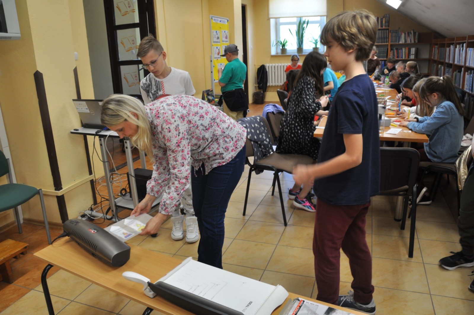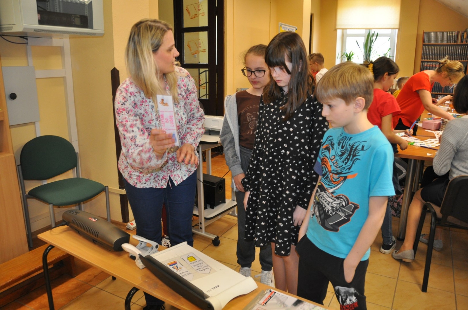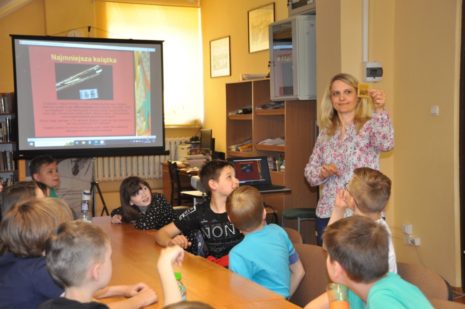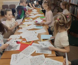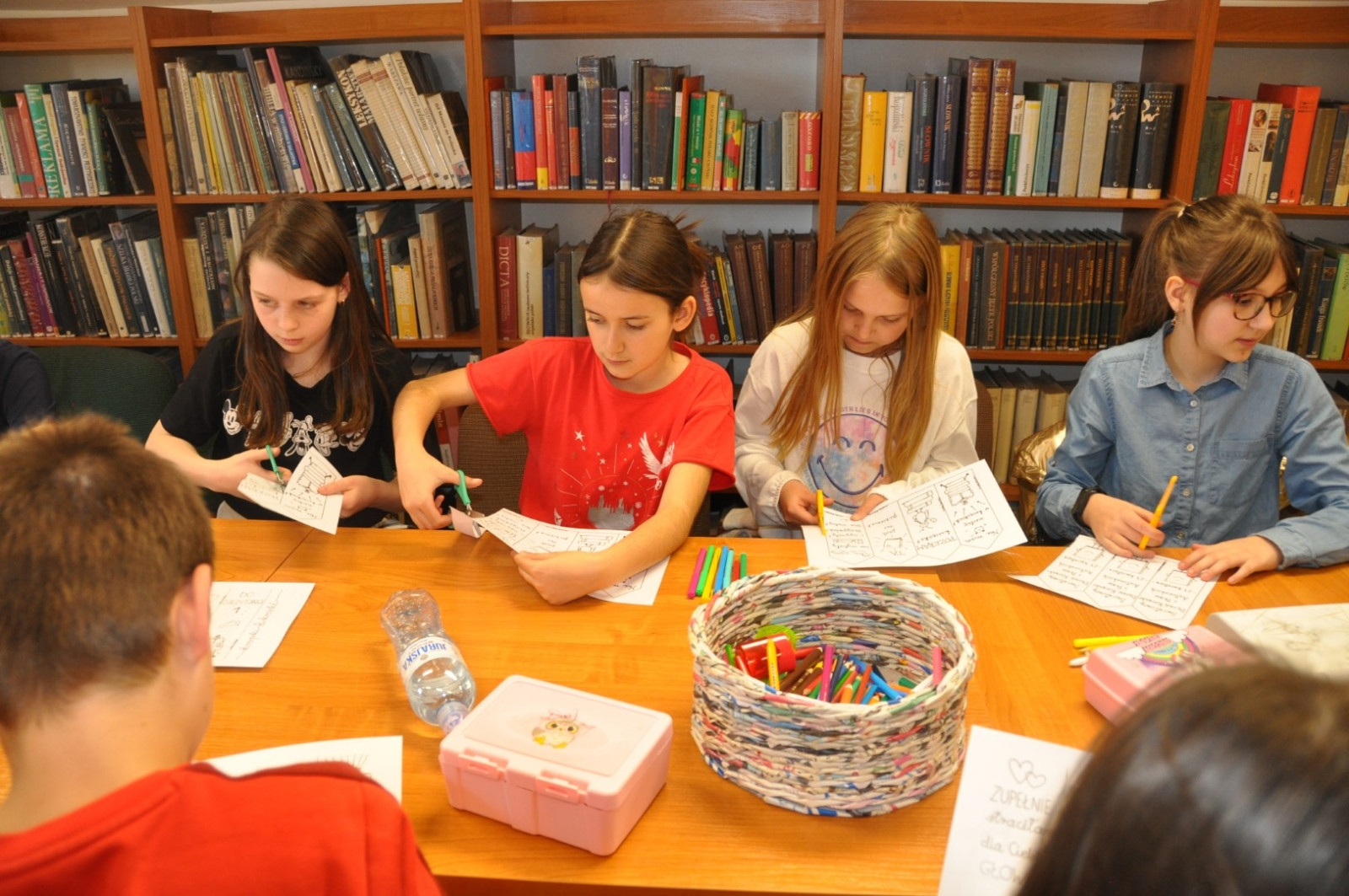 Podczas spotkania uczniowie rozmawiali o tym, jakie korzyści niesie za sobą czytanie książek, zapoznali się z historią książki, ciekawostkami bibliotecznymi oraz rozwiązywali krzyżówkę z hasłami dotyczącymi książek. Był także czas na zajęcia plastyczne, podczas których dzieci wykonywały zakładki do książek, które zabrały ze sobą do domu.