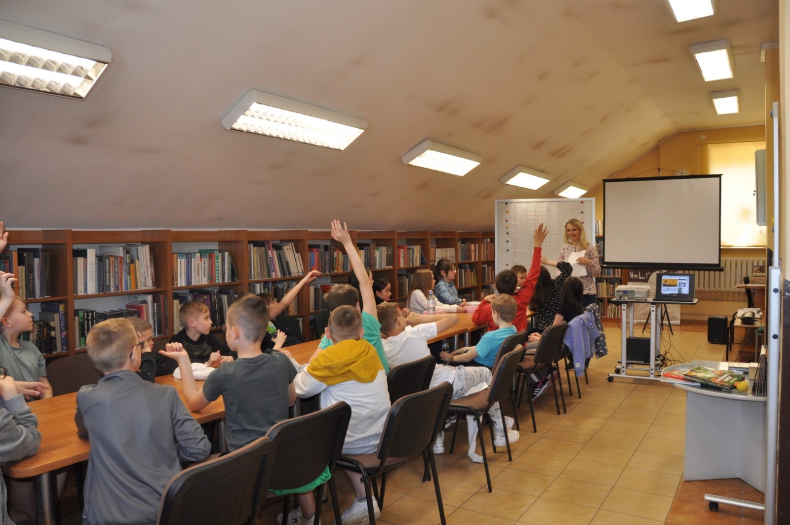 24.04.2023 Bibliotekę Główną odwiedziła klasa 4 A ze Szkoły Podstawowej nr 2 w Łęcznej wraz z wychowawczyniami. Poprzez udział w zajęciach edukacyjnych uczniowie włączyli się w obchody Światowego Dnia Książki i Praw Autorskich.