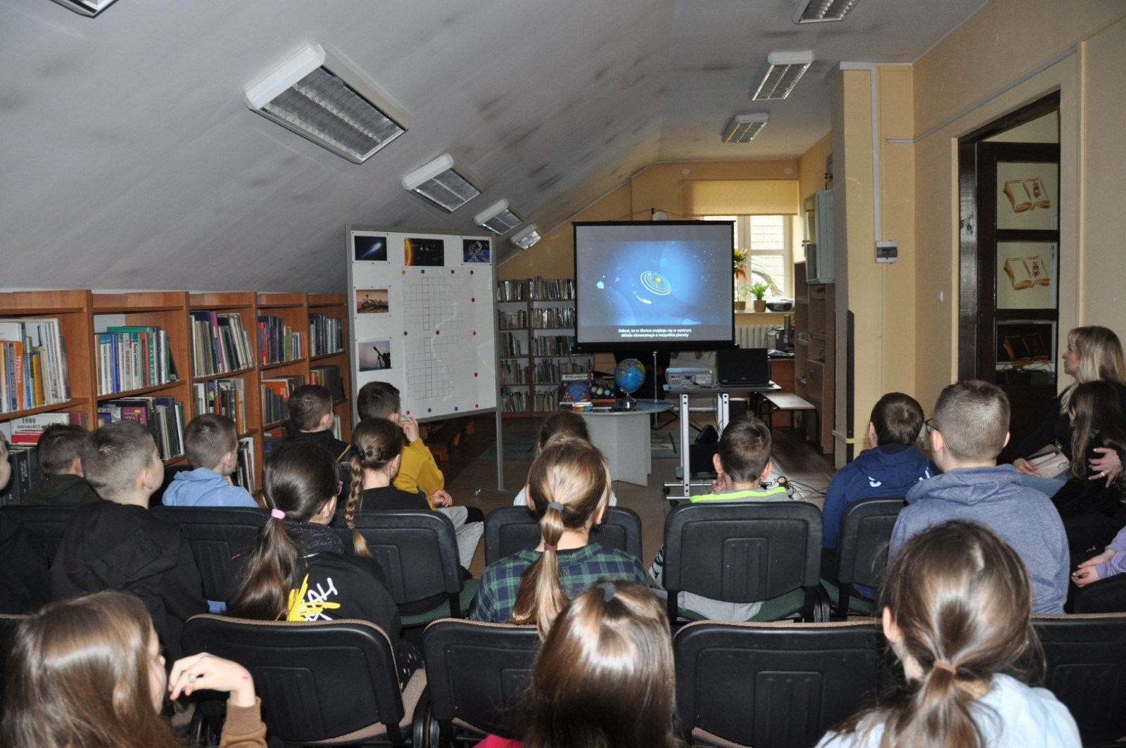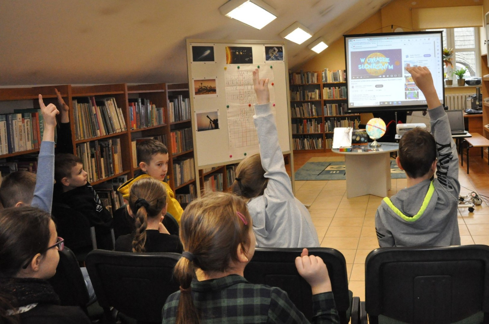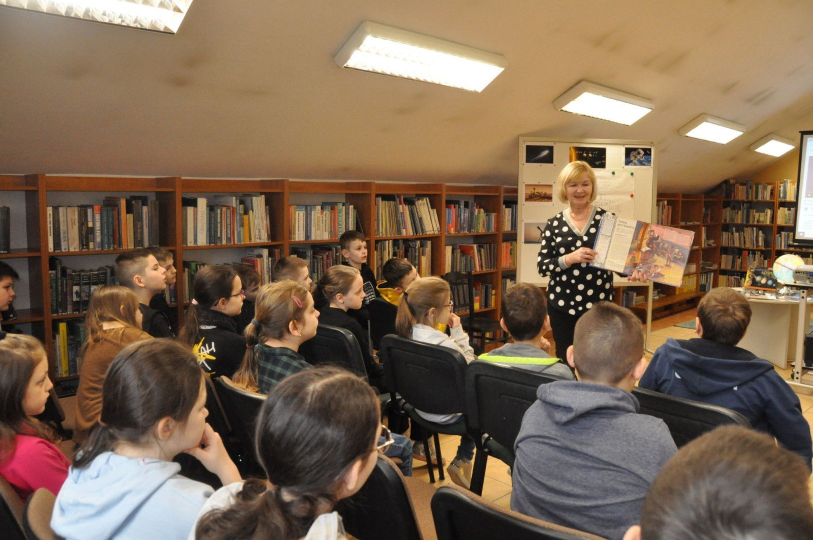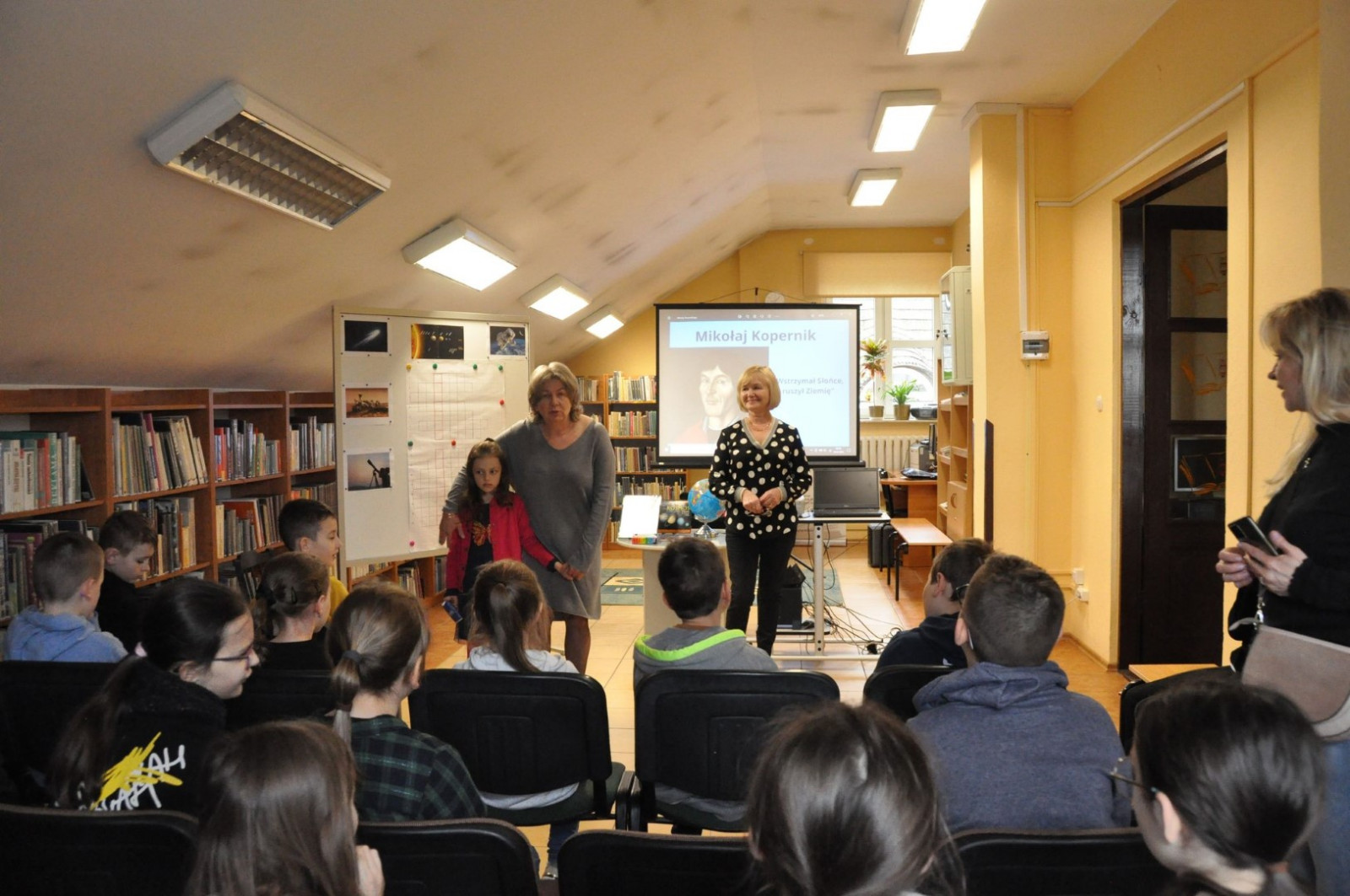 W dniu 19 kwietnia 2023 r. uczniowie z klasy 3 c ze Szkoły Podstawowej nr 4 w Łęcznej z wychowawczynią Anetą Zabłocką odwiedzili Bibliotekę przy ul. Bożnicznej 21. Podczas spotkania dzieci zwiedziły placówkę i poznały poszczególne agendy biblioteki. Dowiedziały się również jak wygląda praca w bibliotece i jakie książki znajdują się na półkach. Bibliotekarka recytowała wiersz J. Huszczy pt.: „Skarga książki", a następnie rozmawiała z dziećmi na temat poszanowania książek i właściwego obchodzenia się z nimi. Uczniowie odgadywali zagadki związane z ulubionymi bohaterami książek a także dowiedzieli się co, oprócz wypożyczania książek, można robić w bibliotece. Jako, że rok 2023 obchodzony jest jako ROK MIKOŁAJA KOPERNIKA, uczniowie uczestniczyli w zajęciach edukacyjnych dotyczących Wielkiego Astronoma. Podczas bibliotecznych zajęć dzieci słuchały głośnego czytania, poznały ciekawostki z życia wybitnego astronoma oraz zaznajomiły się Układem Słonecznym. Uczniowie słuchali piosenek oraz oglądali film o Mikołaju Koperniku. Dużym zainteresowaniem cieszyło się rozwiązywanie krzyżówki oraz zabawa dydaktyczna „prawda czy fałsz”. Na zakończenie zajęć dzieci otrzymały pierniki, które tak jak Mikołaj Kopernik, związane są z Toruniem. Bardzo dziękujemy naszym wspaniałym gościom za wizytę i aktywność na zajęciach.