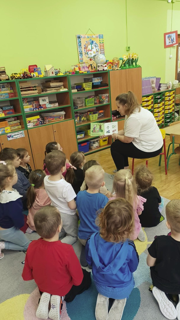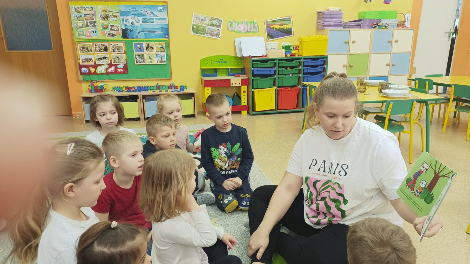 Opowieść o wiośnie i chorym jeżyku bardzo spodobała się dzieciom. Przedszkolaki opowiedziały również jak one pomagają chorym zwierzakom.