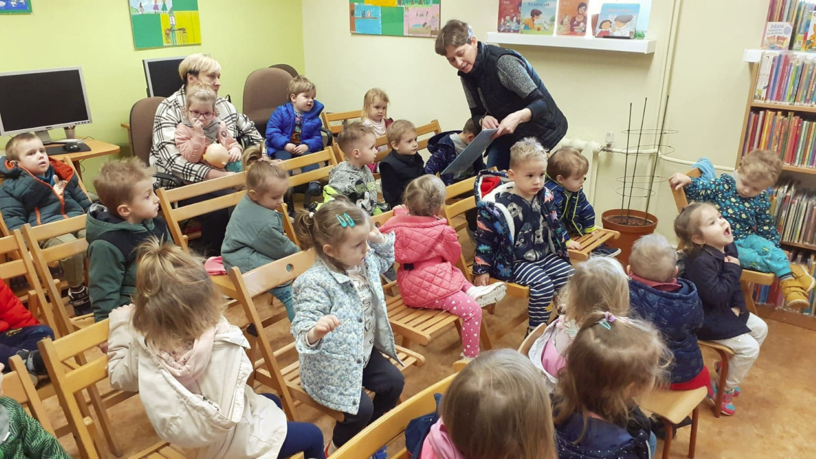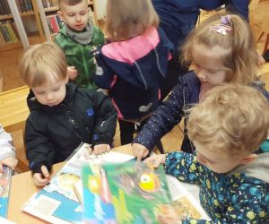Z tej okazji 13.04.2023 r. gościliśmy w bibliotece dzieci z grupy "Sówki" i "Biedronki" ze Żłobka Niepublicznego „Mali Odkrywcy”