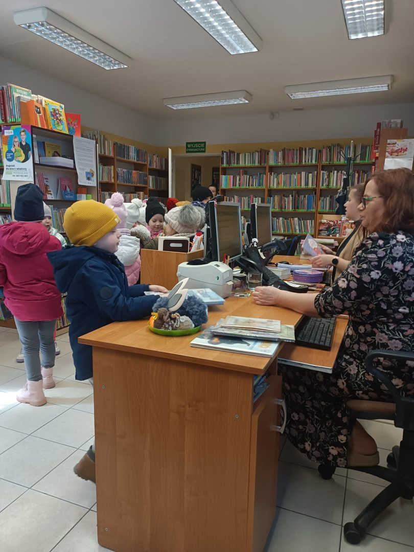 Kolejna sympatyczna wizyta w Filii nr 1. Tym razem Grupa 5-6 latków z Przedszkola Niepublicznego Mali Odkrywcy złożyła nam życzenia świąteczne i wypożyczyła swoje ulubione książeczki.