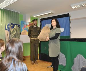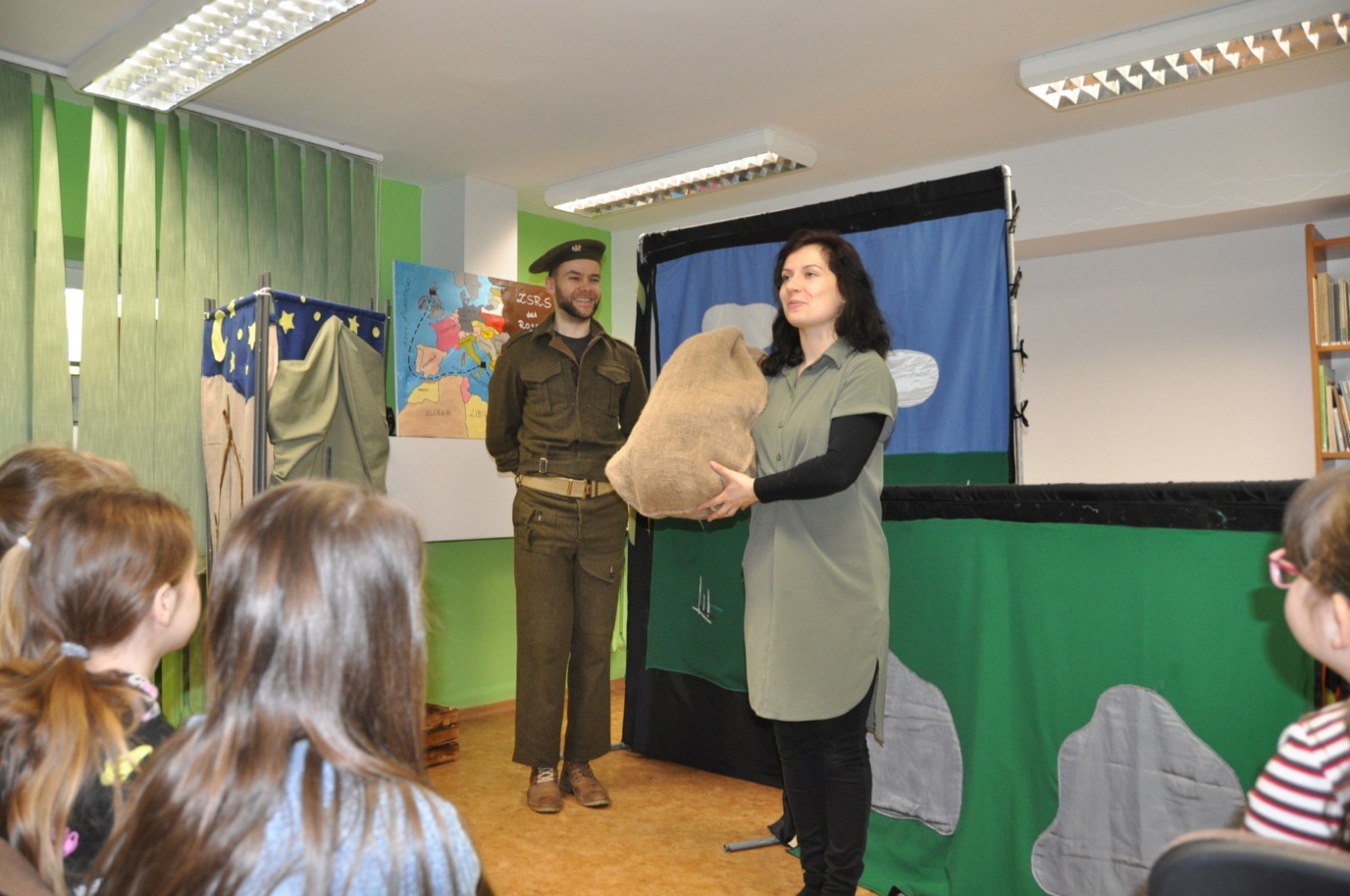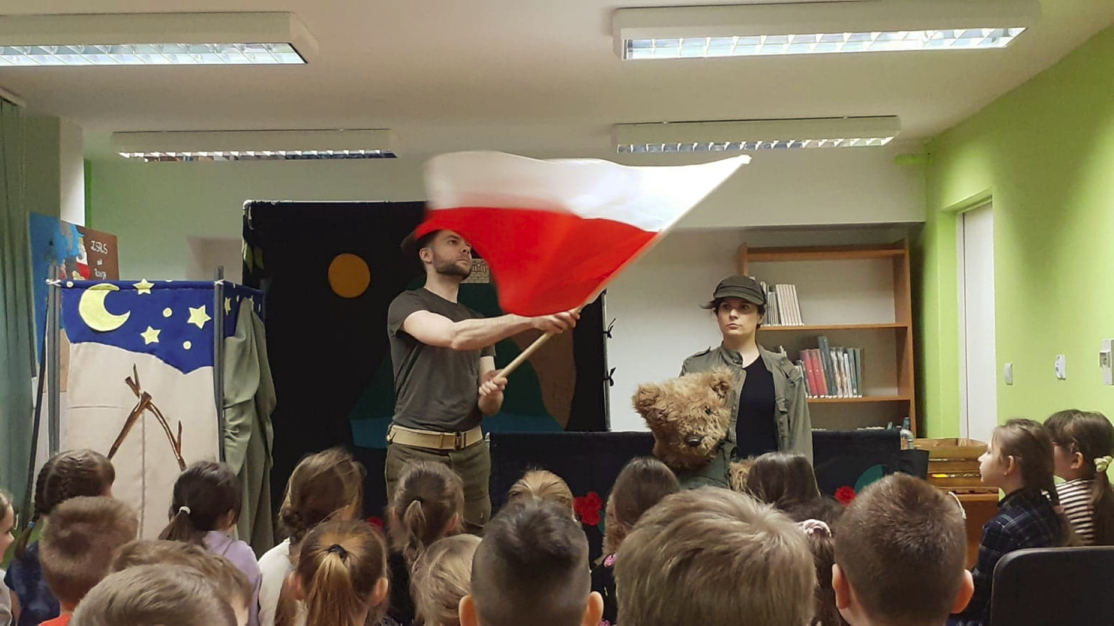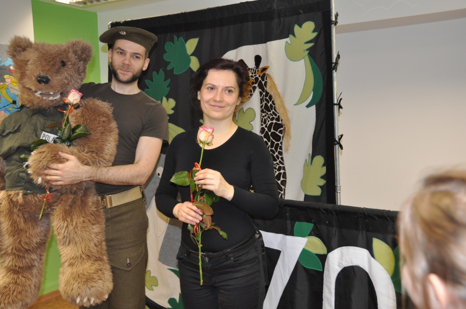 24 marca 2023 r. w Filii nr 3 dzięki współpracy z Oddziałem Instytutu Pamięci Narodowej w Lublinie odbyło się przedstawienie teatralne pt.:„ Historia Misia Wojtka”. Pani Anna Ałaj i Pan Jarosław Rodzeń, aktorzy biorący udział w wydarzeniu: zaprezentowali dzieciom niezwykły spektakl poświęcony historii niedźwiedzia Wojtka, który przeszedł szlak bojowy z II Korpusem Armii gen. Andersa z Iranu przez Monte Cassino aż do Edynburga w Szkocji. Przedstawienie obejrzeli zaproszeni uczniowie z klas I e i II b ze Szkoły Podstawowej nr 4 w Łęcznej z wychowawcami: Ewą Żelechowską i Wiolettą Tchórzewską, Pani Monika Mazurkiewicz Dyrektor Miejsko – Gminnej Biblioteki Publicznej im. Z. Herberta w Łęcznej, Pani Monika Bogusz Dyrektor Powiatowej Biblioteki w Łęcznej oraz pracownicy biblioteki. Prawdziwa historia niedźwiedzia Wojtka wydarzyła się podczas II wojny światowej. Czworonożny przyjaciel żołnierzy z Armii Andersa, brał udział w bitwie o Monte Cassino, pomagał nosić ciężkie skrzynie z amunicją i został uwieczniony w oficjalnym emblemacie 22. Kompanii Zaopatrywania Artylerii 2. Korpusu Polskiego. Był autentycznym towarzyszem broni, zasłużonym i podziwianym przez wszystkich polskim niedźwiedziem – żołnierzem. Po zakończeniu szlaku bojowego Armii gen. Andersa niedźwiedź Wojtek do końca swoich dni przebywał w ZOO w Edynburgu, gdzie zawsze żywo reagował na język polski. Aktorzy w niezwykły sposób przekazali historię niedźwiedzia Wojtka splecioną z losami żołnierzy Armii gen. Andersa. Interesujące i zrozumiałe dialogi. Piękne teksty piosenek, ciekawe rekwizyty i patriotyczne tło przedstawienia sprawiły, że wszyscy słuchacze z radością przenieśli się w niezwykły świat wędrówki „Misia Wojtka”. Dzieci spontanicznie i żywiołowo brały udział w spektaklu i wspólnie z aktorami śpiewały piosenki o „szeregowym Wojtku”. Wszyscy uczestnicy byli zachwyceni profesjonalnym przygotowaniem przedstawienia i ciekawą grą aktorów. Składamy serdeczne podziękowania dla Oddziału Instytutu Pamięci Narodowej w Lublinie za możliwość udziału w przedstawieniu, pani Annie Ałaj i panu Jarosławowi Rodzeniowi za mistrzowskie przedstawienie „Historii Misia Wojtka” a naszym gościom za przybycie i wspólne obejrzenie spektaklu. Do zobaczenia w bibliotece.