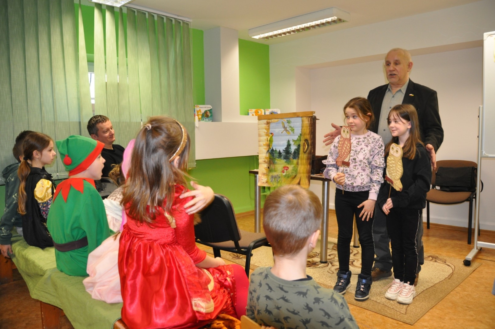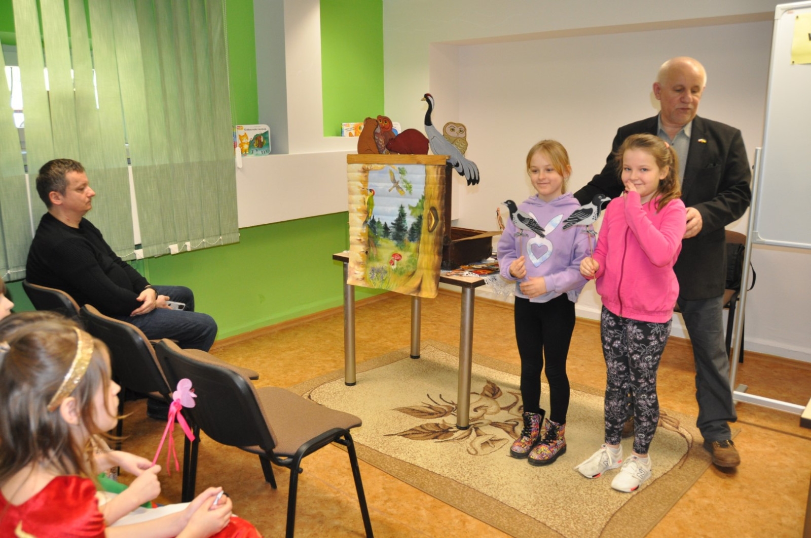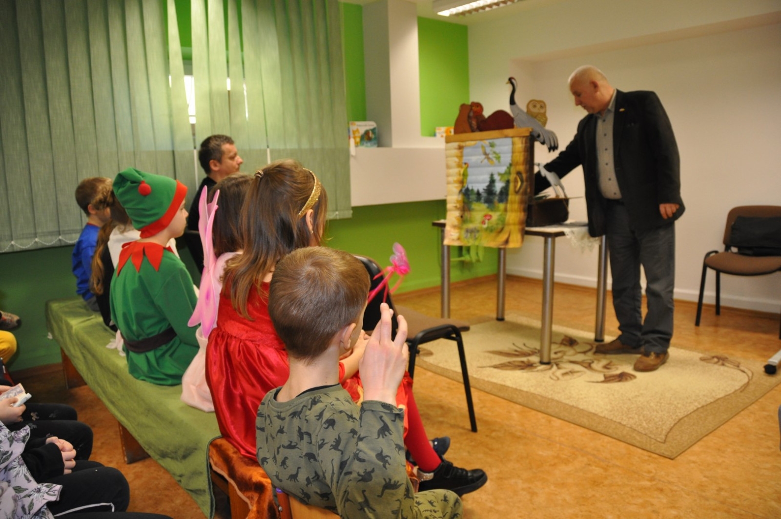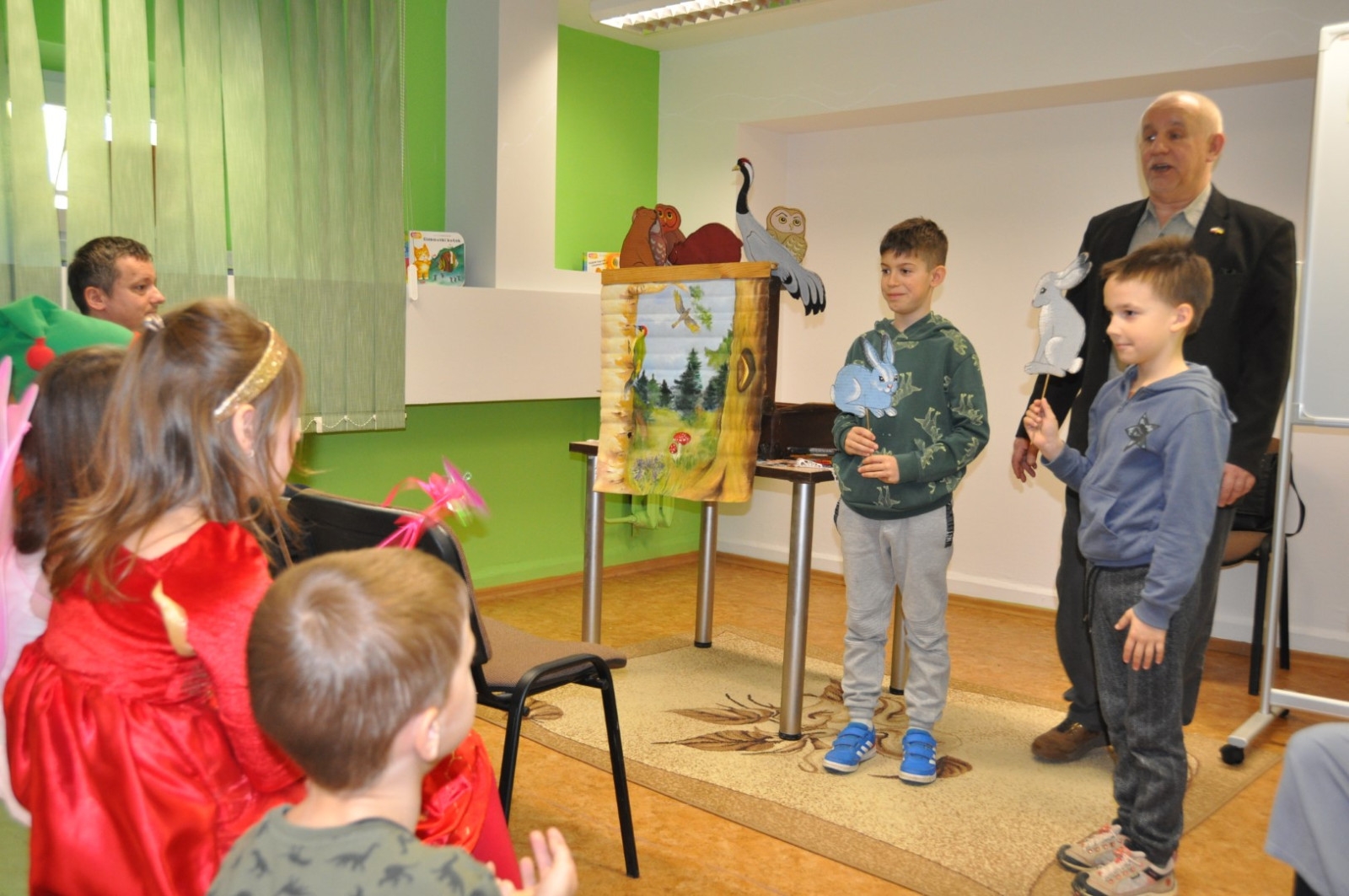 Podczas spotkania autor zaprezentował ciekawe przedstawienie pt.: „Teatrzyk jak się patrzy”. Mali uczestnicy poznali wiersze o ptakach i zwierzętach oraz wzięli udział w inscenizacji na żywo. Wspólnie z autorem dzieci wcieliły się w rolę bohaterów wierszy m.in.: „ Jemiołuszki”, „ Koguty”, „Trawka i osioł”, „Wróbelek”, „Sójka”, „Osa”, „Wrony”, „Zające”, „Królik Somnambulik”, „ Wilk i Kapusta”, „ Sowa”, „Żuraw”, „Wilk i Kapusta”, „ Sowa”, „Żuraw”, „Oset”, „Żabie Symfonie”, „ Przygoda”… Dzieci żywiołowo, spontanicznie i z radością wzięły udział w „wędrówce po świecie poezji”, w których ożywiona przyroda i zwierzęta odgrywały rolę podmiotu lirycznego.