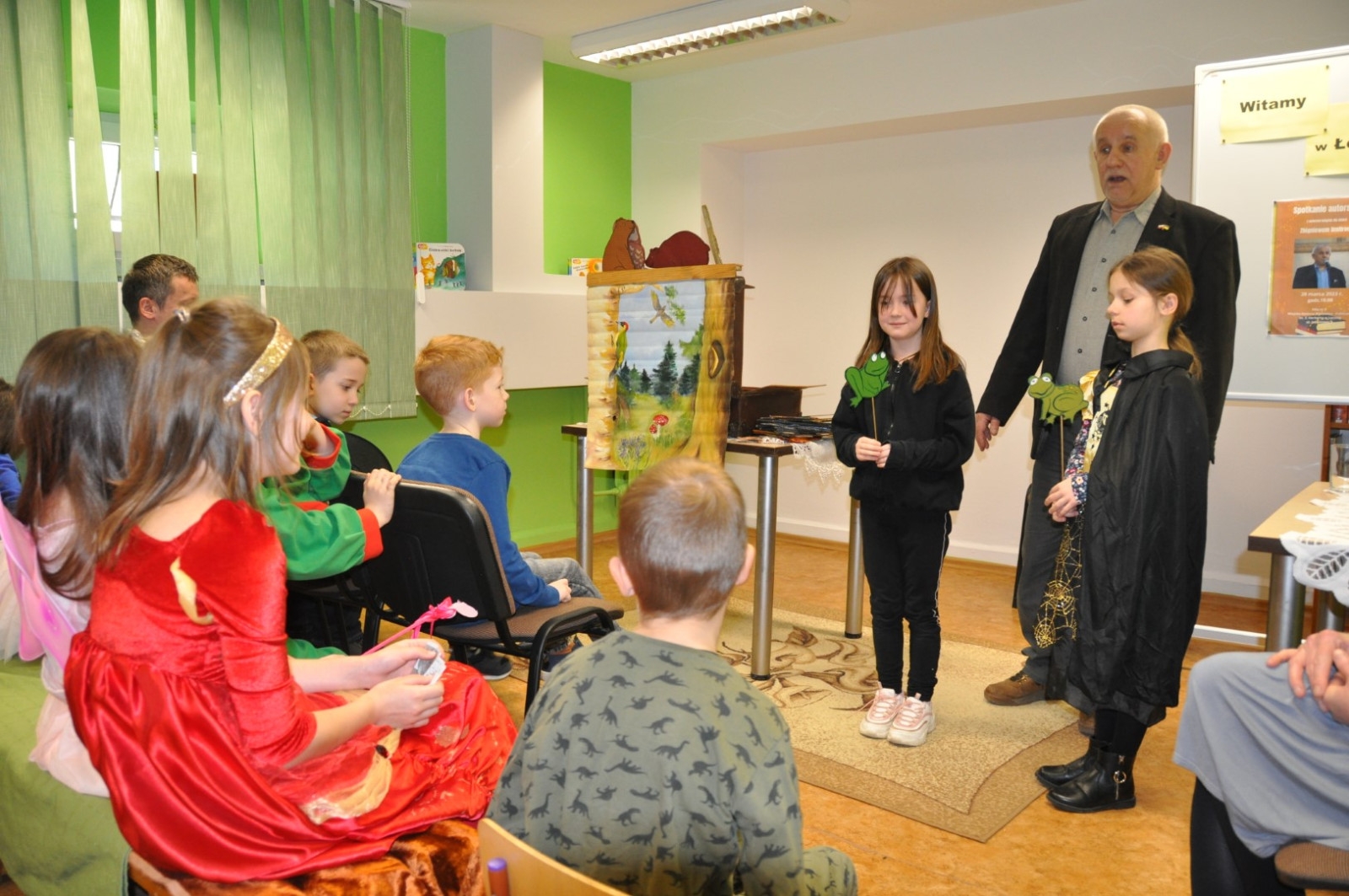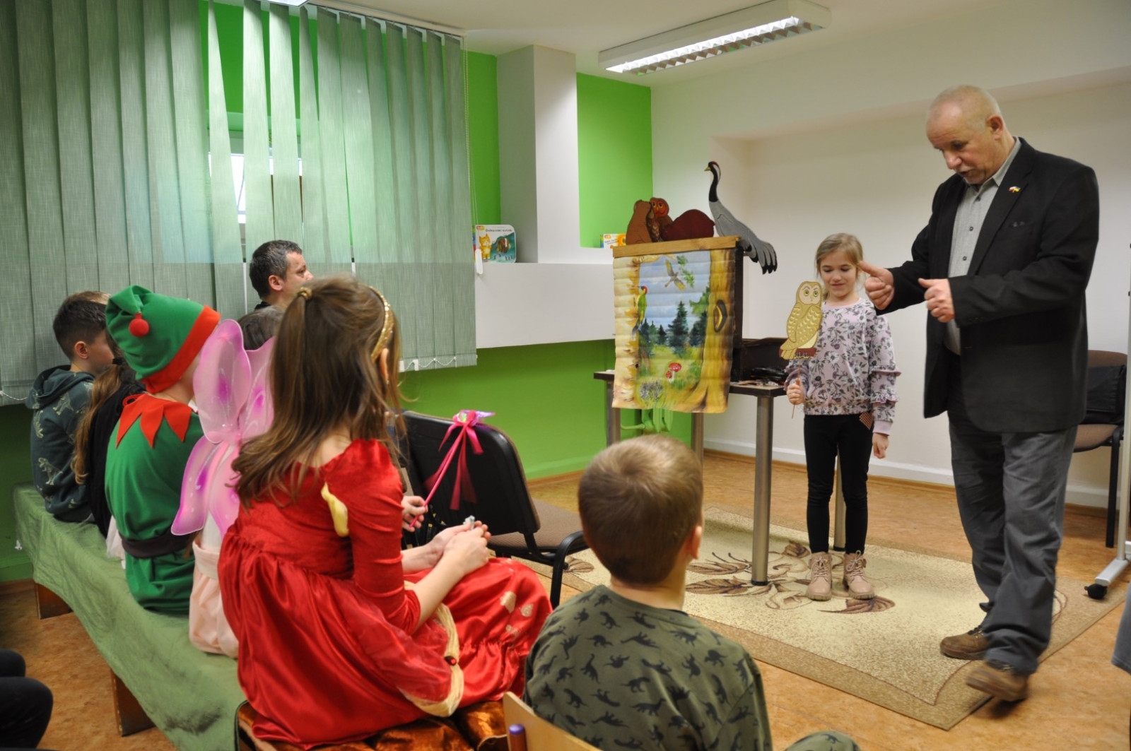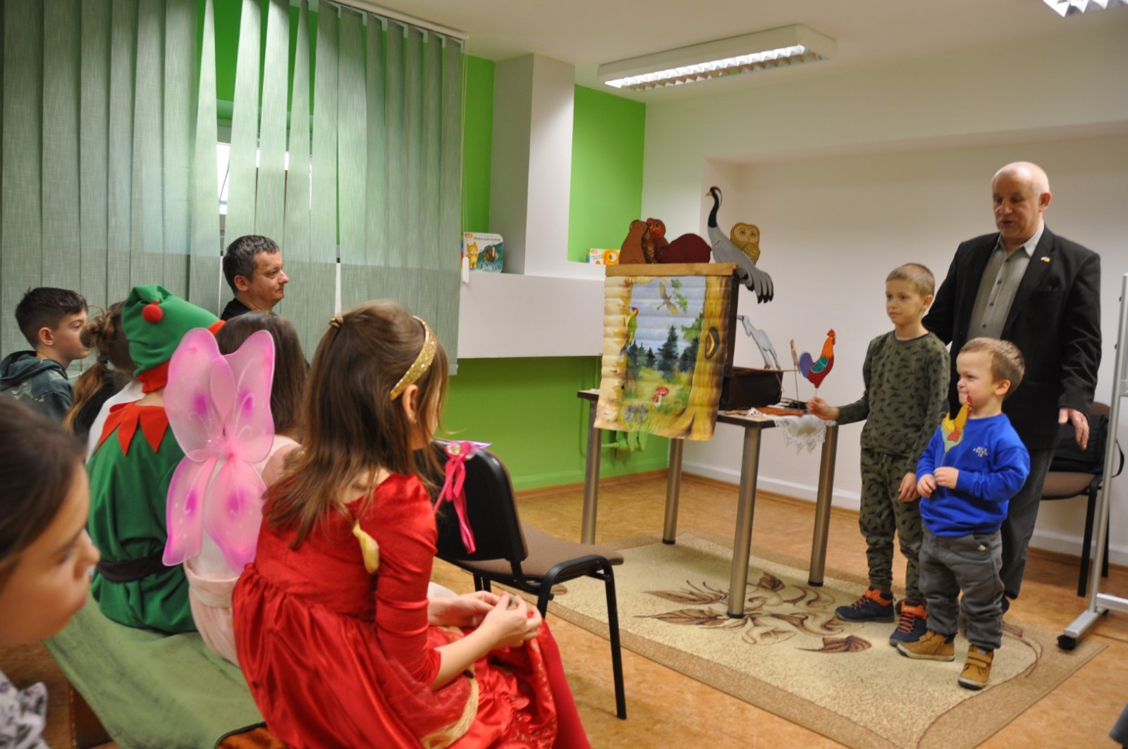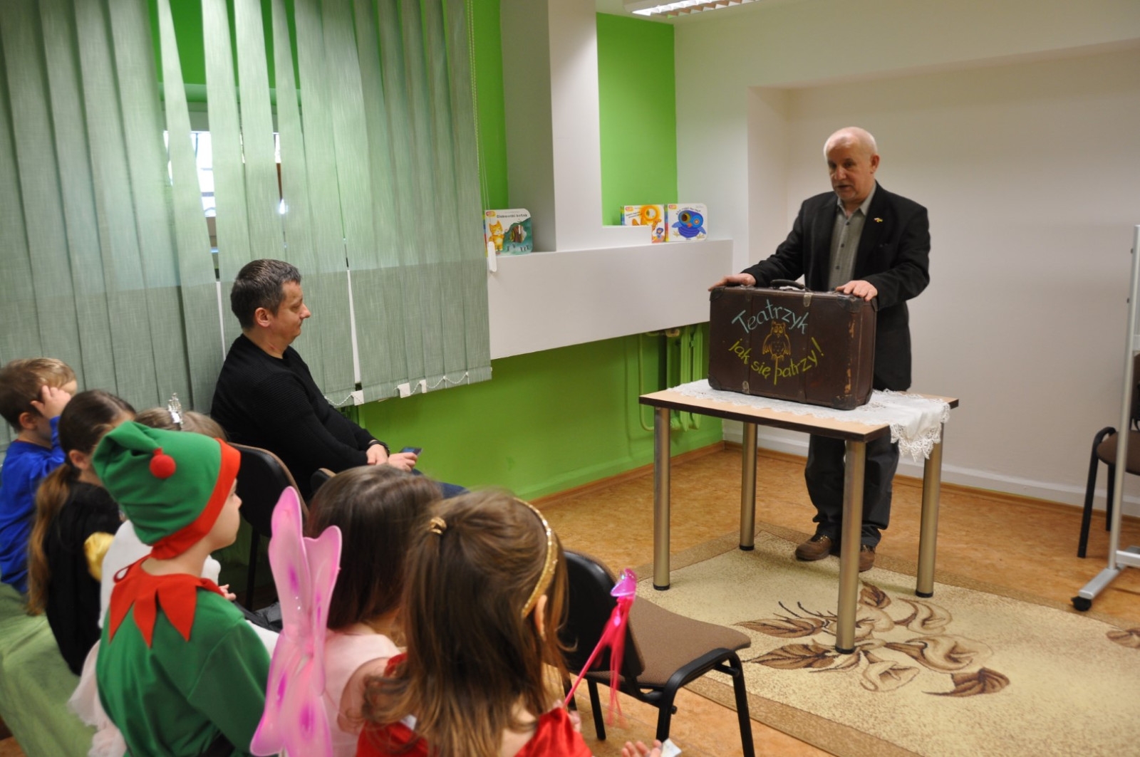 Podczas spotkania autor zaprezentował ciekawe przedstawienie pt.: „Teatrzyk jak się patrzy”. Mali uczestnicy poznali wiersze o ptakach i zwierzętach oraz wzięli udział w inscenizacji na żywo. Wspólnie z autorem dzieci wcieliły się w rolę bohaterów wierszy m.in.: „ Jemiołuszki”, „ Koguty”, „Trawka i osioł”, „Wróbelek”, „Sójka”, „Osa”, „Wrony”, „Zające”, „Królik Somnambulik”, „ Wilk i Kapusta”, „ Sowa”, „Żuraw”, „Wilk i Kapusta”, „ Sowa”, „Żuraw”, „Oset”, „Żabie Symfonie”, „ Przygoda”… Dzieci żywiołowo, spontanicznie i z radością wzięły udział w „wędrówce po świecie poezji”, w których ożywiona przyroda i zwierzęta odgrywały rolę podmiotu lirycznego.