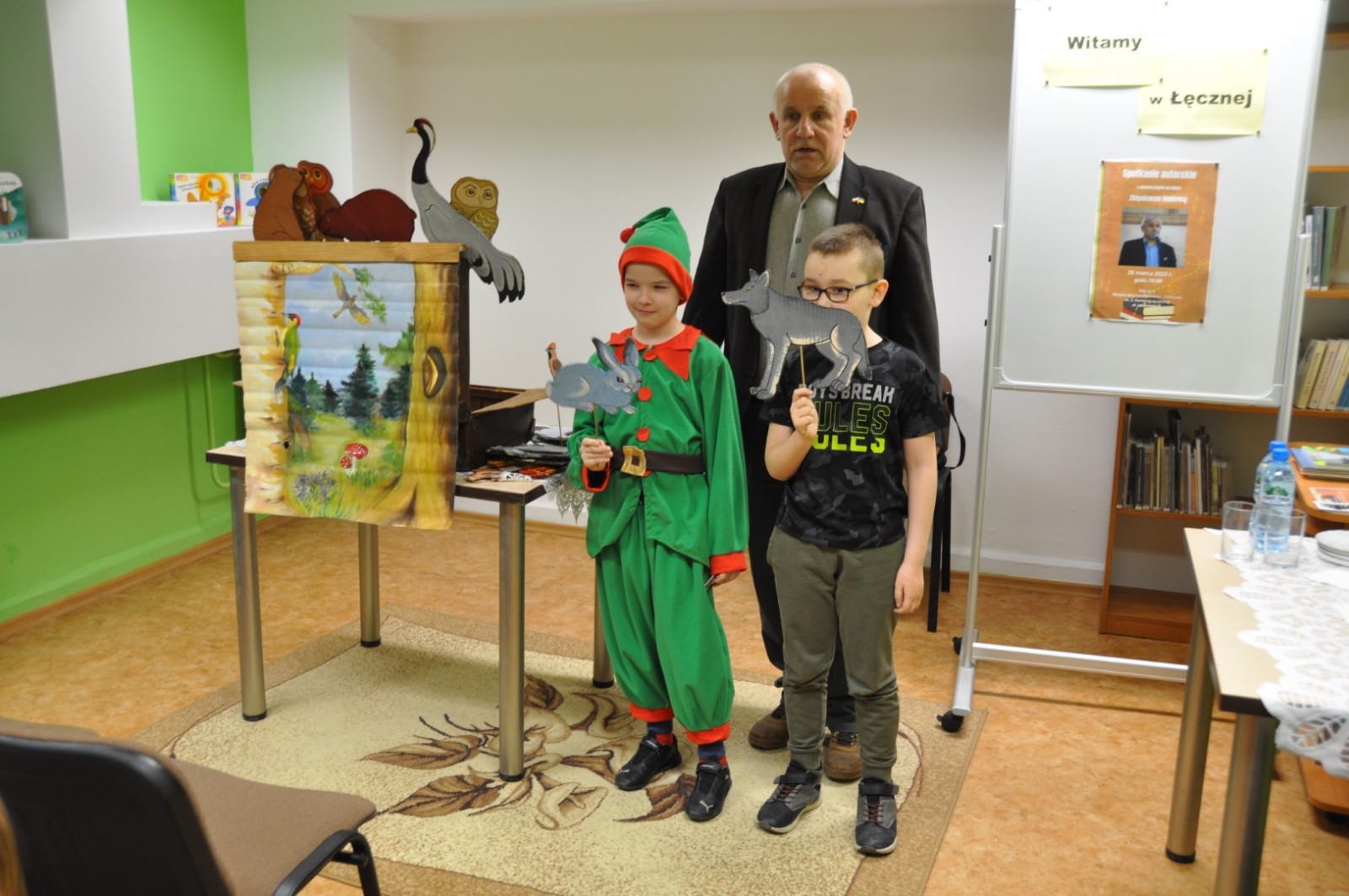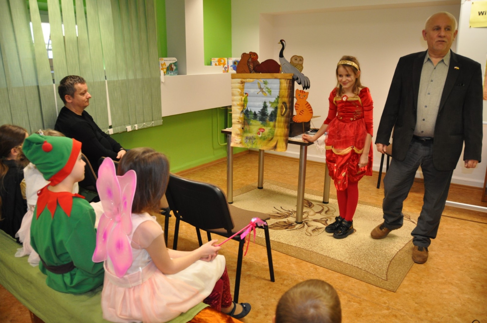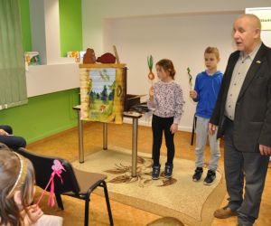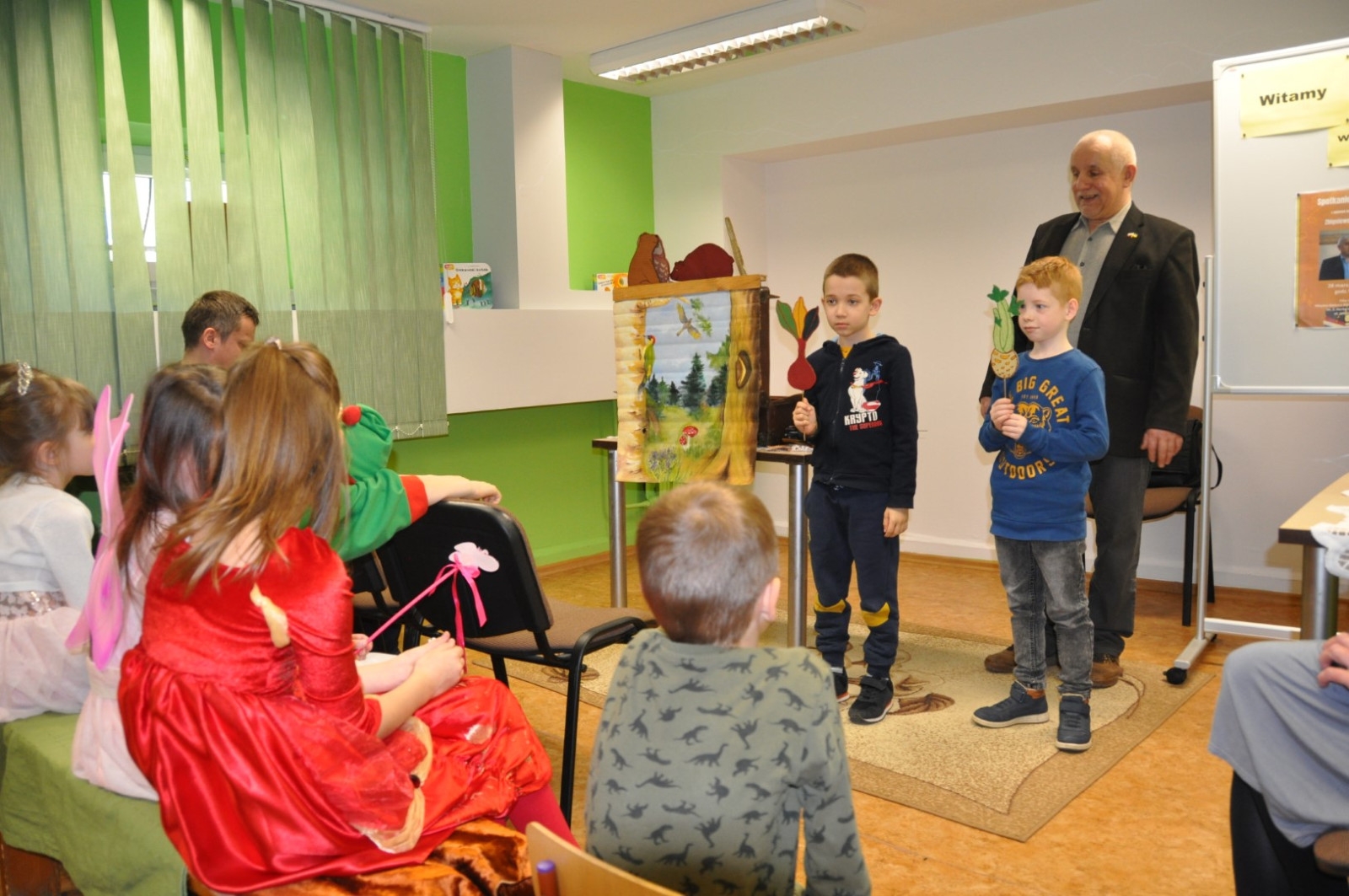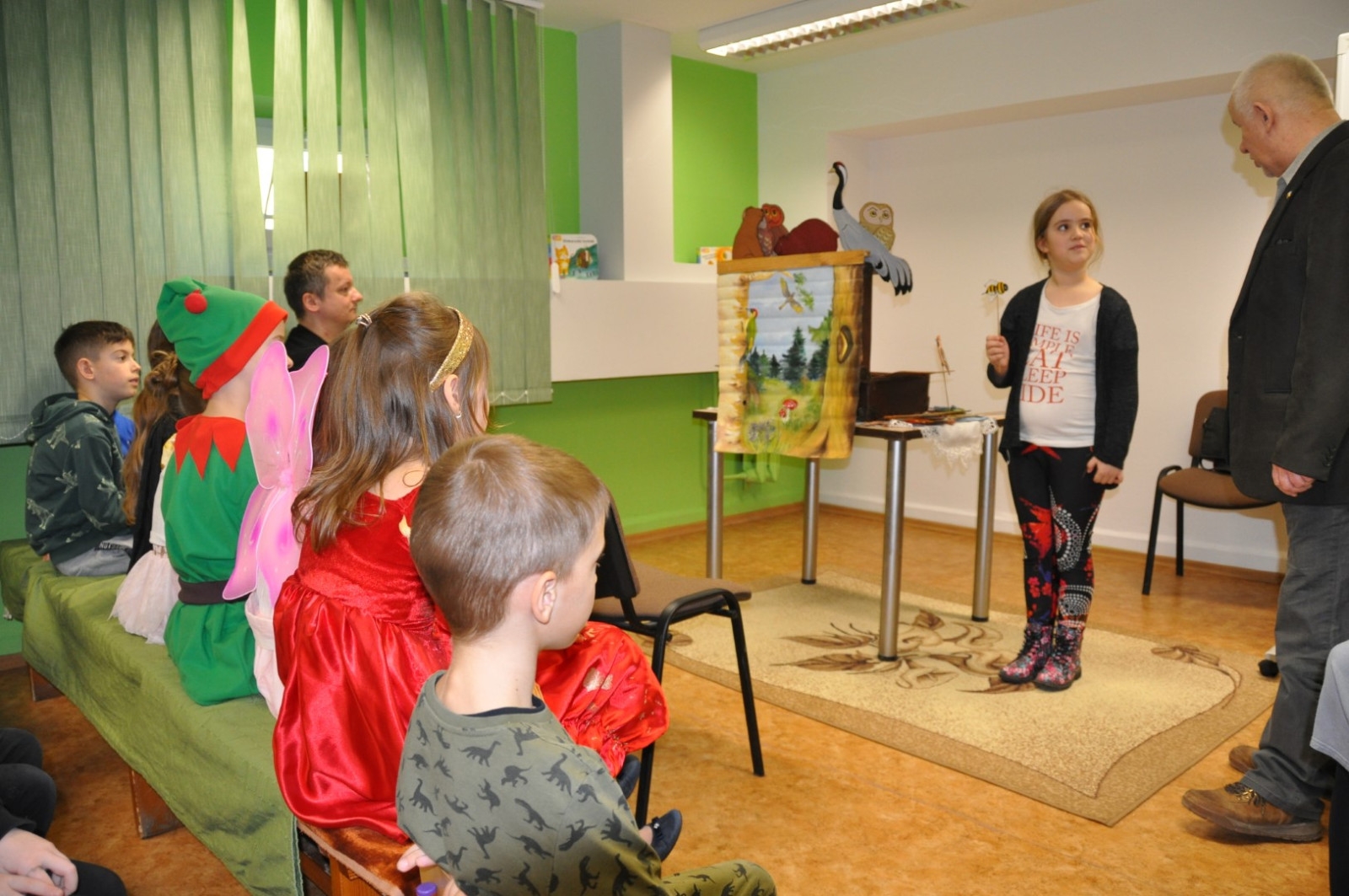 Podczas spotkania autor zaprezentował ciekawe przedstawienie pt.: „Teatrzyk jak się patrzy”. Mali uczestnicy poznali wiersze o ptakach i zwierzętach oraz wzięli udział w inscenizacji na żywo. Wspólnie z autorem dzieci wcieliły się w rolę bohaterów wierszy m.in.: „ Jemiołuszki”, „ Koguty”, „Trawka i osioł”, „Wróbelek”, „Sójka”, „Osa”, „Wrony”, „Zające”, „Królik Somnambulik”, „ Wilk i Kapusta”, „ Sowa”, „Żuraw”, „Wilk i Kapusta”, „ Sowa”, „Żuraw”, „Oset”, „Żabie Symfonie”, „ Przygoda”… Dzieci żywiołowo, spontanicznie i z radością wzięły udział w „wędrówce po świecie poezji”, w których ożywiona przyroda i zwierzęta odgrywały rolę podmiotu lirycznego.