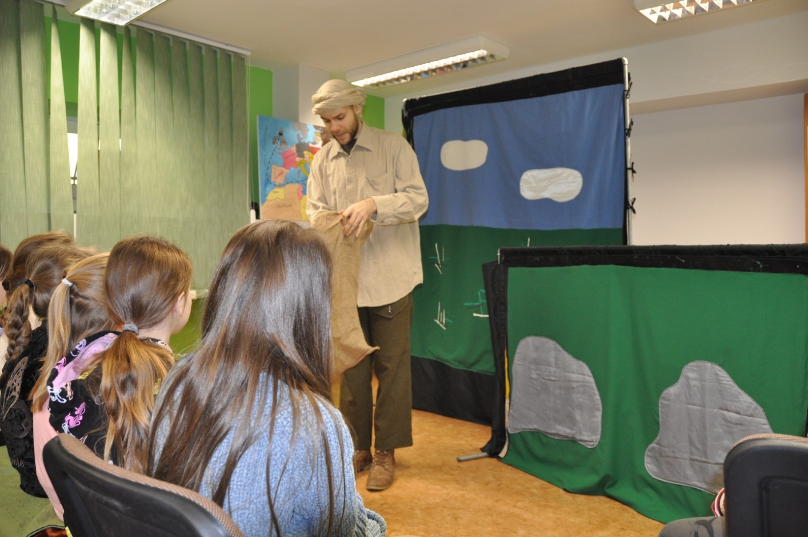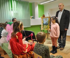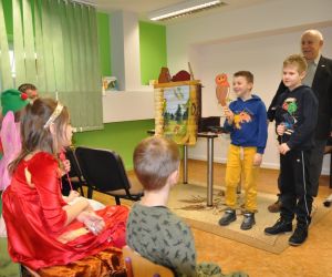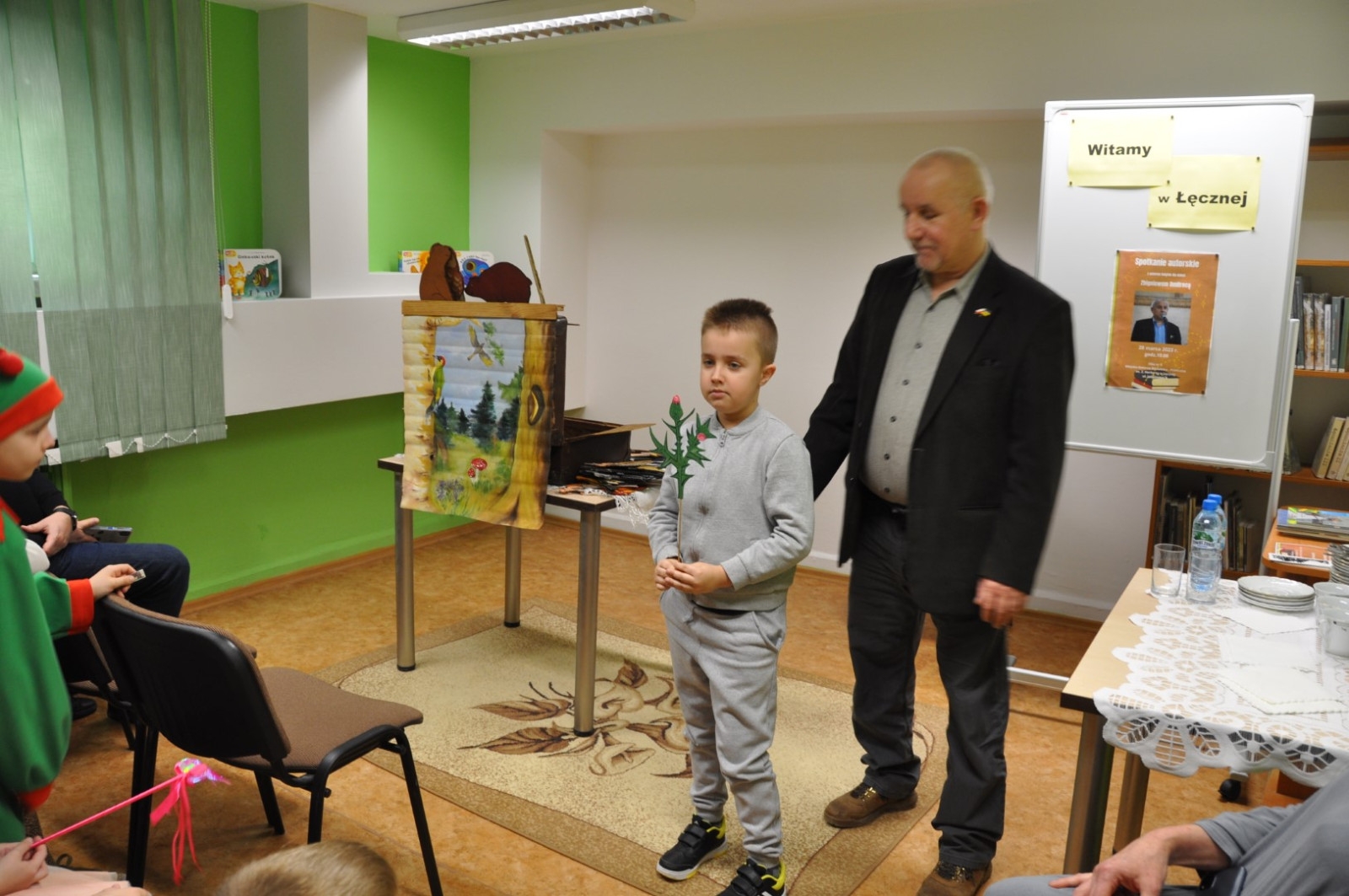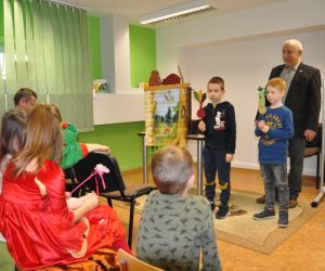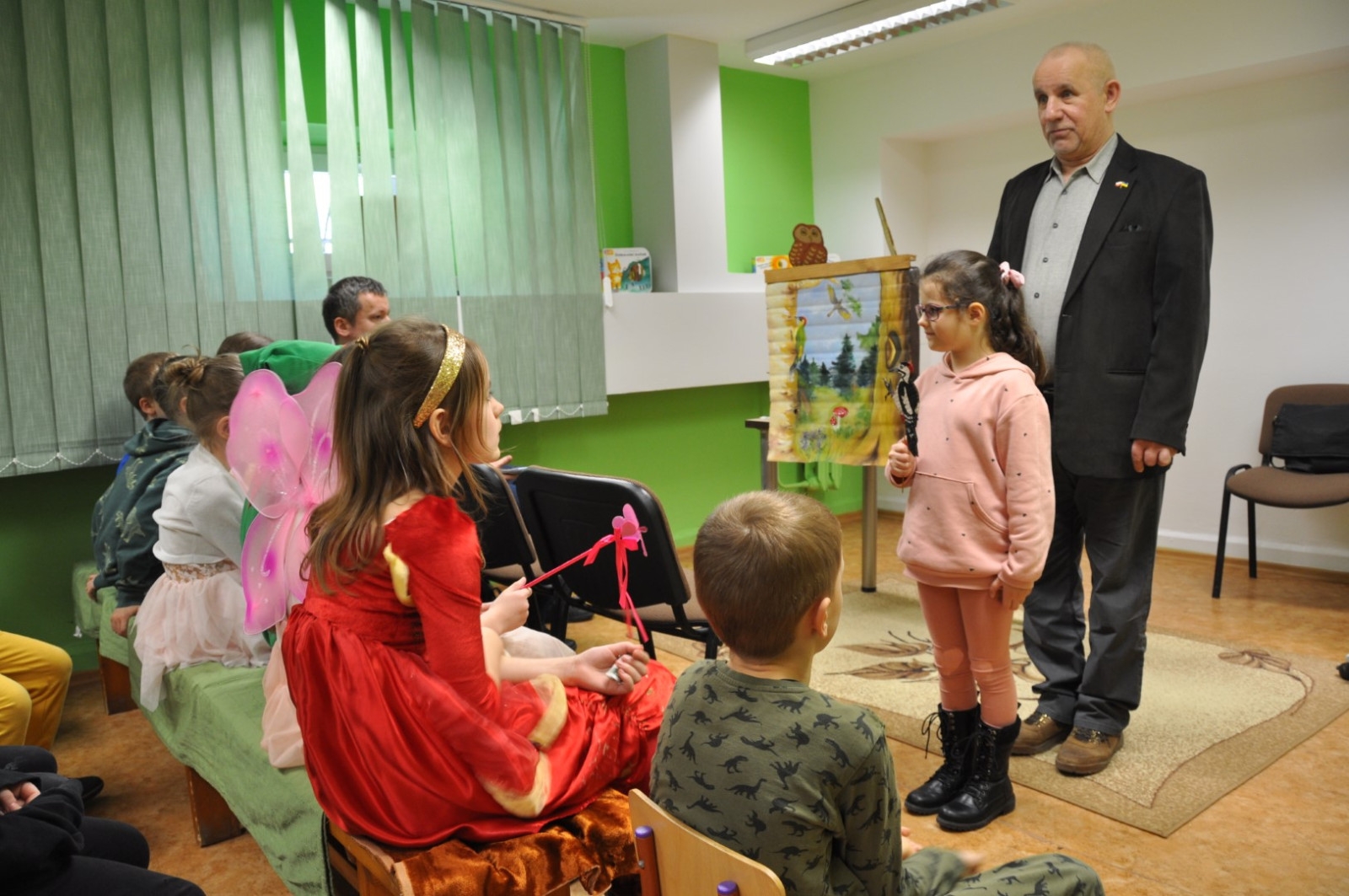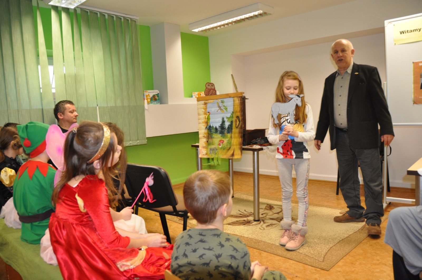 Podczas spotkania autor zaprezentował ciekawe przedstawienie pt.: „Teatrzyk jak się patrzy”. Mali uczestnicy poznali wiersze o ptakach i zwierzętach oraz wzięli udział w inscenizacji na żywo. Wspólnie z autorem dzieci wcieliły się w rolę bohaterów wierszy m.in.: „ Jemiołuszki”, „ Koguty”, „Trawka i osioł”, „Wróbelek”, „Sójka”, „Osa”, „Wrony”, „Zające”, „Królik Somnambulik”, „ Wilk i Kapusta”, „ Sowa”, „Żuraw”, „Wilk i Kapusta”, „ Sowa”, „Żuraw”, „Oset”, „Żabie Symfonie”, „ Przygoda”… Dzieci żywiołowo, spontanicznie i z radością wzięły udział w „wędrówce po świecie poezji”, w których ożywiona przyroda i zwierzęta odgrywały rolę podmiotu lirycznego.