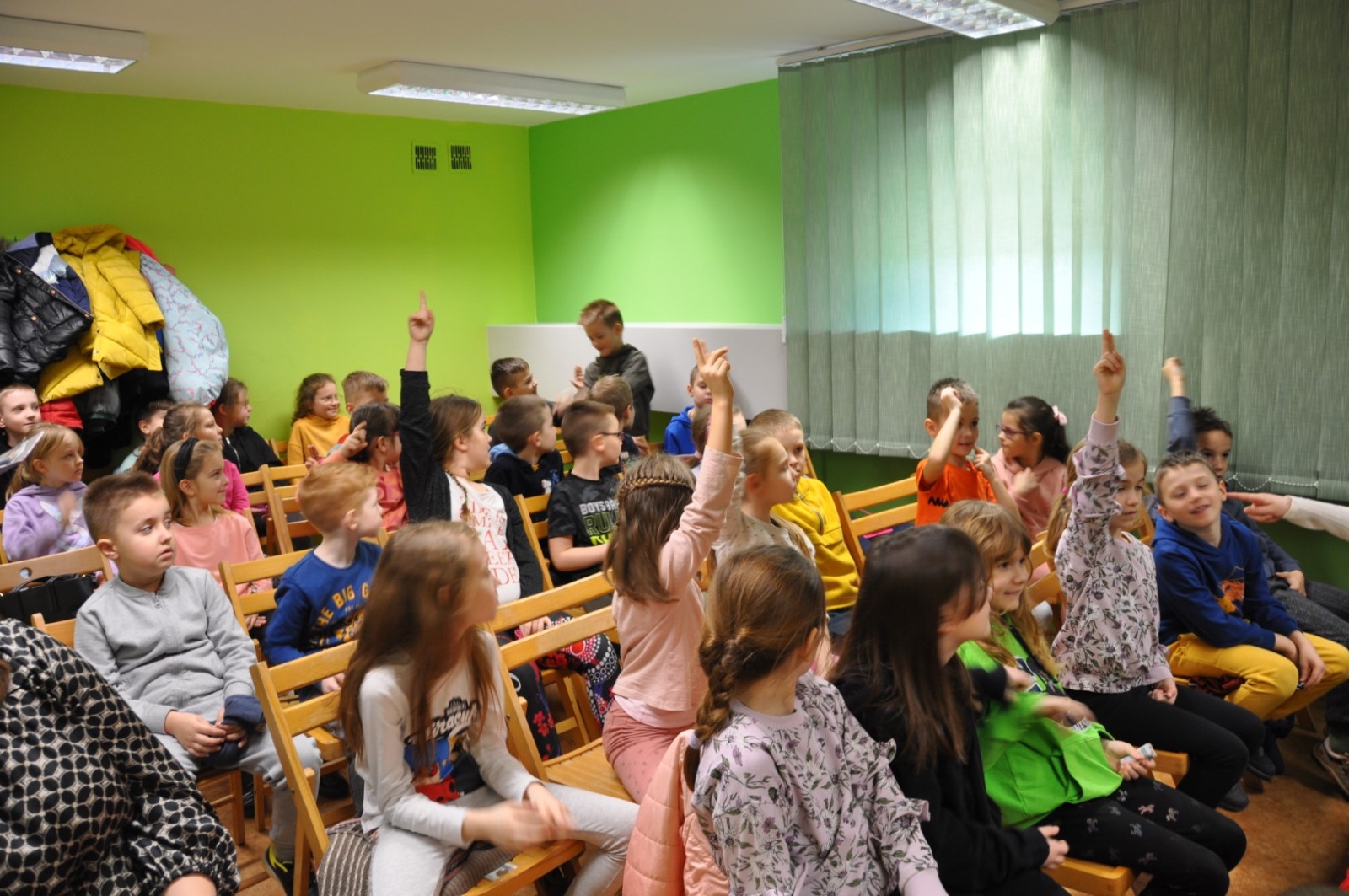 W spotkaniu wzięły udział dzieci z klasy I e i II b ze Szkoły Podstawowej nr 4 w Łęcznej z wychowawczyniami Ewą Żelechowską i Wiolettą Tchórzewską, czytelnicy i pracownicy biblioteki.