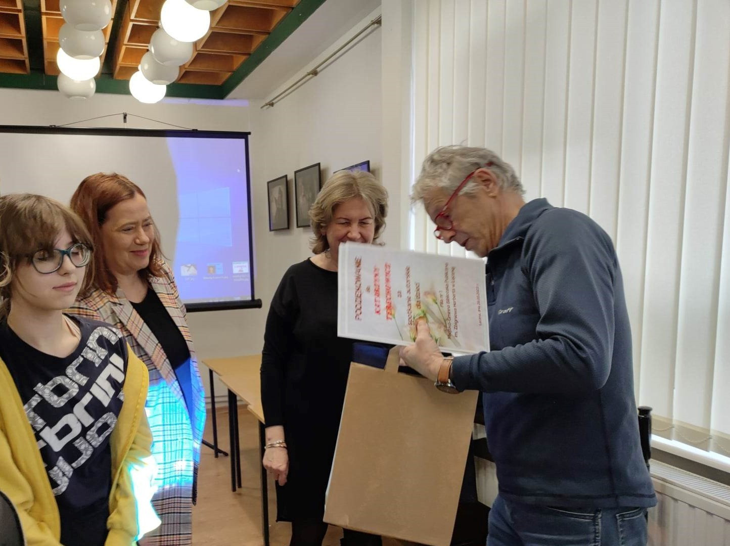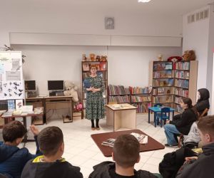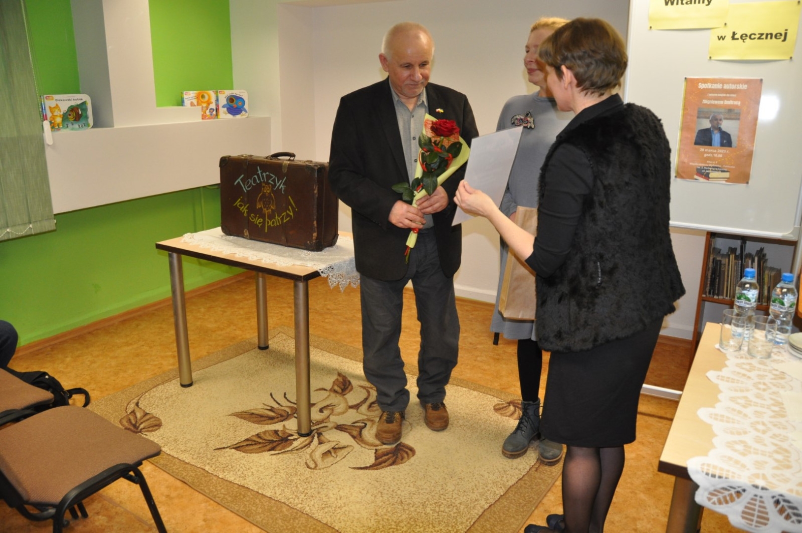 Przybyłych na spotkanie przywitała bibliotekarka Ewa Grzesiak, która była inspiratorką spotkania.