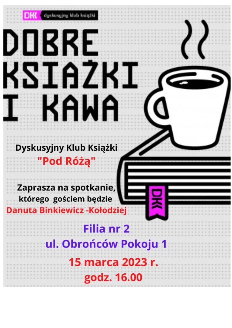 Dyskusyjny Klub Książki dla dorosłych „Pod Różą” działający w Filii nr 2 z okazji Światowego Dnia Poezji, który obchodzony jest 21 marca zaprosił na spotkanie poetkę Danutę Binkiewicz-Kołodziej.