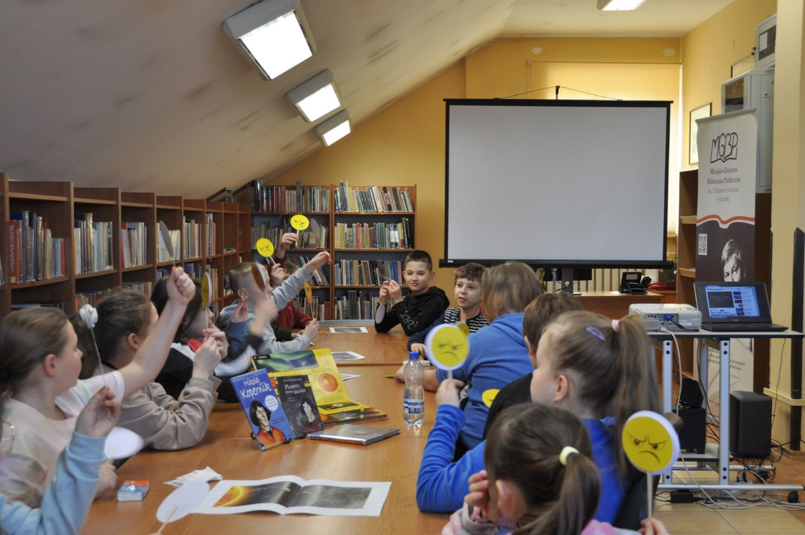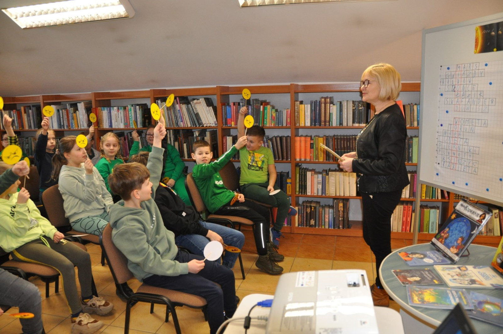 W dniach 14, 15, 16, 17 marca w Bibliotece przy ul. Bożnicznej 21 gościliśmy uczniów klas: 3 c, 3 b oraz 3 a ze Szkoły Podstawowej Nr 2 w Łęcznej, jak również dzieci klas pierwszych uczęśzczających do świetlicy SP nr 2. Podczas bibliotecznych zajęć dzieci słuchały głośnego czytania, poznały ciekawostki z życia wybitnego astronoma oraz zaznajomiły się Układem Słonecznym. Uczniowie słuchali piosenek oraz oglądali film o Mikołaju Koperniku. Dużym zainteresowaniem cieszyło się rozwiązywanie krzyżówki oraz zabawa dydaktyczna „prawda czy fałsz”.